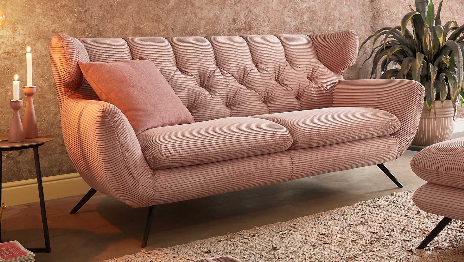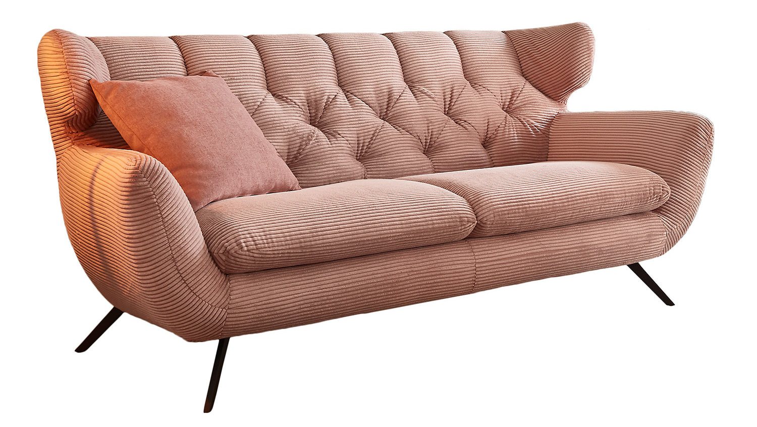 Das KAWOLA Sofa CHARME ist etwas ganz Besonderes! Es ist nicht nur ein Möbelstück, sondern ein wahres Design-Highlight, das neue Akzente im Wohnraum setzt. Der Stil des Sofas CHARME erinnert an die sechziger Jahre: Der Rücken wurde aufwendig abgesteppt ohne Knöpfe; die Rückenlehne wurde an den beiden Seiten leicht nach vorne gewölbt und erinnert an die Form eines Ohrensessels; die Füße aus Metall sind leicht ausgestellt. Die Polsterung des Sofas besteht aus PUR-Schaum und besticht durch ihren weichen und legeren Sitzkomfort. Die Sitzkissen passen sich der Körperform angenehm an. Selbstverständlich wurde das Sofa komplett in Cord bezogen, so dass es auch frei in den Raum gestellt werden kann. Wer nicht nur ein Sofa sucht, sondern ein ganz besonderes Highlight, der liegt mit dem KAWOLA Sofa CHARME goldrichtig!