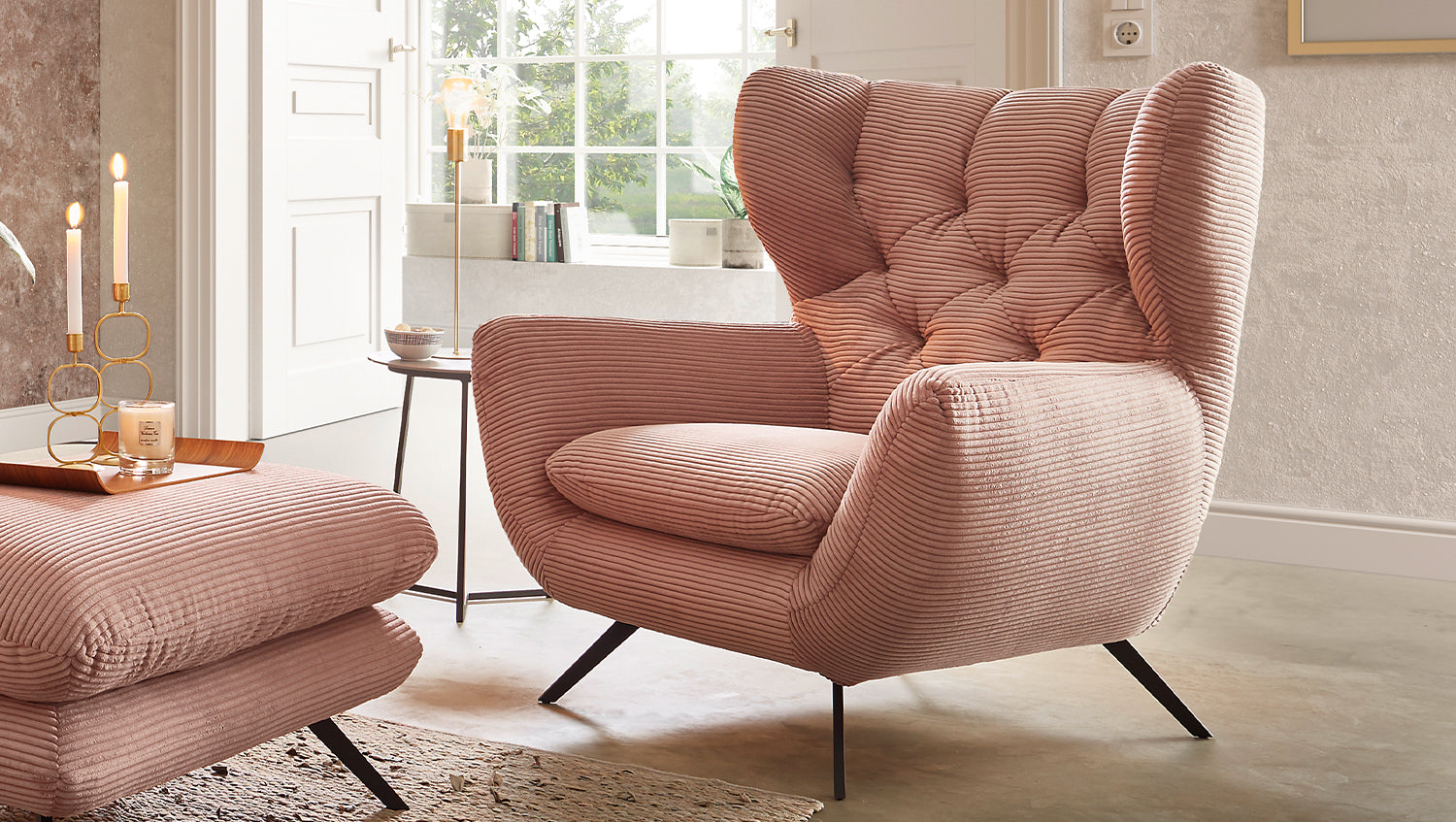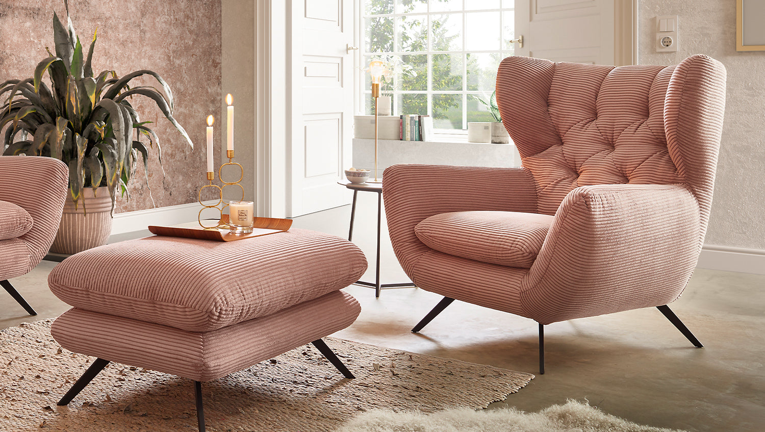 KAWOLA Sessel CHARME Hochlehnsessel Cord rosa