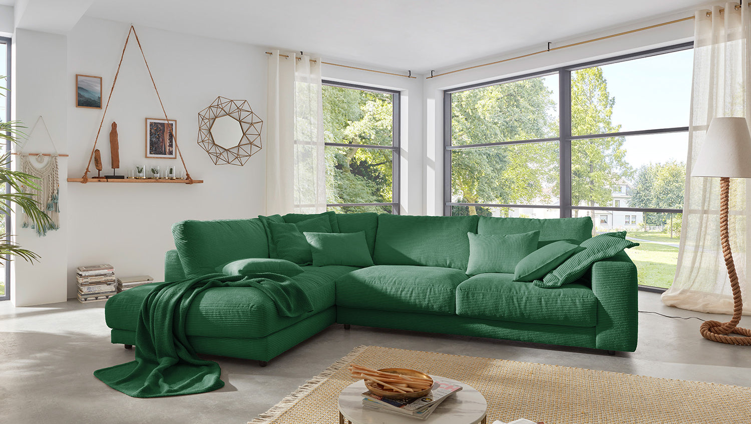 KAWOLA Sofa MADELINE Ecksofa Cord smaragd