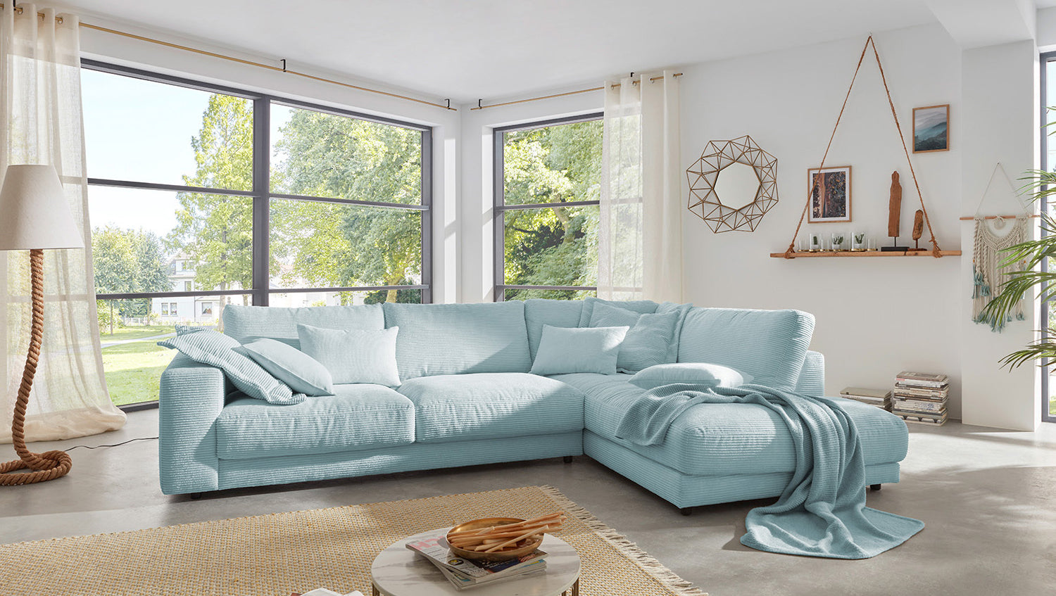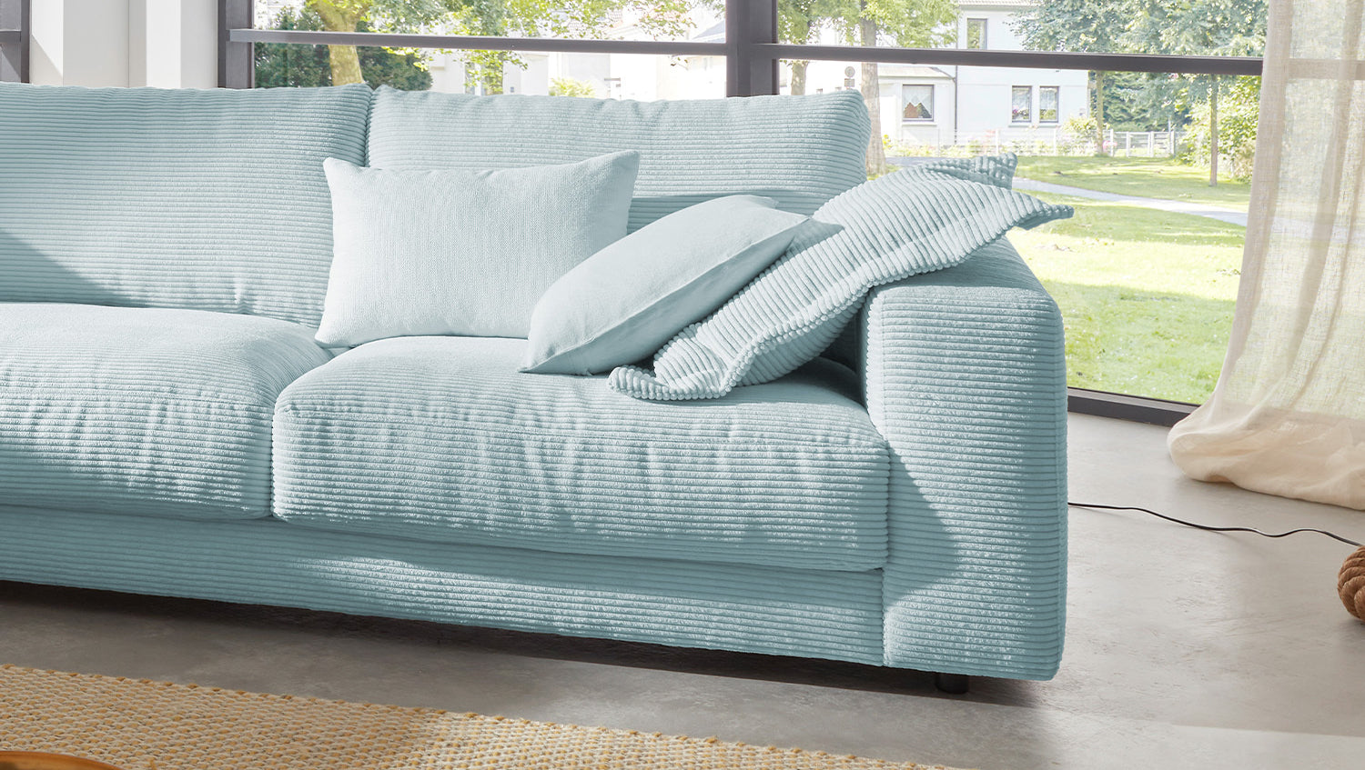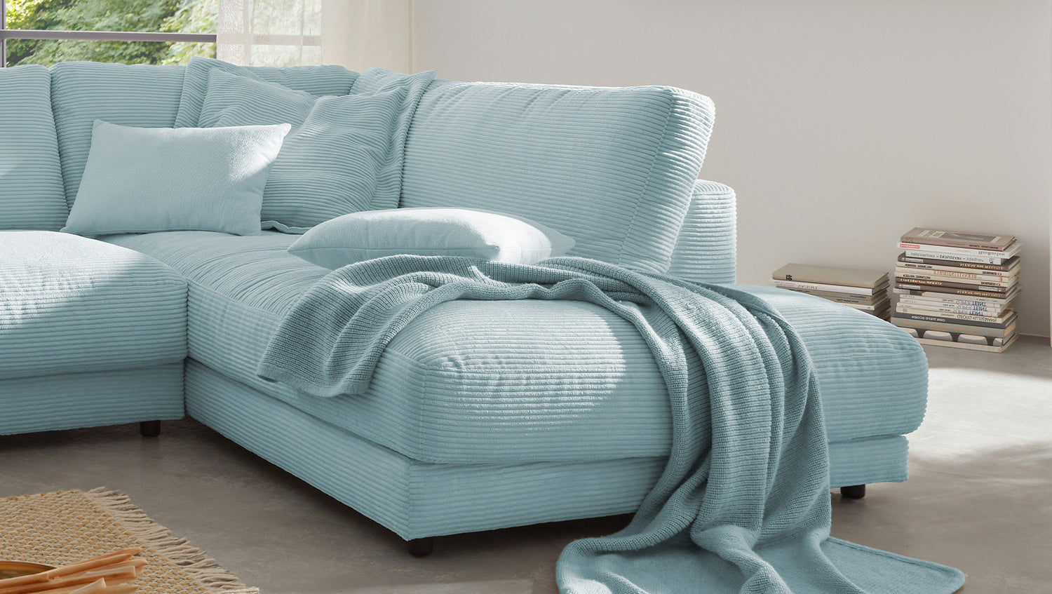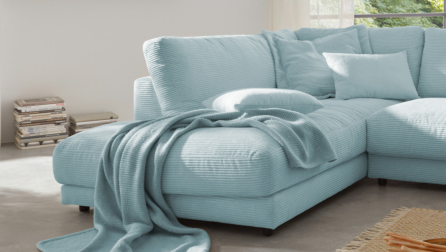 KAWOLA Sofa MADELINE Ecksofa Cord hellblau