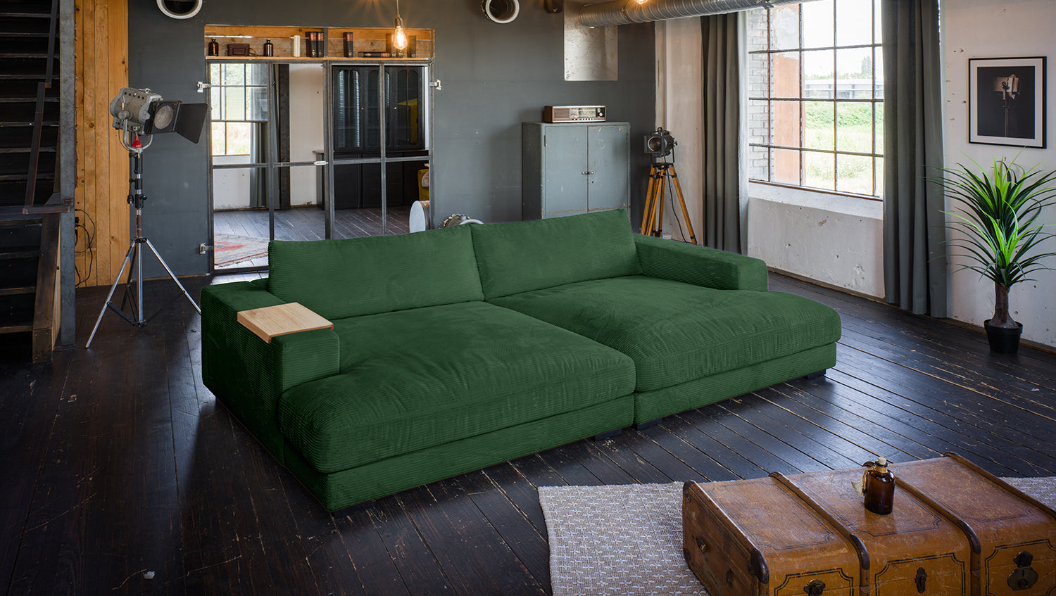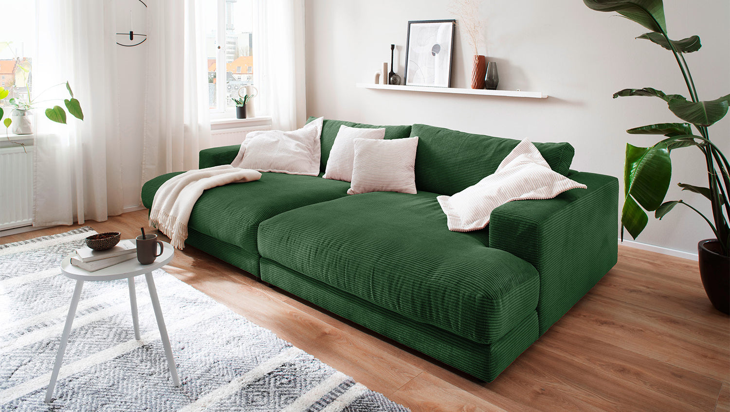 KAWOLA Big Sofa MADELINE Cord smaragd