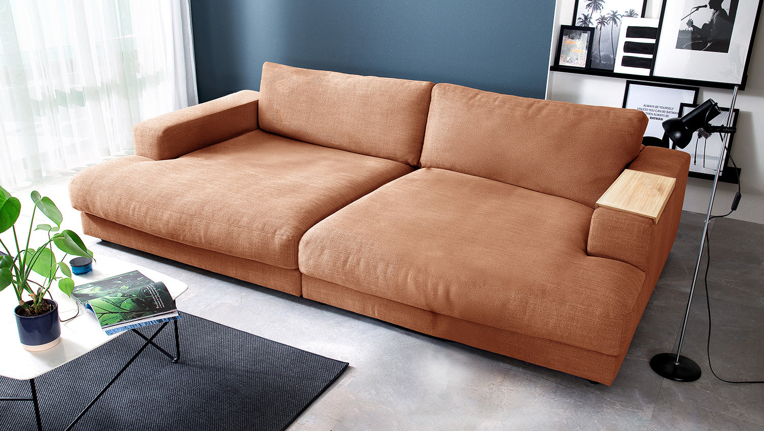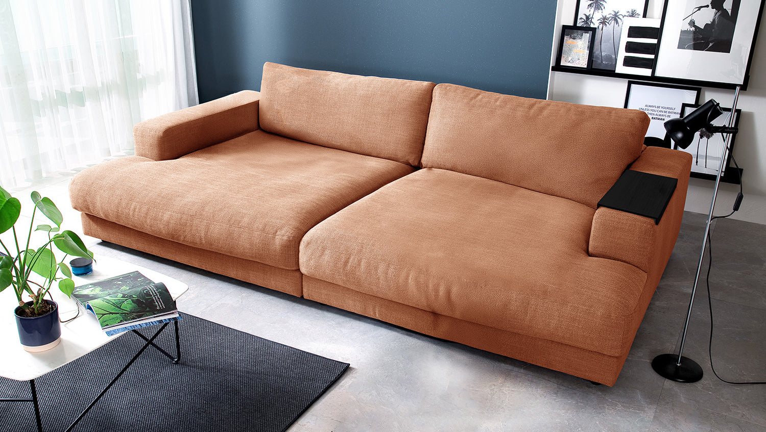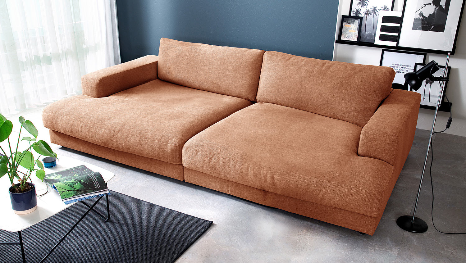 KAWOLA Big Sofa MADELINE Stoff cognac