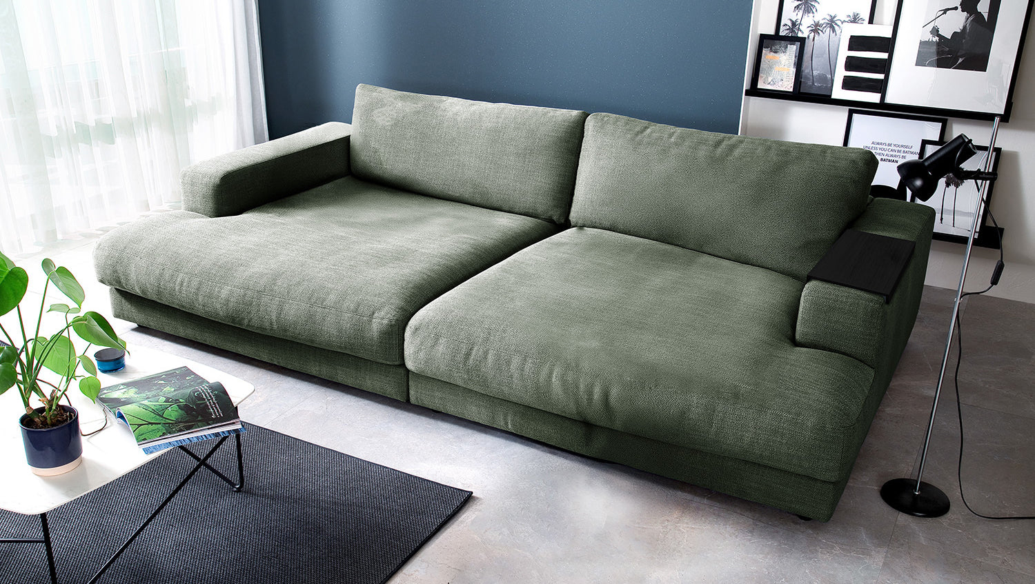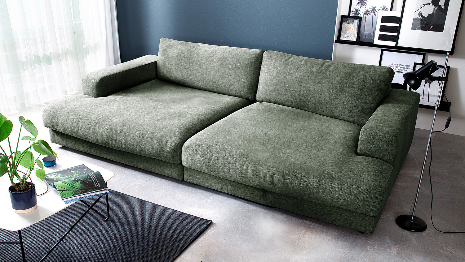 Das KAWOLA Big Sofa MADELINE besticht durch seinen hervorragenden Sitzkomfort, der durch die äußerst legere Polsterung zustande kommt und zum Verweilen und Entspannen einlädt. Das ungewöhnliche Maß und seine moderne und urbane Form verleihen dem Sofa sein unverwechselbares Aussehen und bieten ausreichend Platz, um gemütliche Abende zu verbringen. Mit seinem zeitlosen Design fügt es sich nahtlos in jede Umgebung ein und macht auch frei im Raum stehend eine gute Figur. Wenn Sie Ihrem Wohnzimmer einen außergewöhnlichen Anstrich verleihen wollen, ist das Big Sofa MADELINE definitiv das Richtige für Sie!