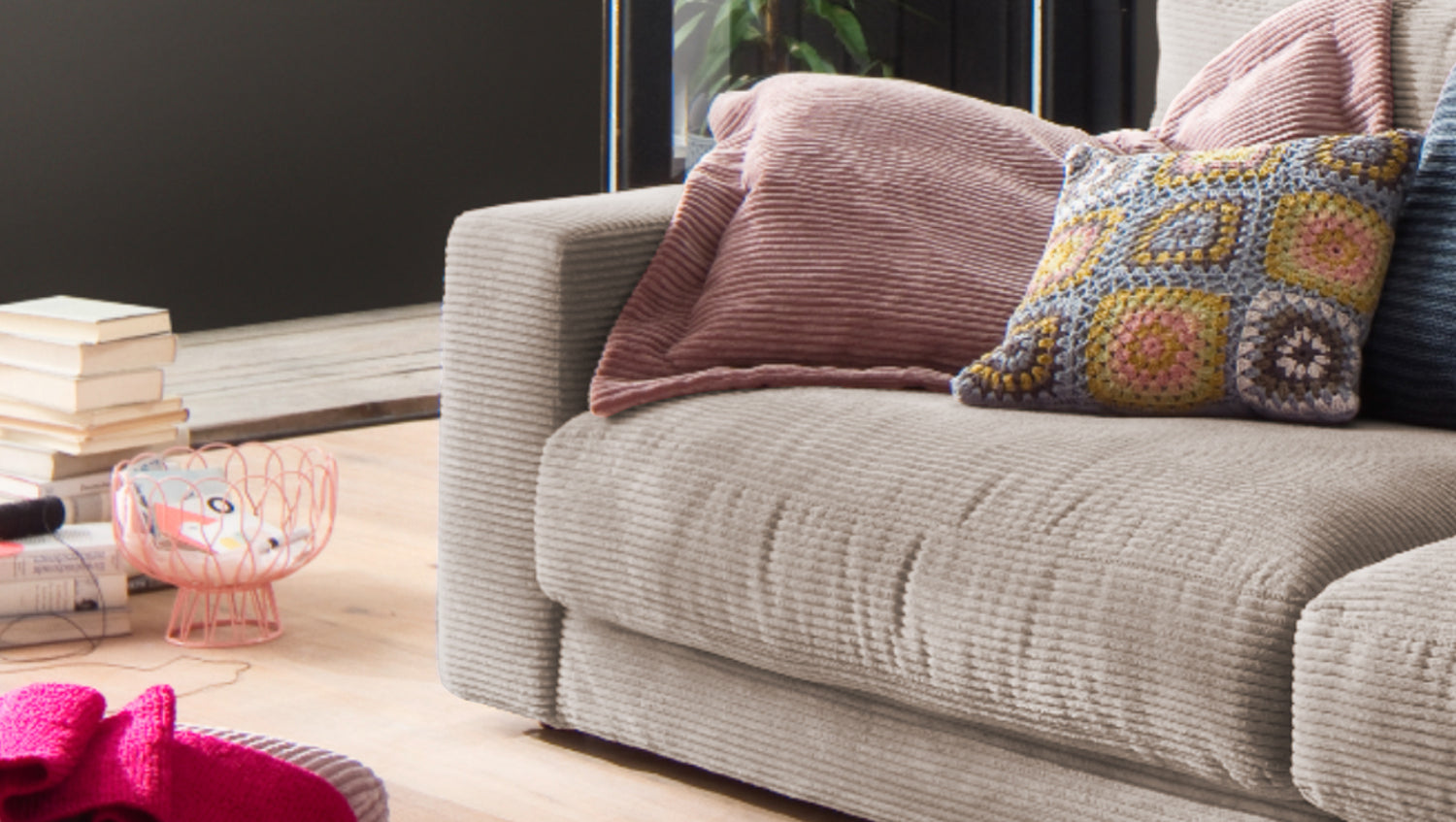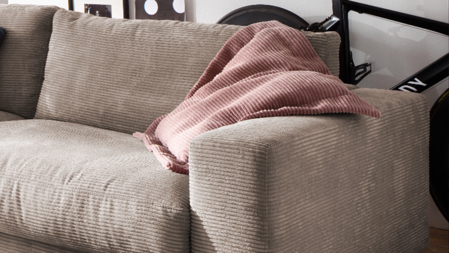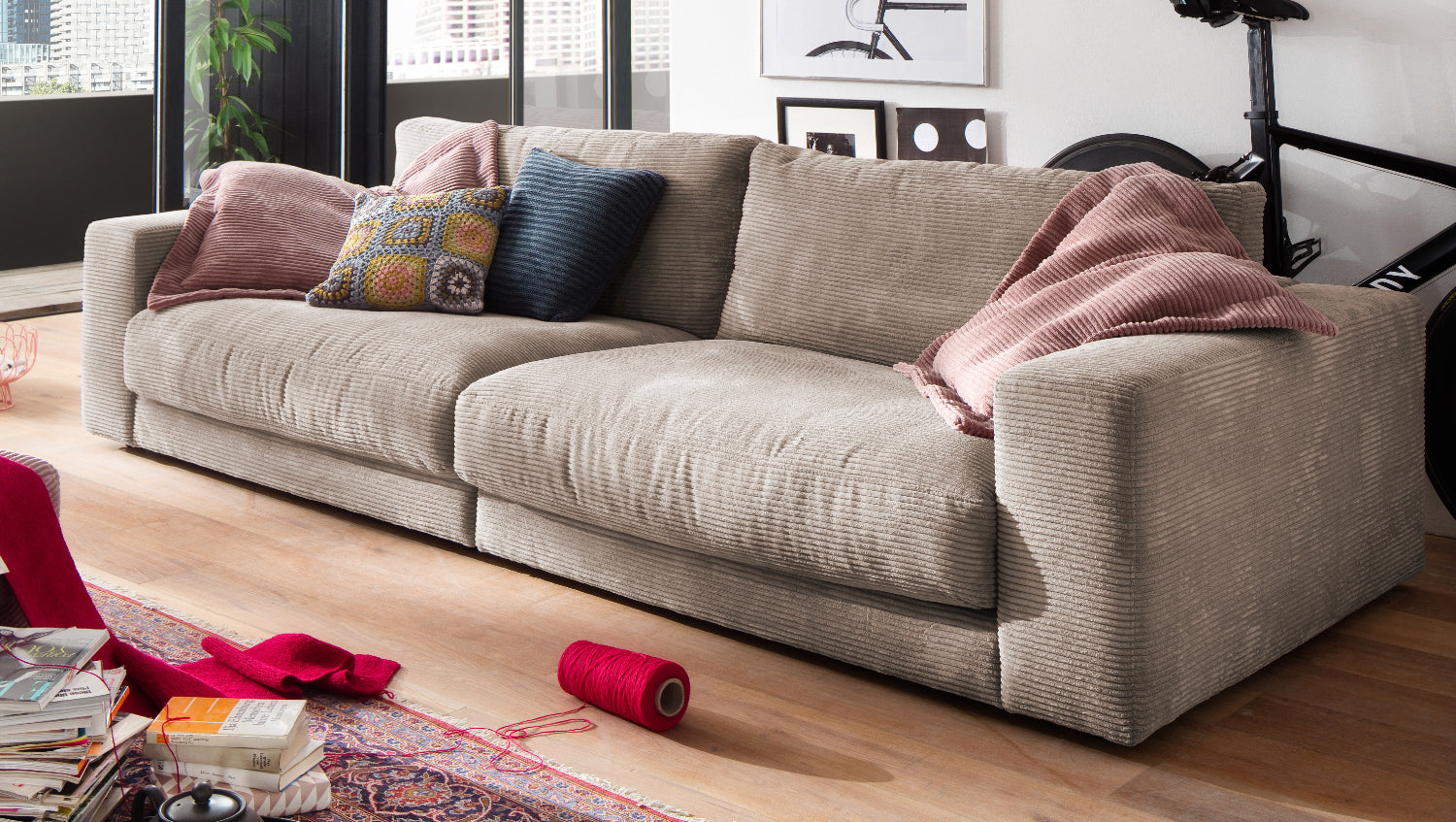 KAWOLA Sofa MADELINE 3-Sitzer Cord taupe