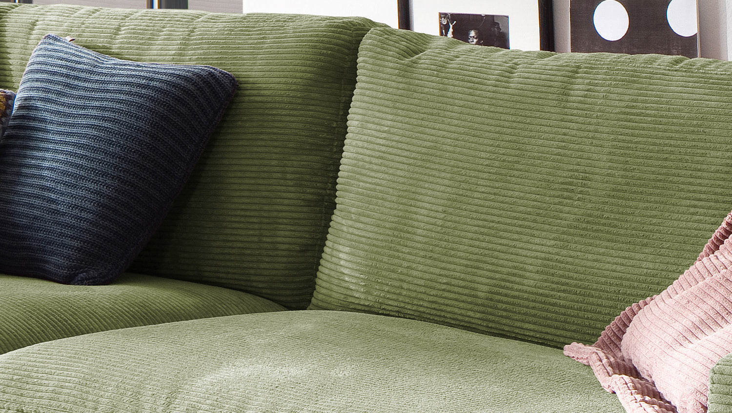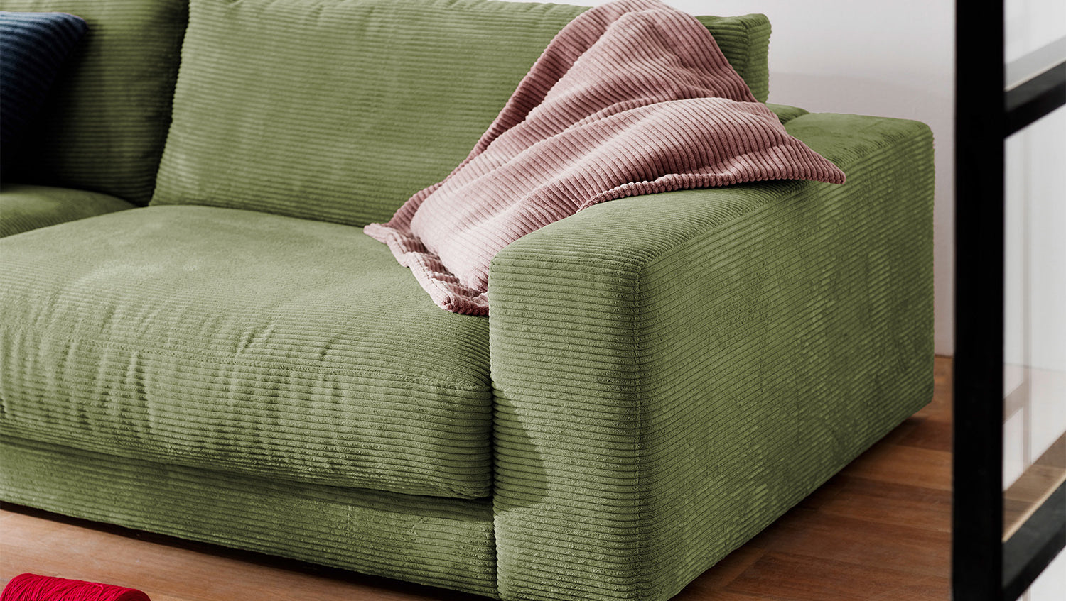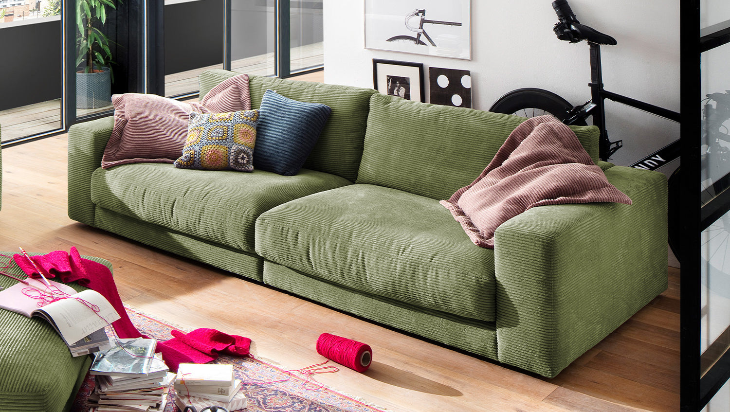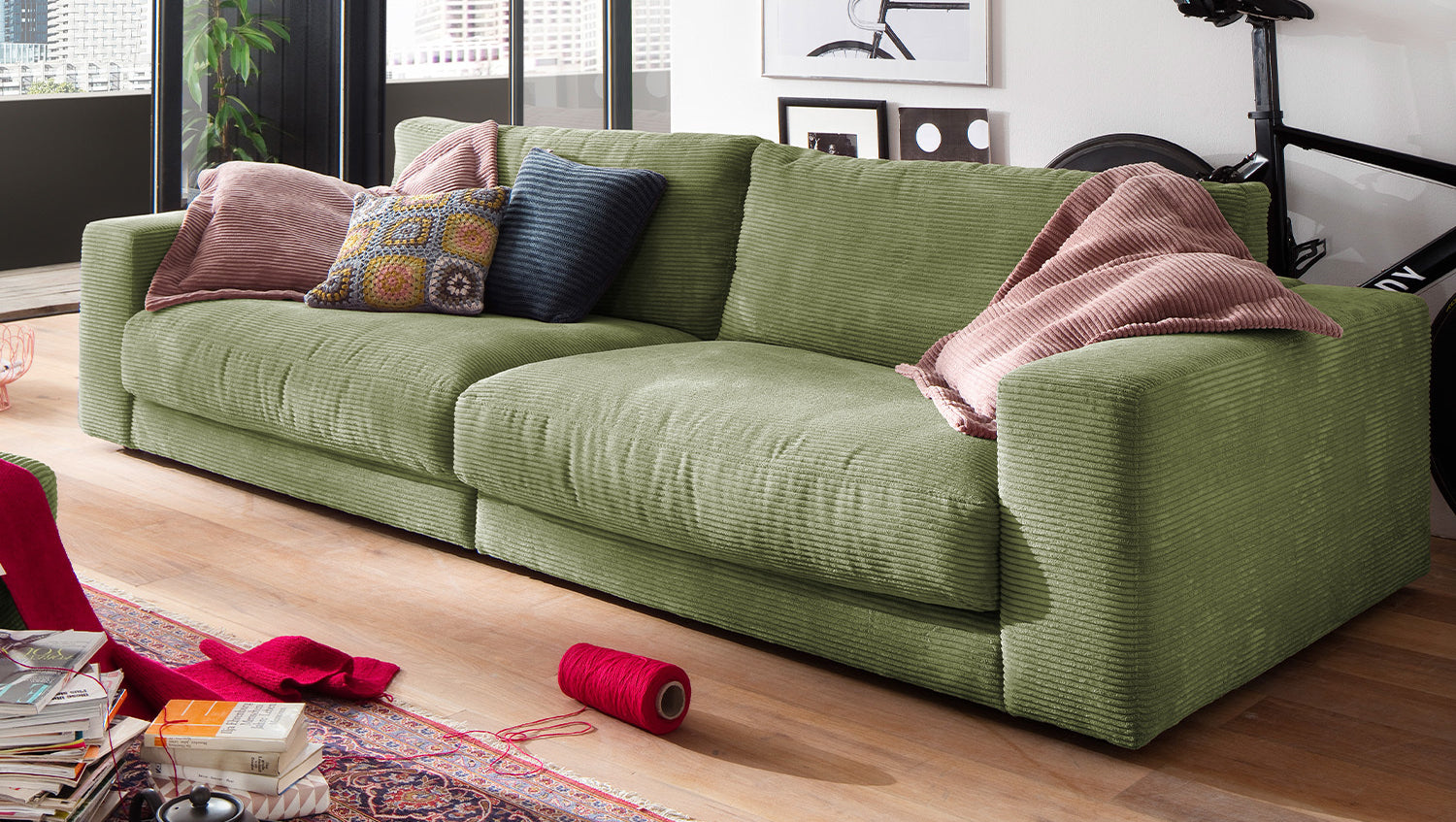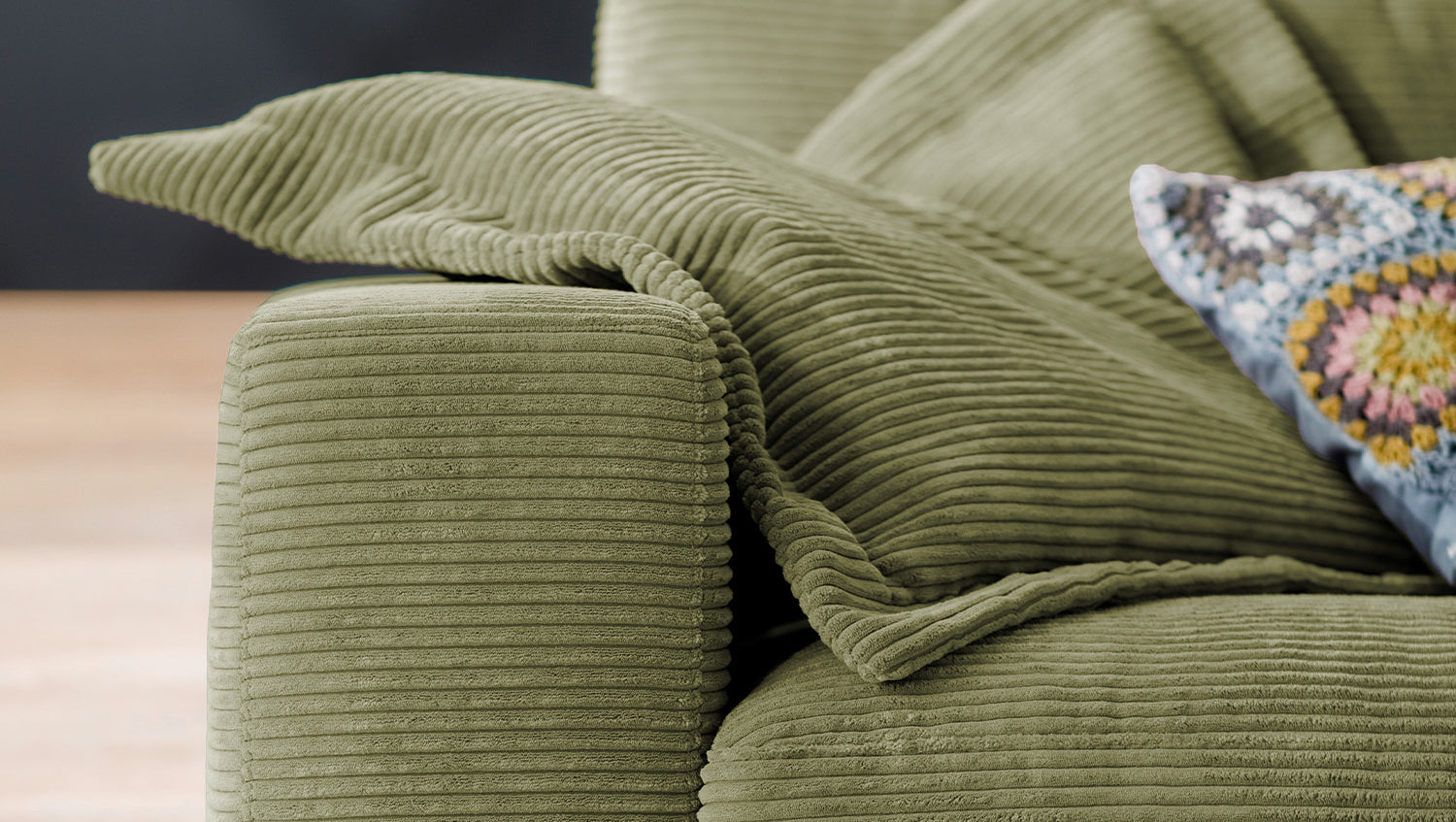 KAWOLA Sofa MADELINE 3-Sitzer Cord olivgrün