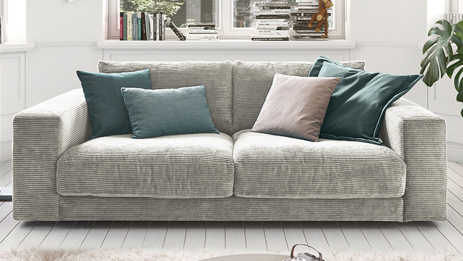 KAWOLA Sofa MADELINE 2-Sitzer Cord hellgrau