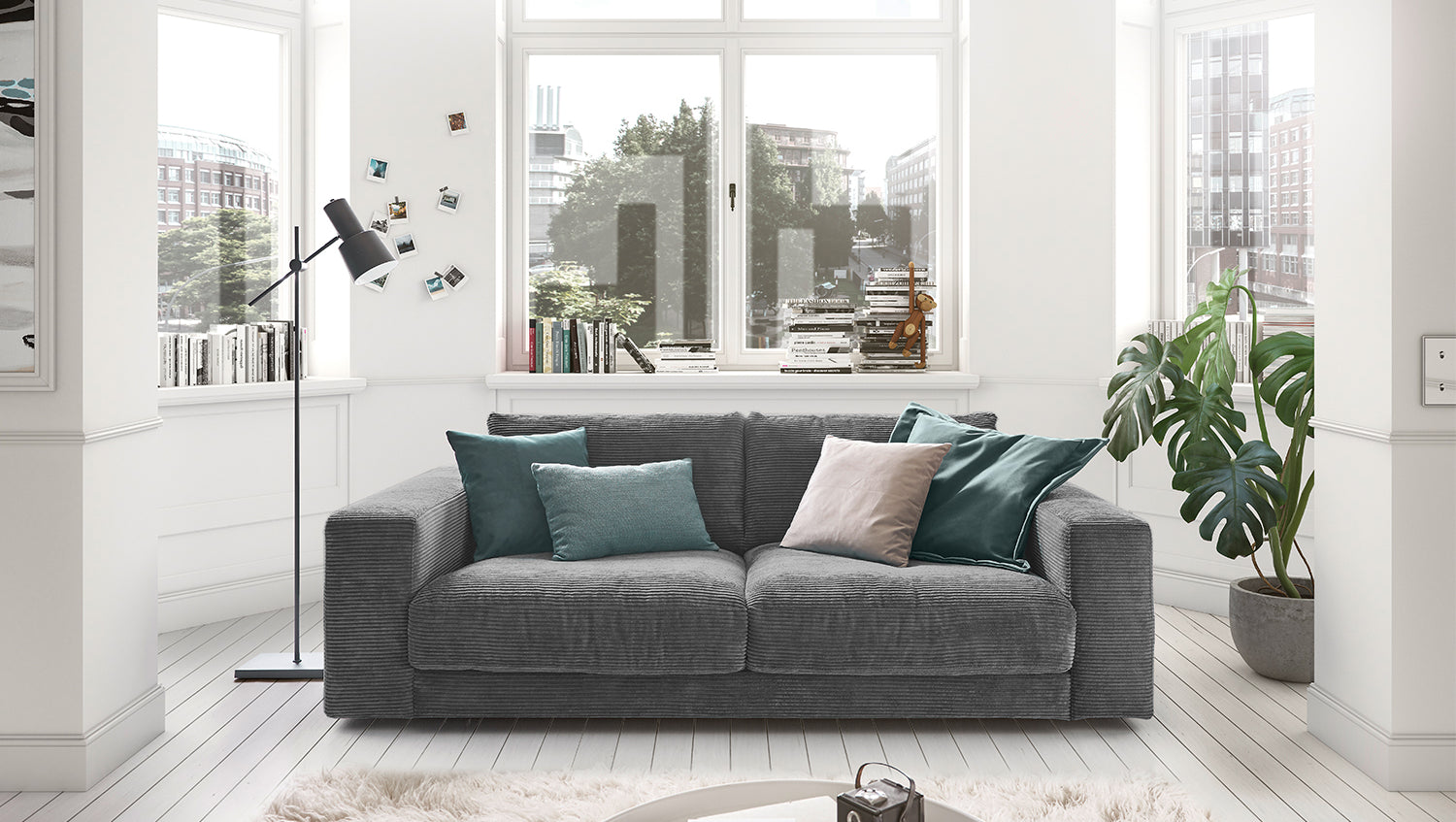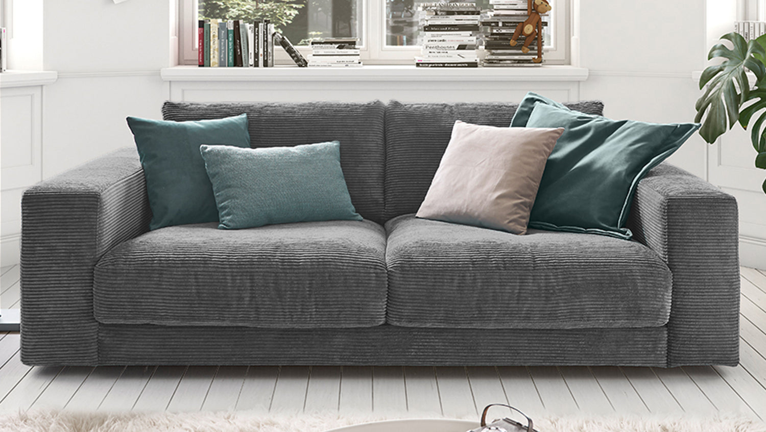 KAWOLA Sofa MADELINE 2-Sitzer Cord grau