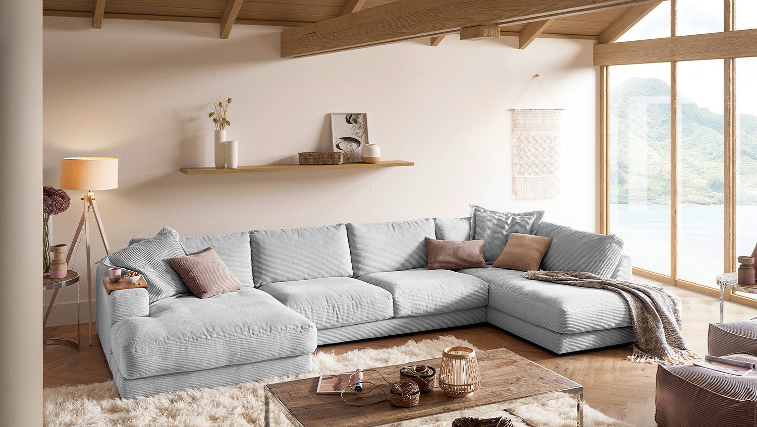 Die KAWOLA Wohnlandschaft MADELINE in U-Form besticht durch ihren hervorragenden Sitzkomfort, der durch die äußerst legere Polsterung zustande kommt und zum Verweilen und Entspannen einlädt. Seine moderne und urbane Form verleihen dem Sofa sein unverwechselbares Aussehen und bieten ausreichend Platz, um gemütliche Abende zu verbringen. Mit seinem zeitlosen Design fügt es sich nahtlos in jede Umgebung ein und macht auch frei im Raum stehend eine gute Figur. Wenn Sie Ihrem Wohnzimmer einen außergewöhnlichen Anstrich verleihen wollen, ist das Sofa MADELINE definitiv das Richtige für Sie!
