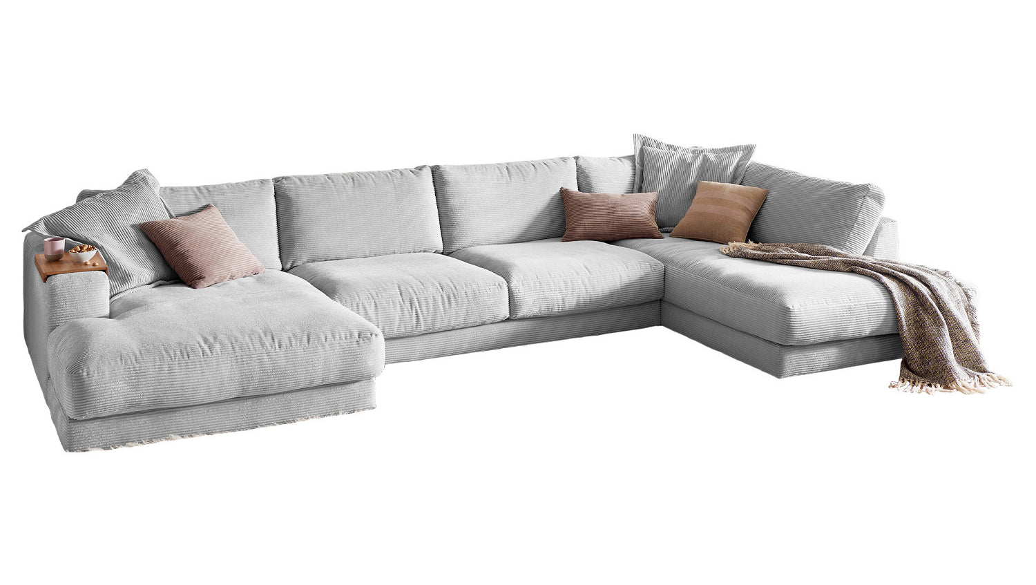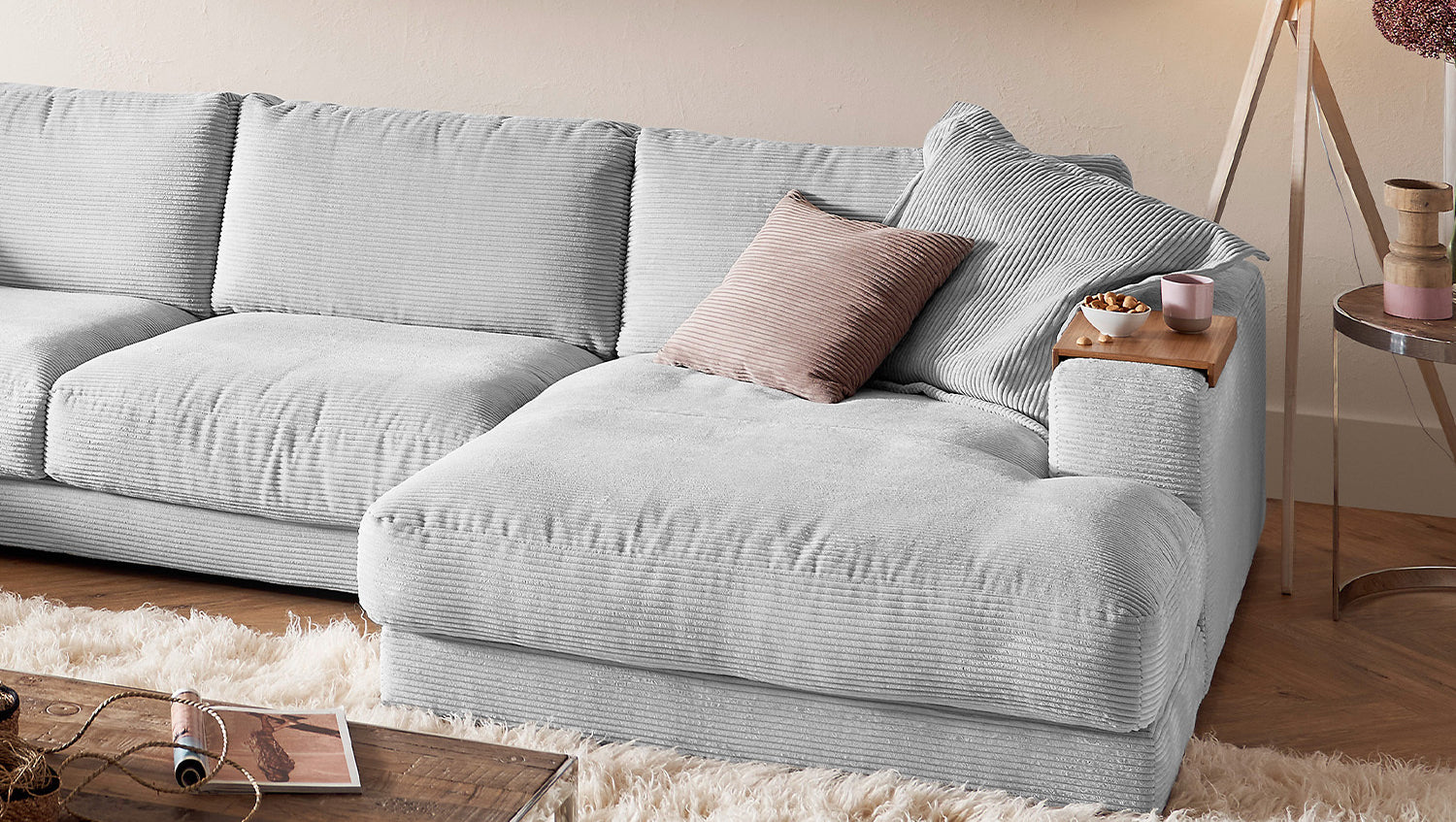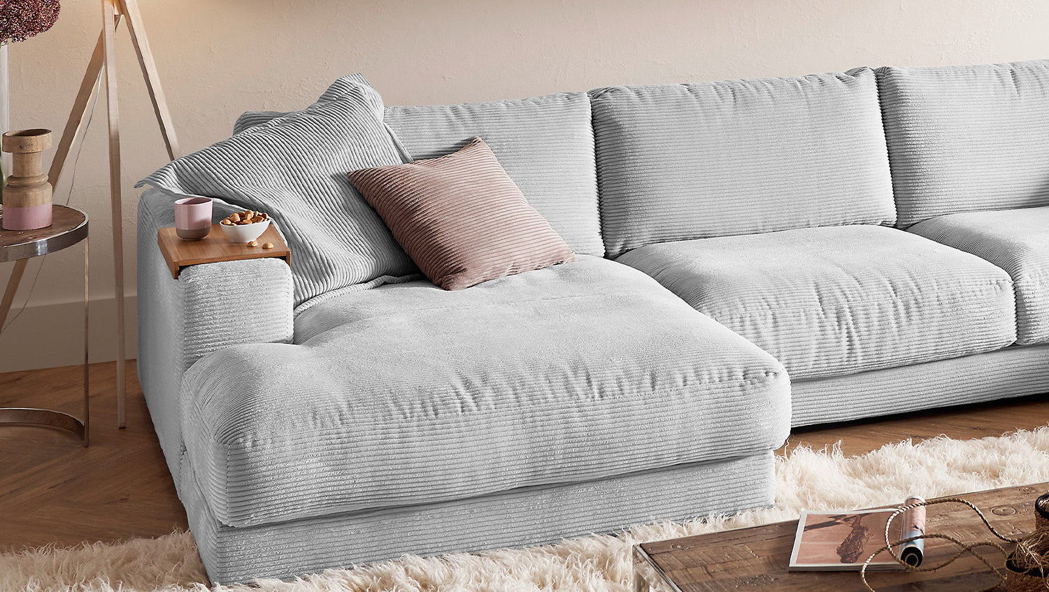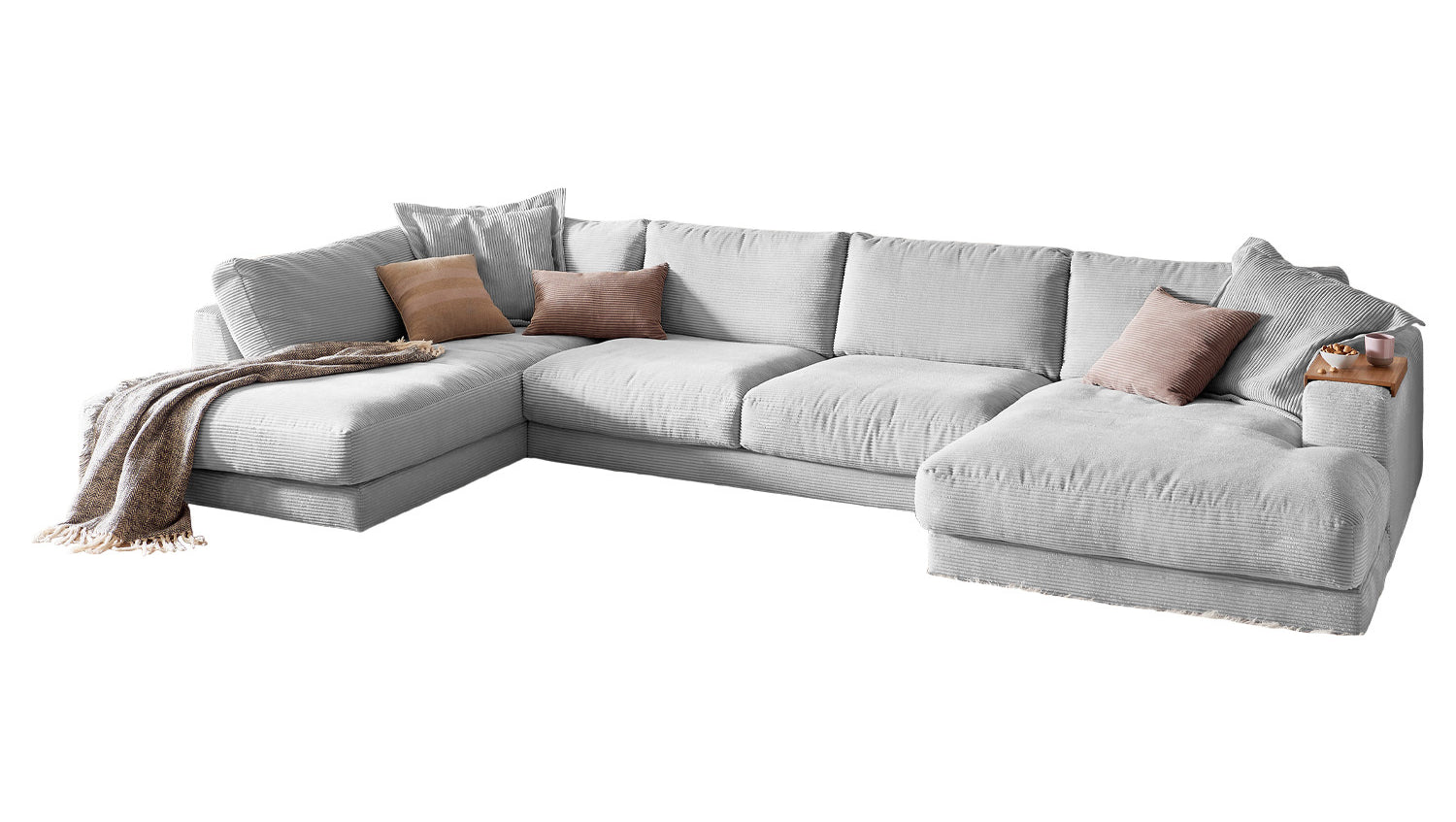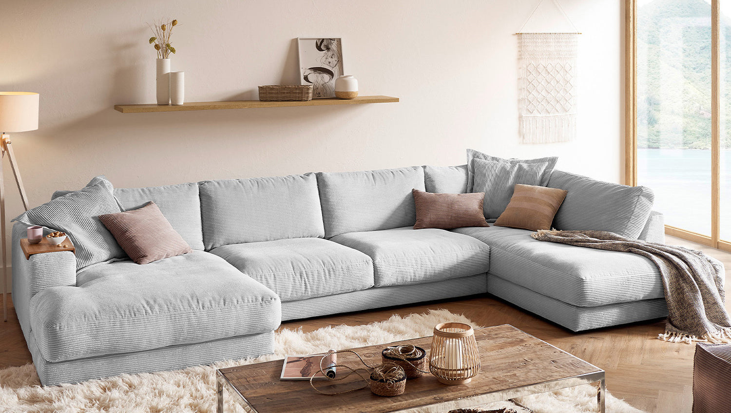 KAWOLA Sofa MADELINE Wohnlandschaft U-Form Cord hellgrau