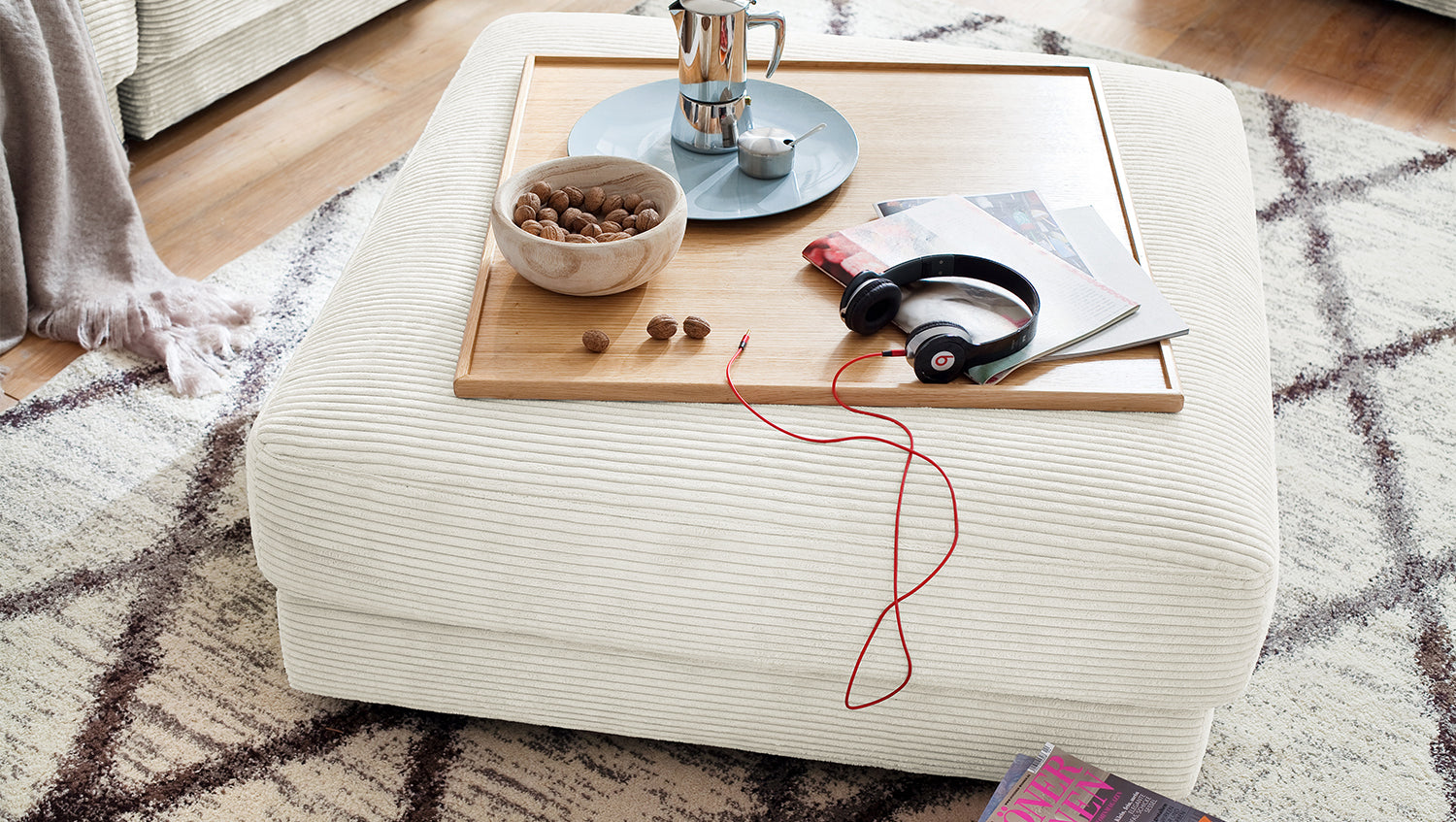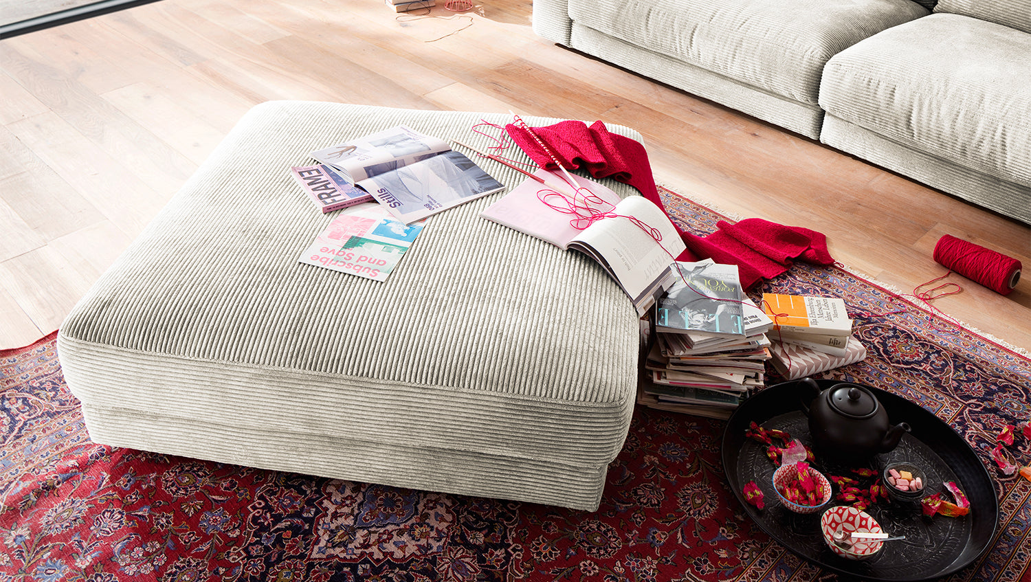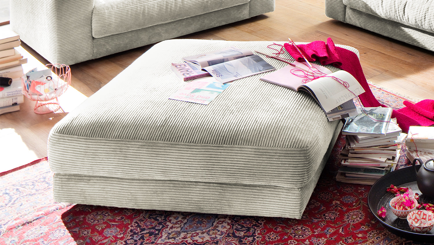 Der KAWOLA Big Hocker MADELINE besticht durch seinen hervorragenden Sitzkomfort, der durch die äußerst legere Polsterung zustande kommt und zum Verweilen und Entspannen einlädt. Seine moderne und urbane Form verleihen dem Polsterhocker sein unverwechselbares Aussehen. Mit seinem zeitlosen Design fügt es sich nahtlos in jede Umgebung ein und macht in jedem Interieur eine gute Figur. Wenn Sie Ihrem Wohnzimmer einen außergewöhnlichen Anstrich verleihen wollen, ist der Big Hocker MADELINE definitiv das Richtige für Sie! Der Hocker ist außerdem die perfekte Ergänzung zu den Cord-Sofas aus der Serie MADELINE.