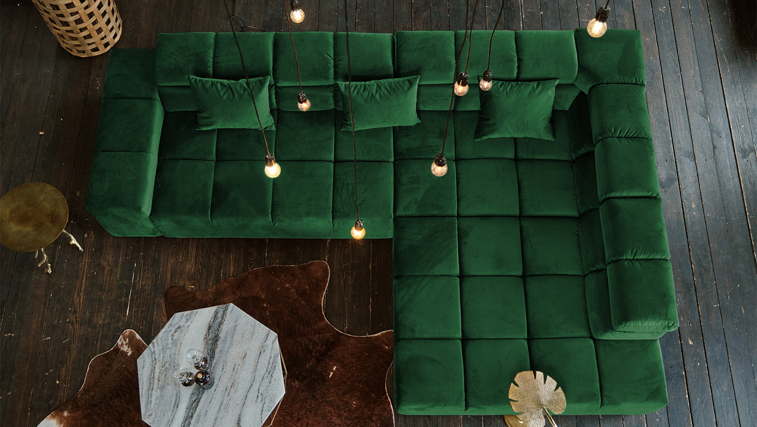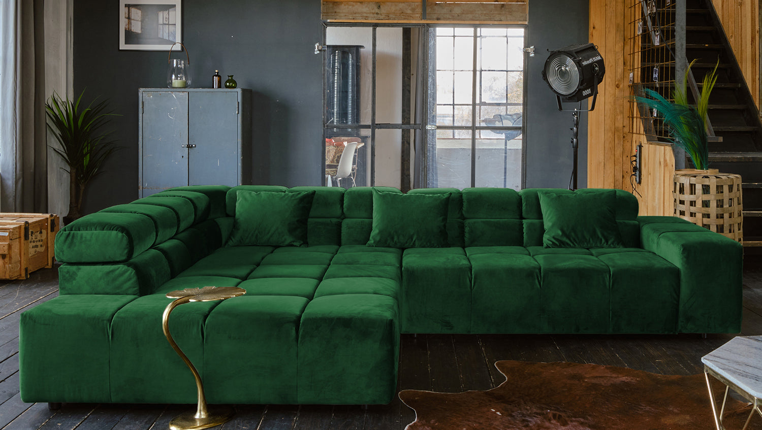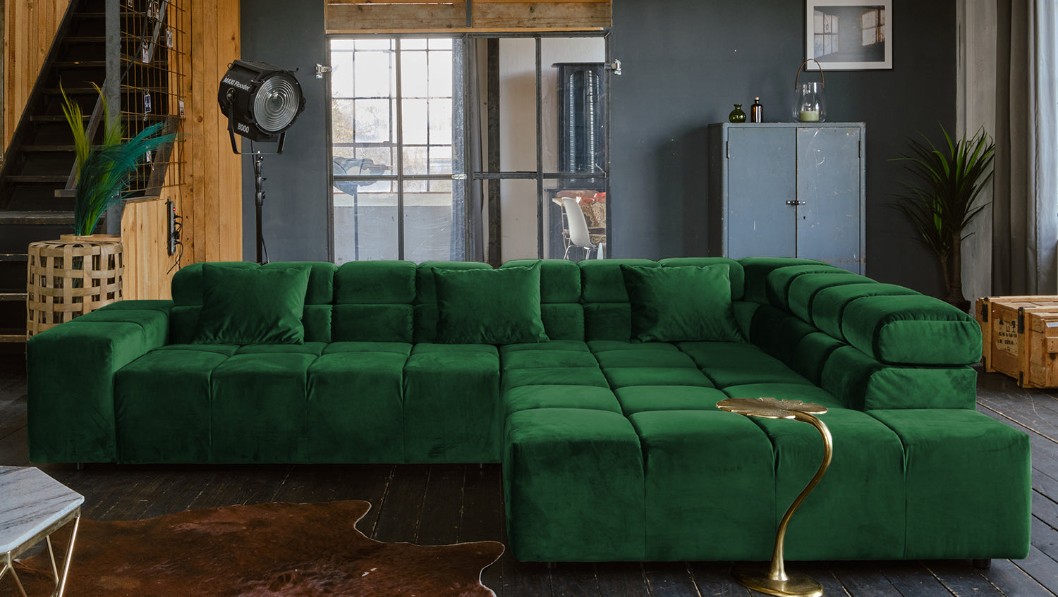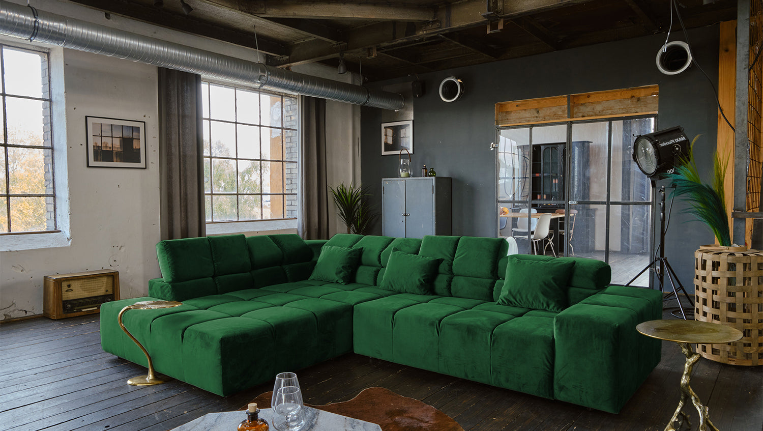 KAWOLA Sofa NEVADA Ecksofa Velvet smaragd