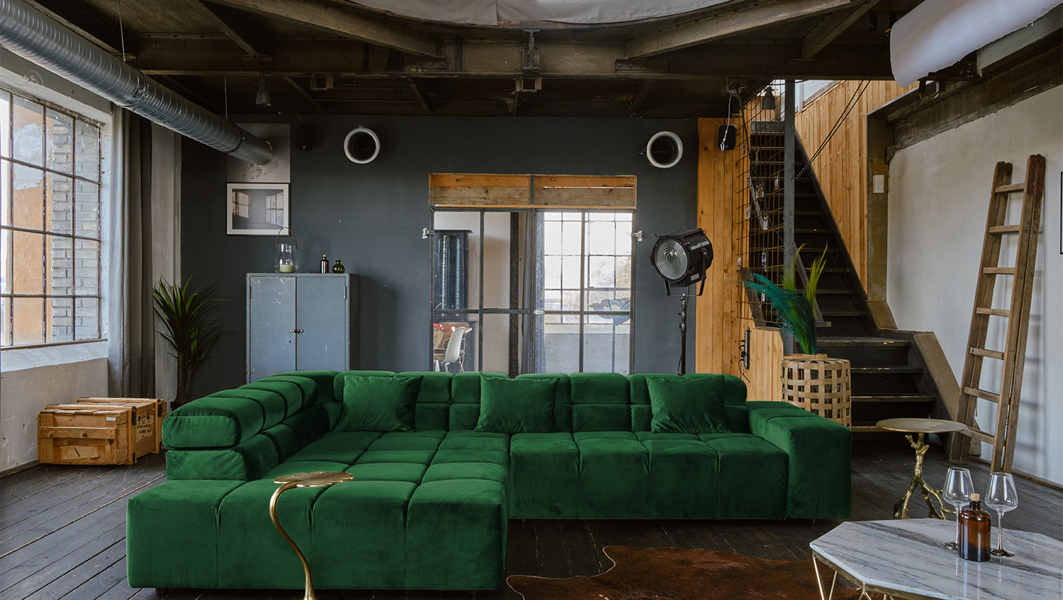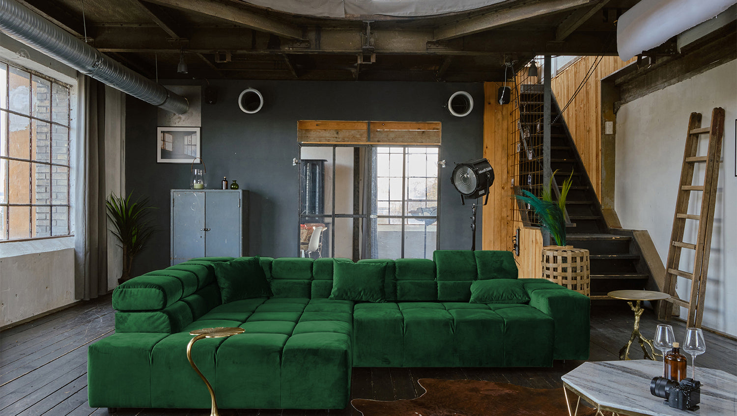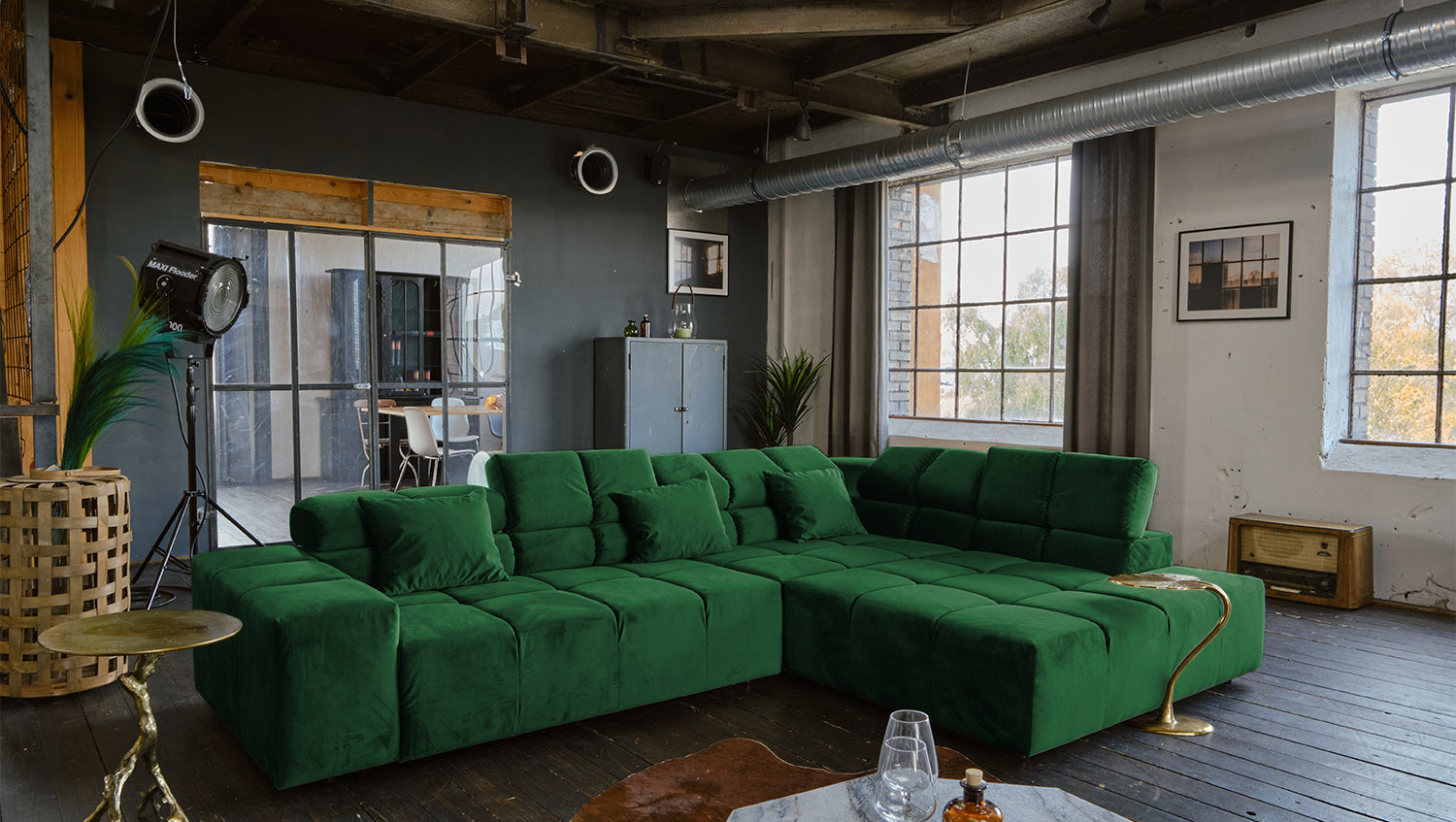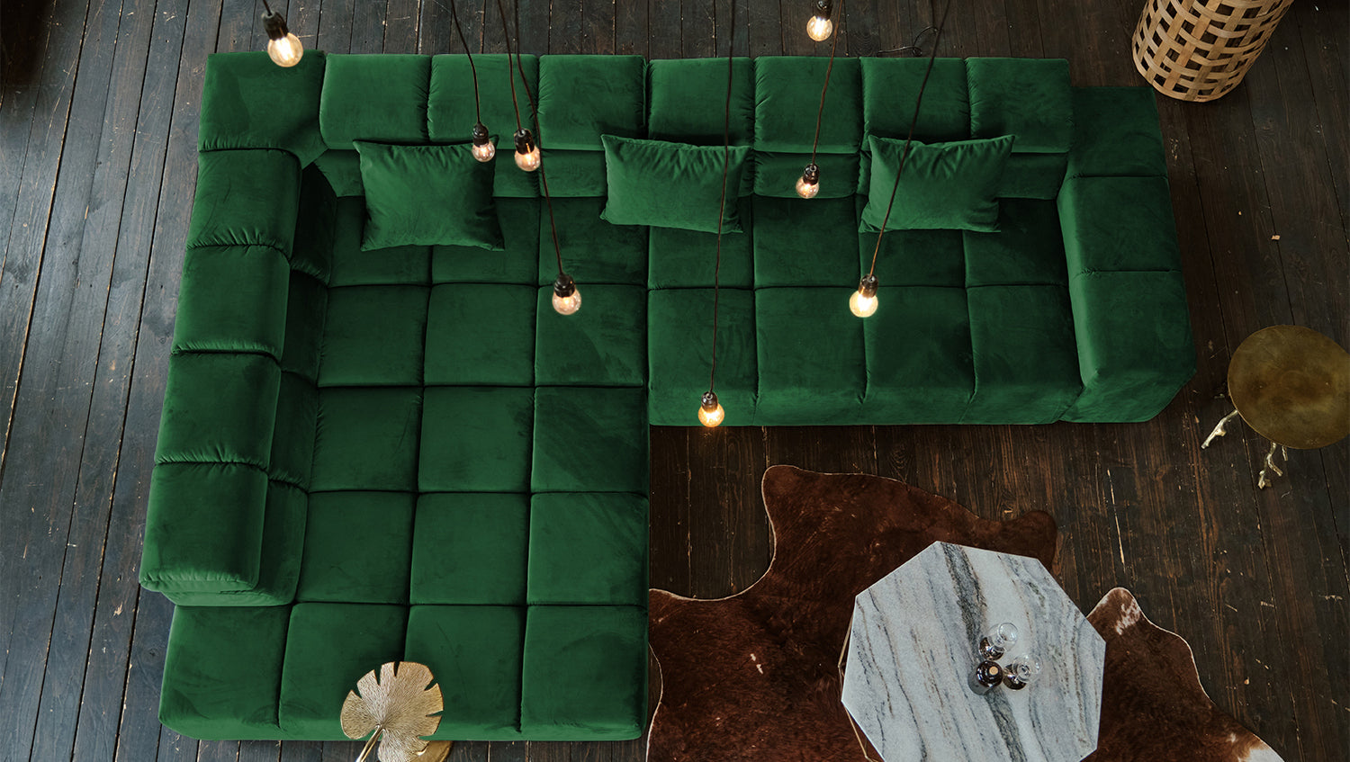 KAWOLA Sofa NEVADA Ecksofa Velvet smaragd