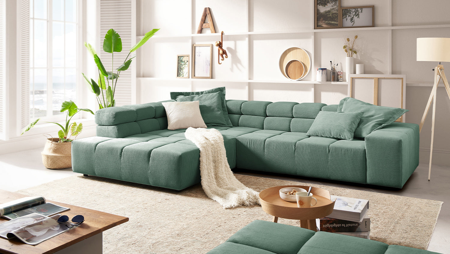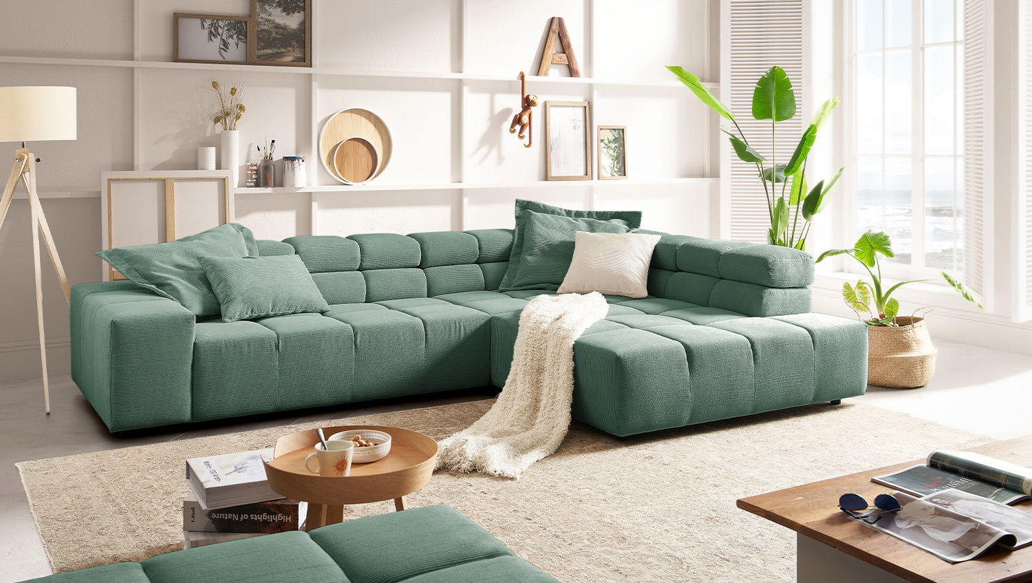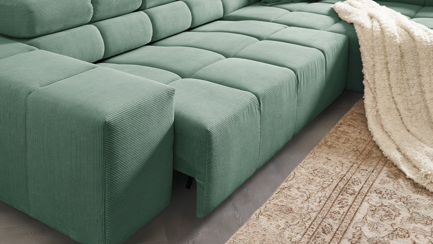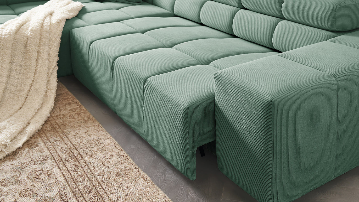 KAWOLA Sofa NEVADA Ecksofa Feincord grün