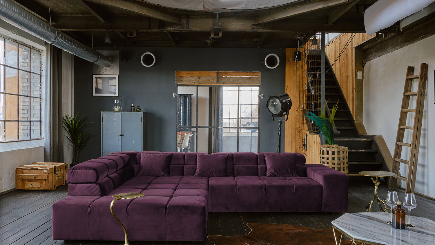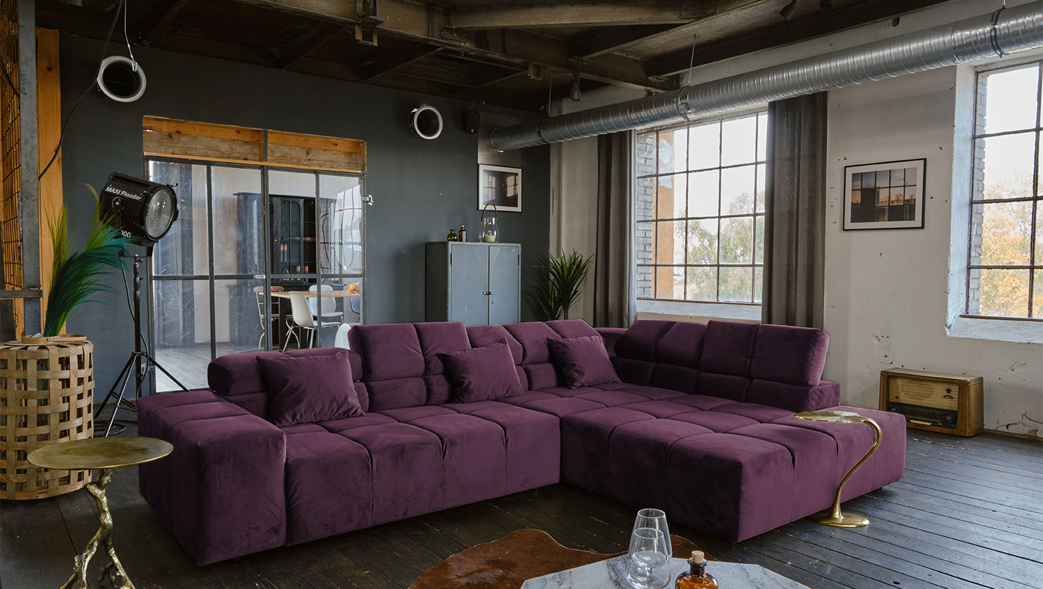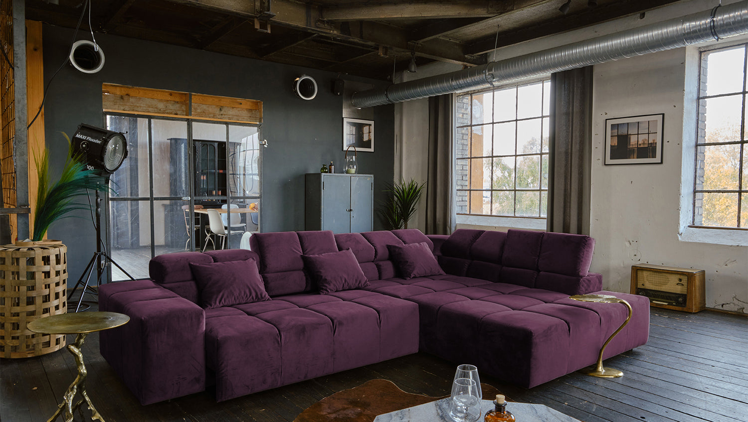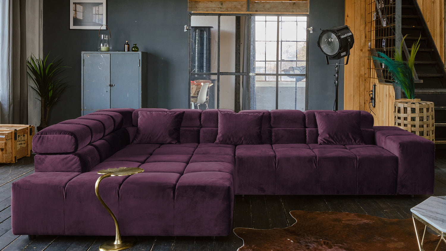 KAWOLA Sofa NEVADA Ecksofa Velvet purple