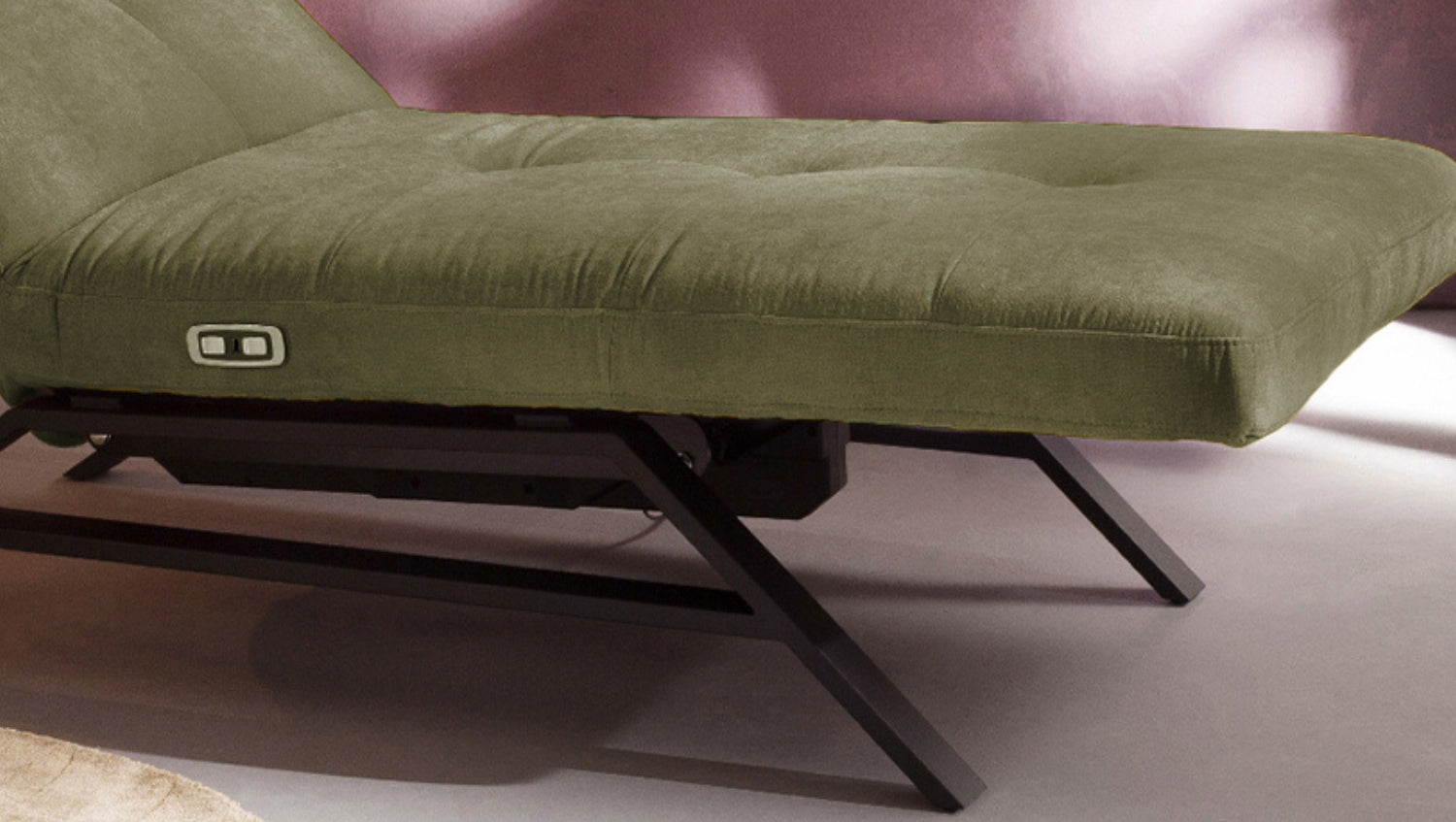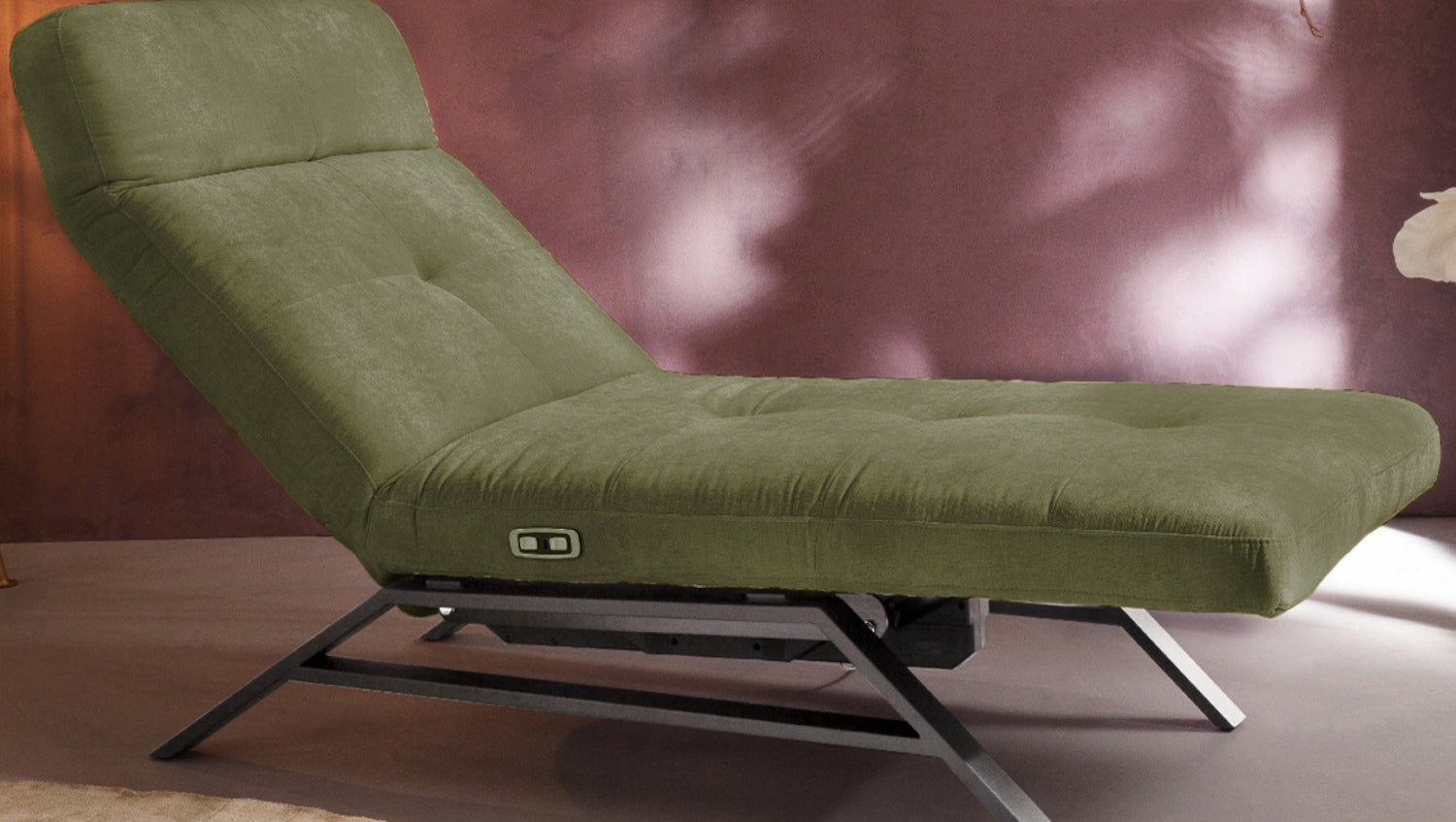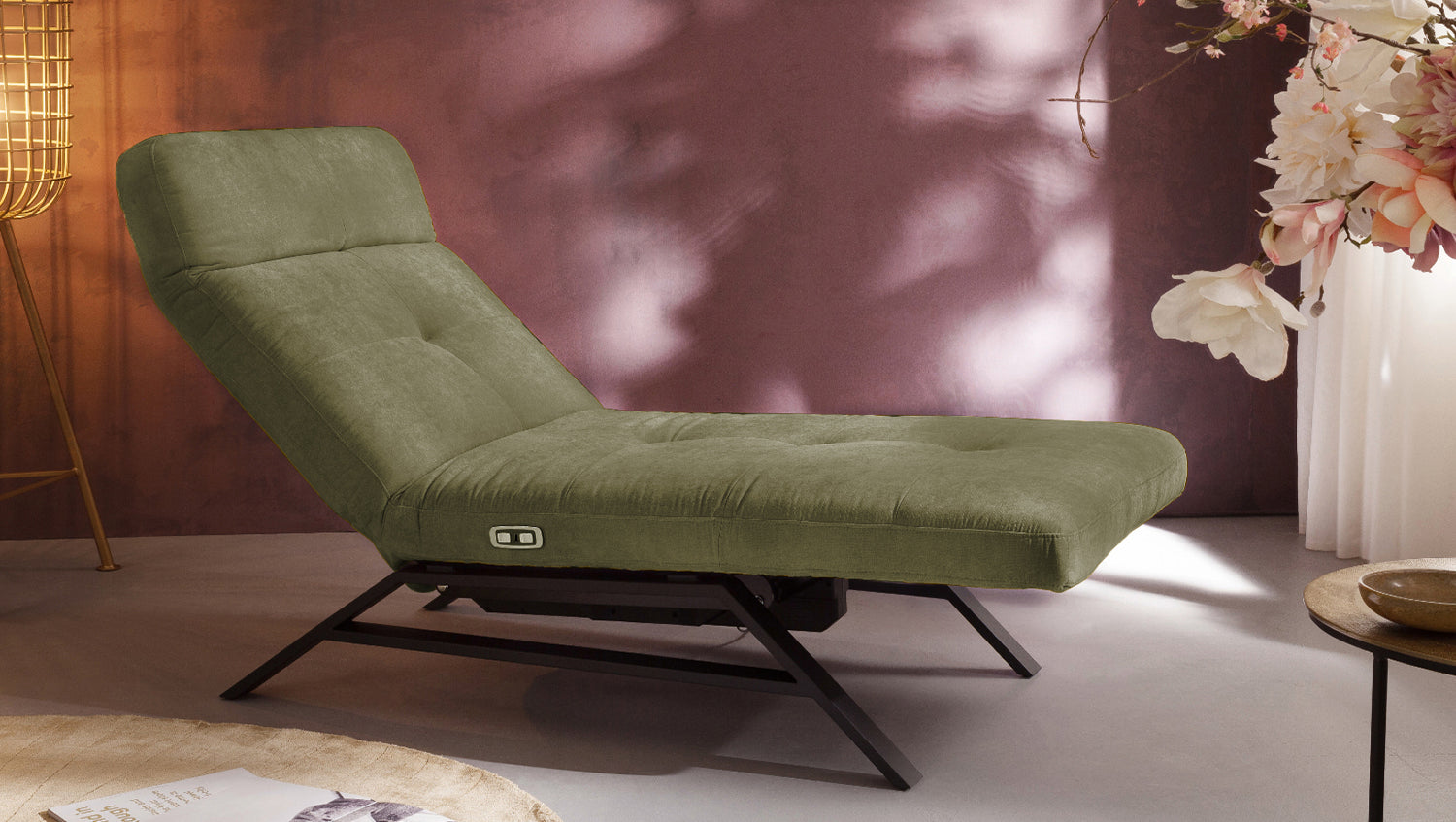 Die KAWOLA Liege AMERIVA ist eine wunderbare Kombination aus Design und Funktion. Die Metallkufen in schwarz matt bilden den Kontrast zum angesagten Velvet-Stoff. Allerdings ist die Relaxliege nicht nur rein optisch ein richtiges Highlight - auch die Funktionen betreffend bleibt hier kein Wunsch offen. Die motorische Funktion, die durch die Knöpfe auf der rechten Seite bedient werden kann, bietet eine stufenlos einstellbare Liegeposition. Zusätzlich verfügt die Liege über einen USB-Anschluss. Die Einsetzbarkeit dieses Möbelstücks ist so vielfältig wie seine Funktionen: Nicht nur im heimischen Wohnbereich, auch in der Lobby oder im Ruheraum macht die Relaxliege AMERIVA eine tolle Figur.