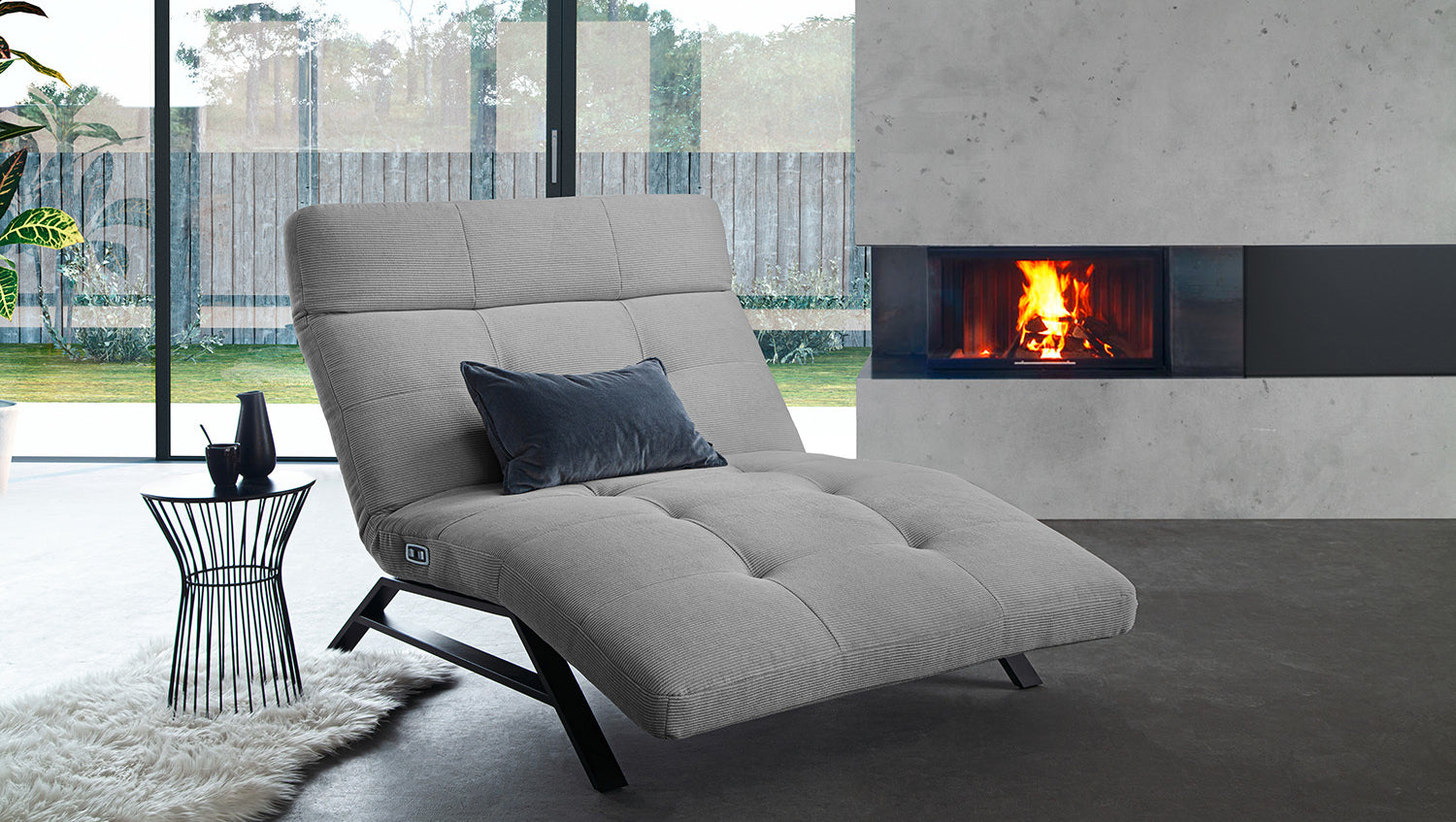 Die motorische Funktion, die durch die Knöpfe auf der rechten Seite bedient werden kann, bietet eine stufenlos einstellbare Liegeposition. Bei komplett ausgefahrener Funktion gelangen Sie in die Herz-Waage Position, bei der sich das Herz und die Füße auf derselben Position befinden. Diese Position bewirkt optimale Durchblutung, entlastet die Beine und eignet sich daher perfekt zum Entspannen. Die weiche Polsterung sorgen für höchsten Sitz- und Liegekomfort.