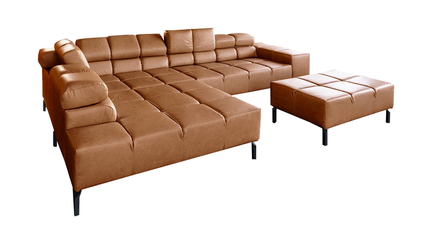 Das KAWOLA Ecksofa NELSON verbindet moderne Designwelten mit zeitloser Eleganz und fügt sich nahtlos in jedes Interieur ein. Der edle Bezug aus pigmentiertem Leder verleiht dem Sofa hochwertige Optik und ein angenehmes Sitzgefühl. Naturmerkmale (z.B. Narben, Insektenstiche), Struktur- und Farbabweichungen sind dabei unvermeidlich und warentypisch. Seine kubische Form und die hohen Metallfüße verleihen dem Sofa eine gewisse Leichtigkeit, die durch die quadratischen Absteppungen noch unterstrichen wird. Die Kopfstützen können ganz nach den individuellen Sitzvorlieben entweder hoch-oder heruntergeklappt werden. Die komplexe, 3-stufige Polsterung garantiert außerdem höchsten Sitzkomfort. Selbstverständlich wurde das Sofa auch auf der Rückseite mit dem hochwertigen Leder bezogen, sodass es auch frei in den Raum gestellt eine gute Figur macht. Egal zu welcher Gelegenheit - auf dem Sofa NELSON findet jeder ein Plätzchen zum Entspannen!