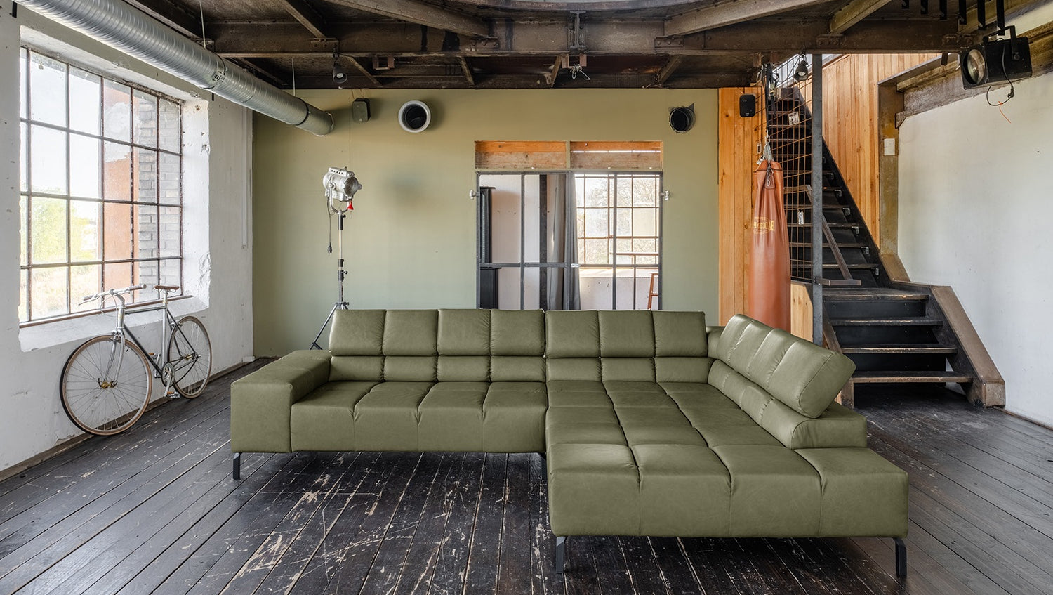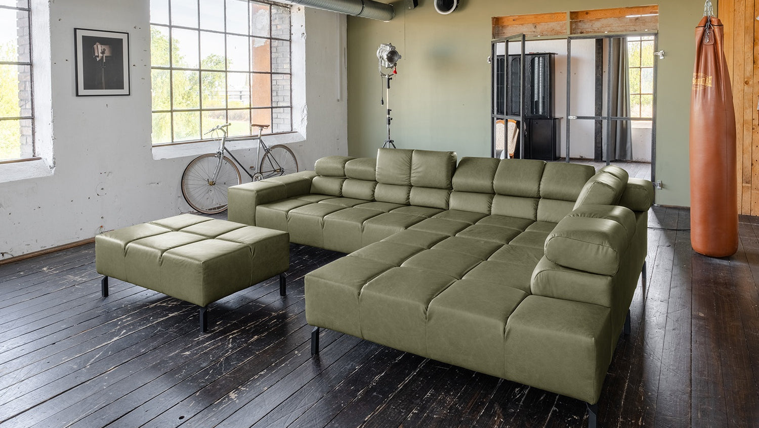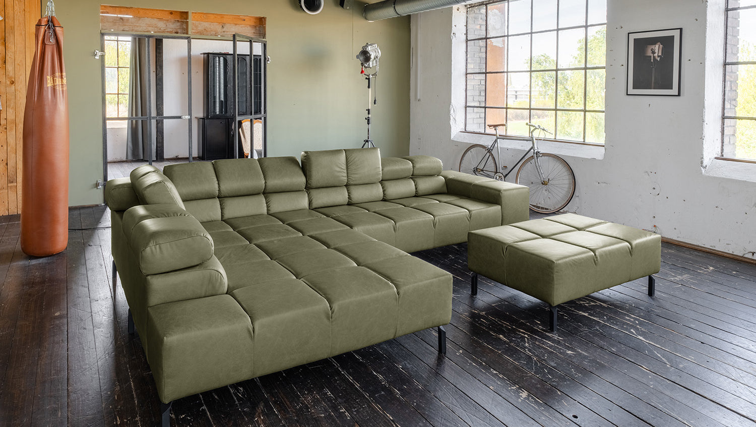 KAWOLA Sofa NELSON Ecksofa Leder olivgrün