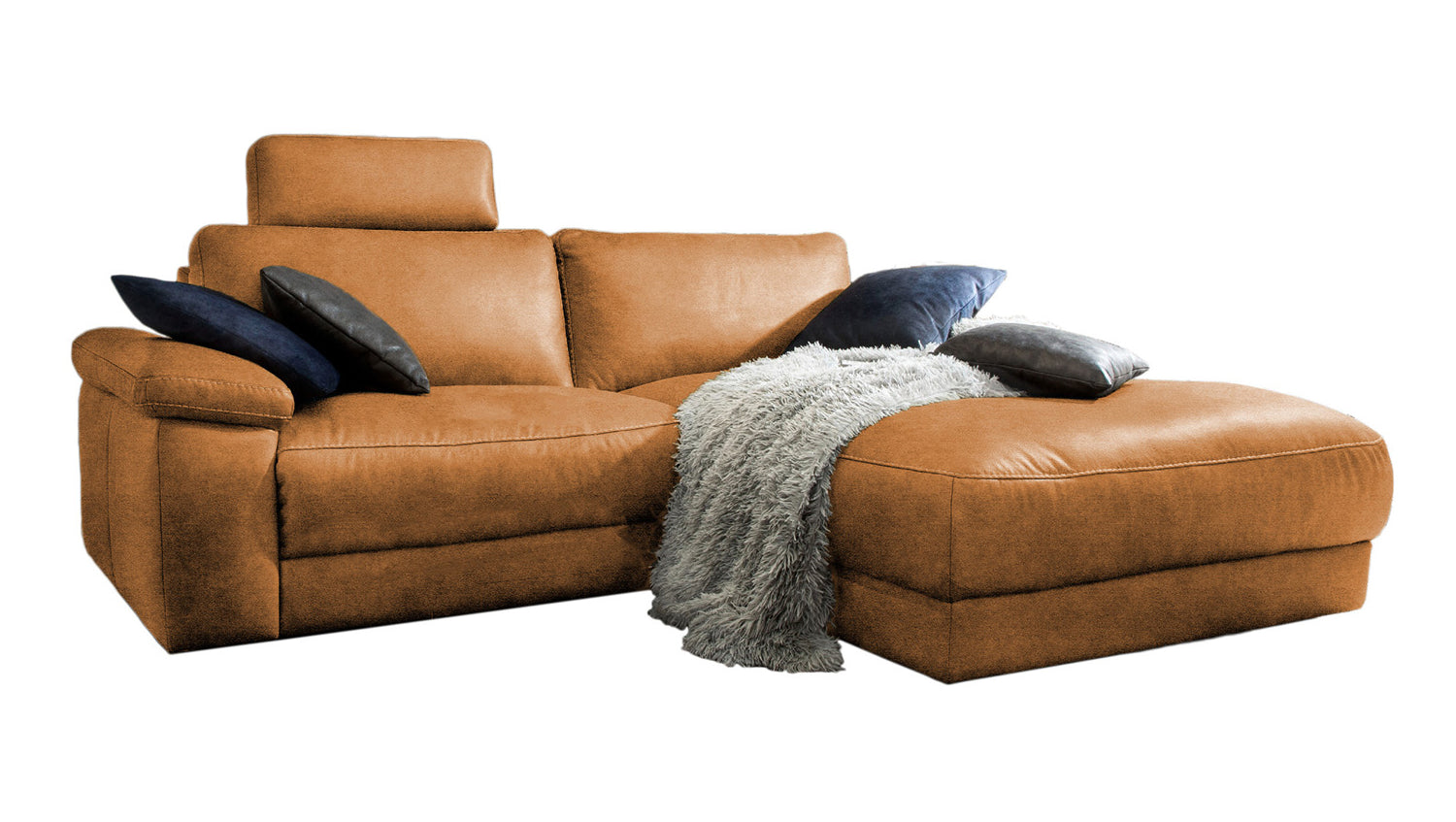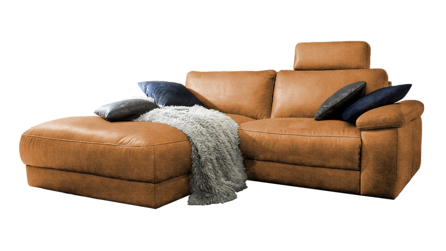 KAWOLA Sofa LOLA Ecksofa cognac mit motorischer Relaxfunktion versch. Bezüge