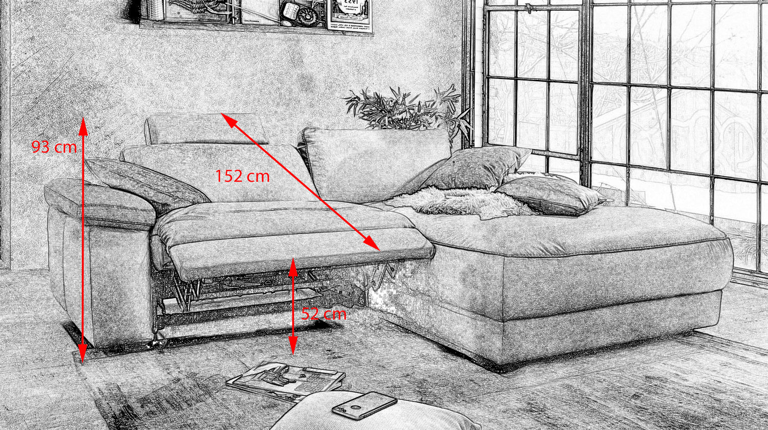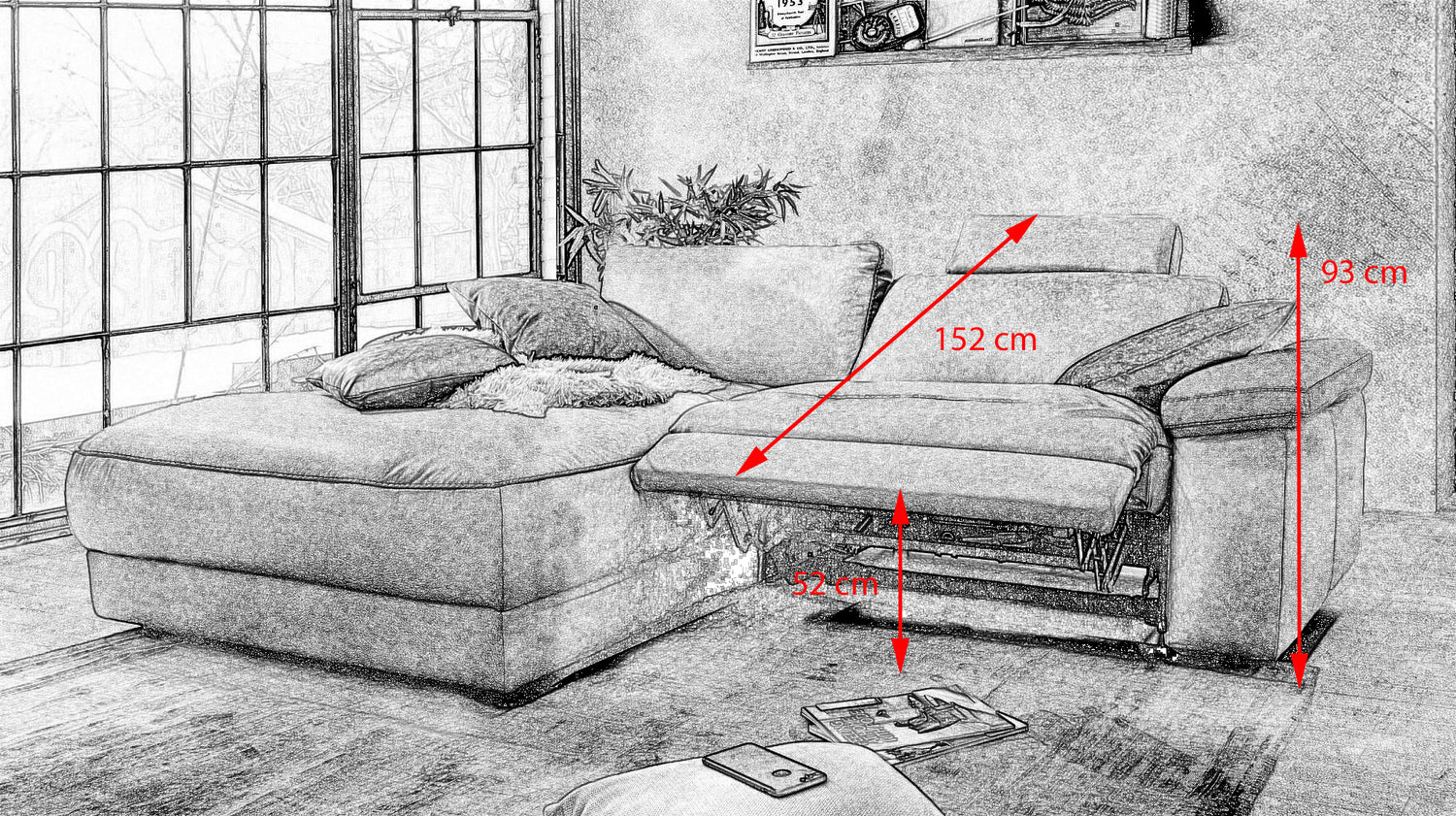 Das KAWOLA Ecksofa LOLA überzeugt durch seinen zeitlosen Look. Zudem wartet das Möbelstück mit tollen Funktionen auf. Das rechte Sitzelement verfügt über eine Relaxfunktion mit Motor, so kann die Lehne nach hinten und eine Fußstütze ausgefahren werden. Ein weiteres Highlight ist die Kopfstütze in Kissenoptik, diese kann ebenfalls nach Bedarf verstellt werden. Das Gestell besteht aus verleimtem Massivholz, die Sitz- und Lehnflächen sind durch ihren vielschichtigen Aufbau überaus komfortabel. Der Bezug aus hochwertigem Leder oder Stoff im Vintage-Stil ist äußerst pflegeleicht und verleiht dem Sofa eine klassische Eleganz. Die zurückgesetzten Kunststofffüße in schwebender Optik bilden dazu einen reizvollen Kontrast. Die sehr legere Polsterung der Sitzflächen, Rücken- und Armlehnen bietet darüber hinaus einen hohen Sitzkomfort. Das Ecksofa LOLA fügt sich nahtlos in jede Umgebung ein und macht überall eine gute Figur!