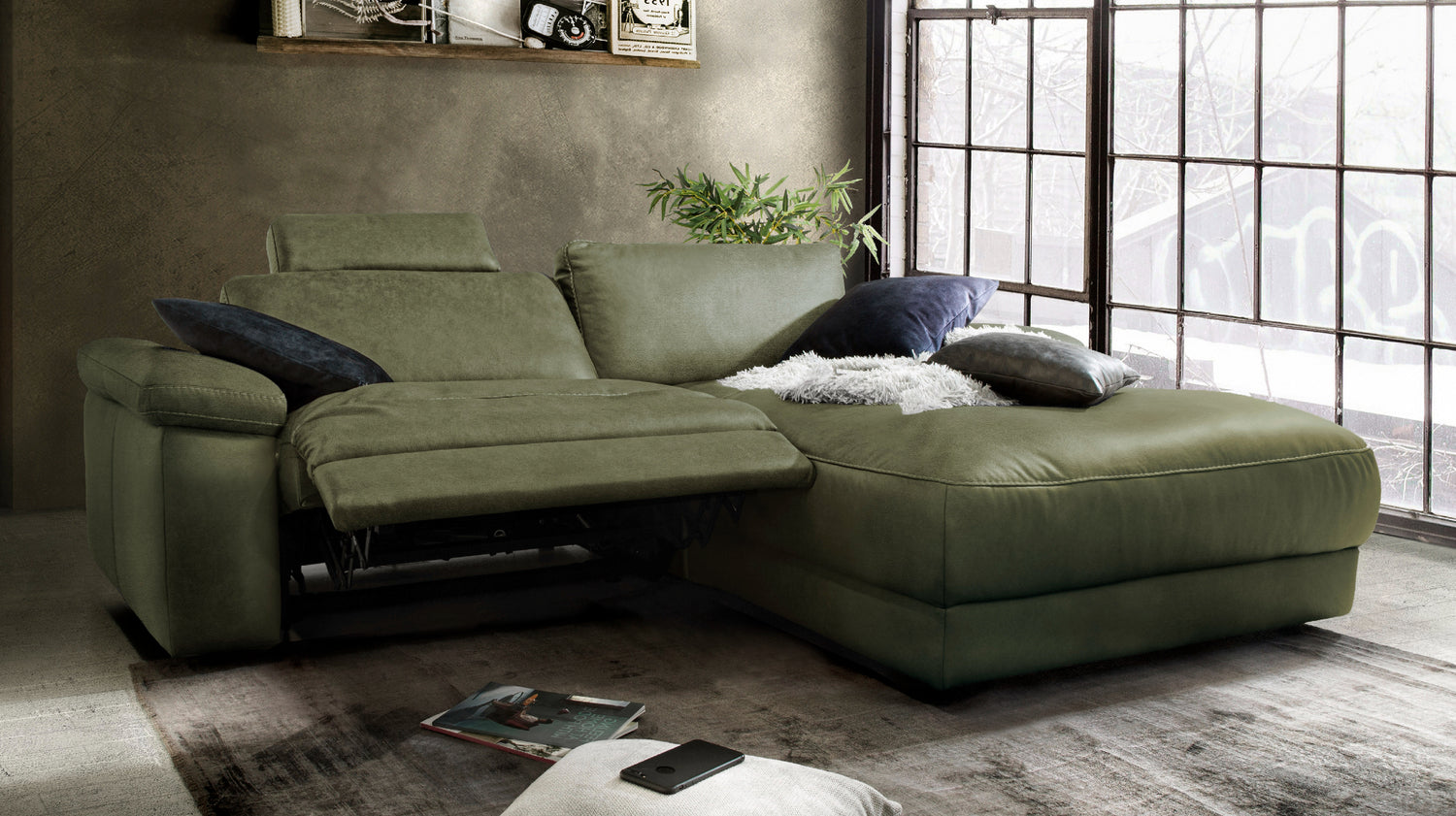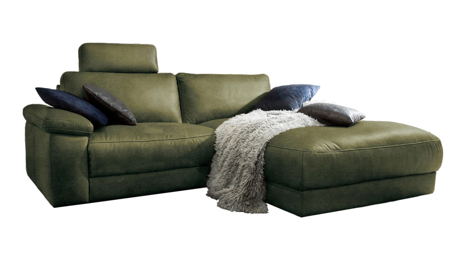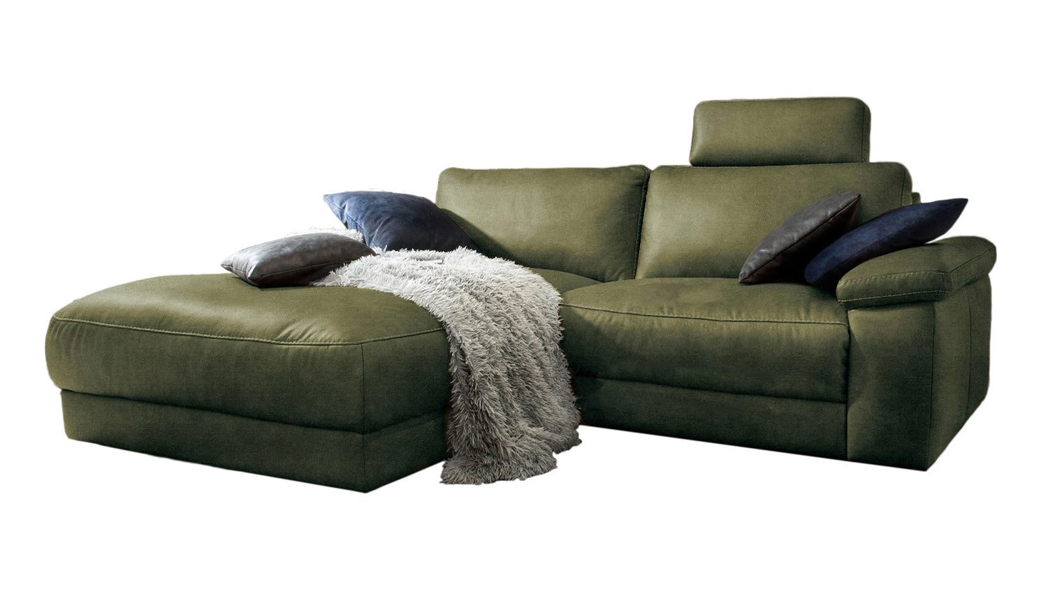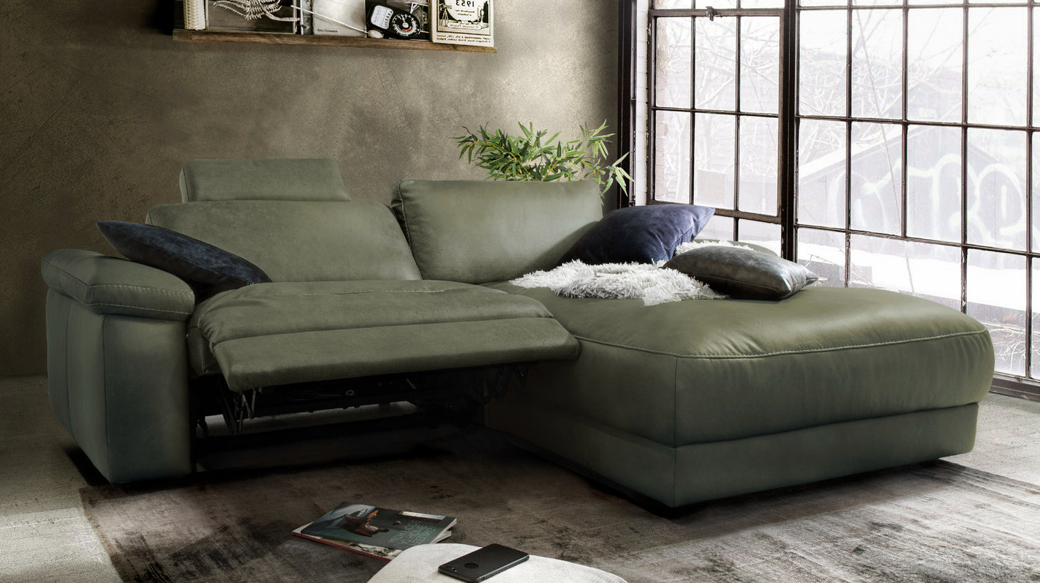 KAWOLA Sofa LOLA Ecksofa moosgrün mit motorischer Relaxfunktion versch. Bezüge