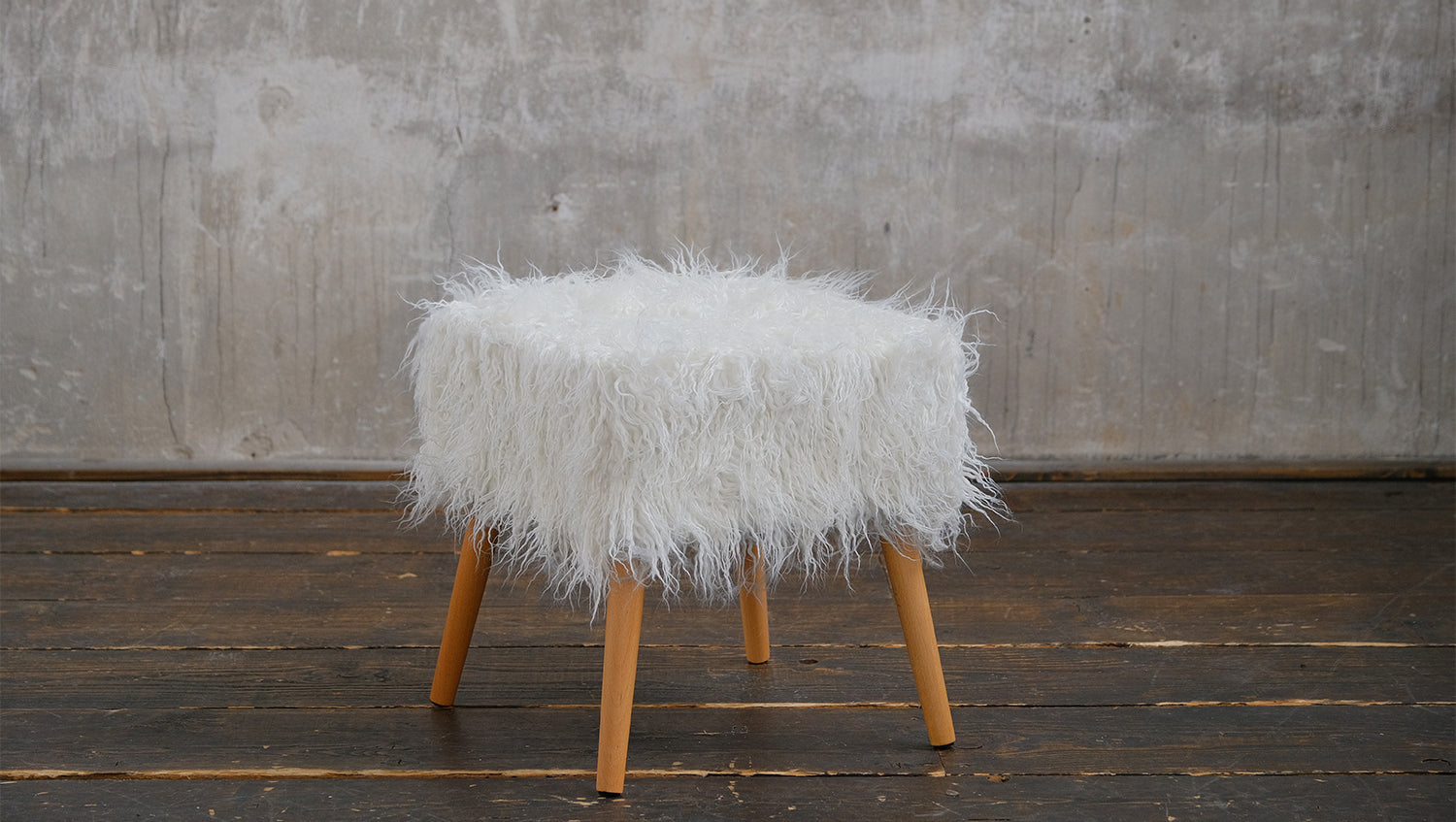 KAWOLA Hocker Fell FYNN Flokati Fellhocker weiß