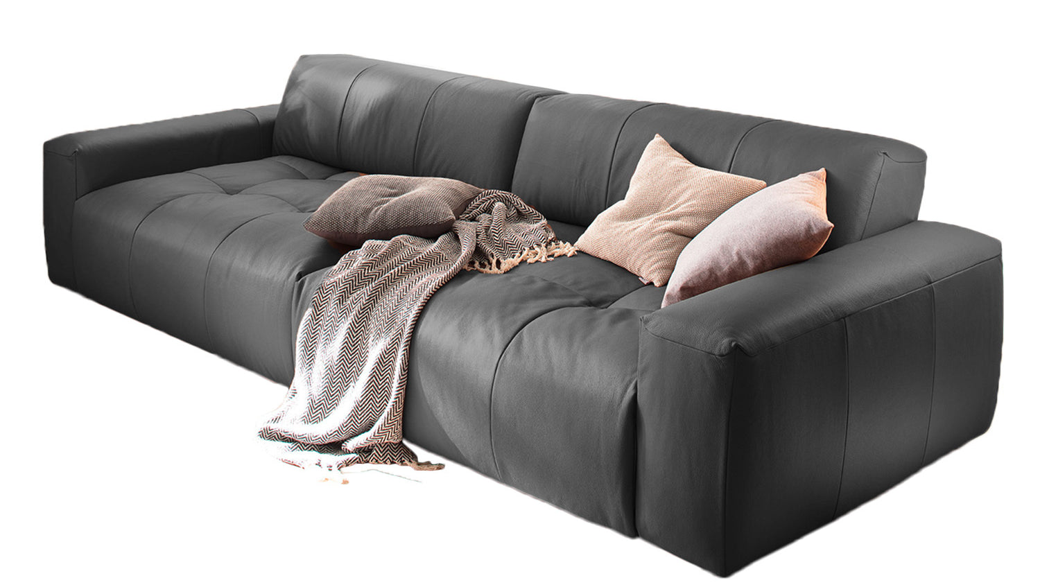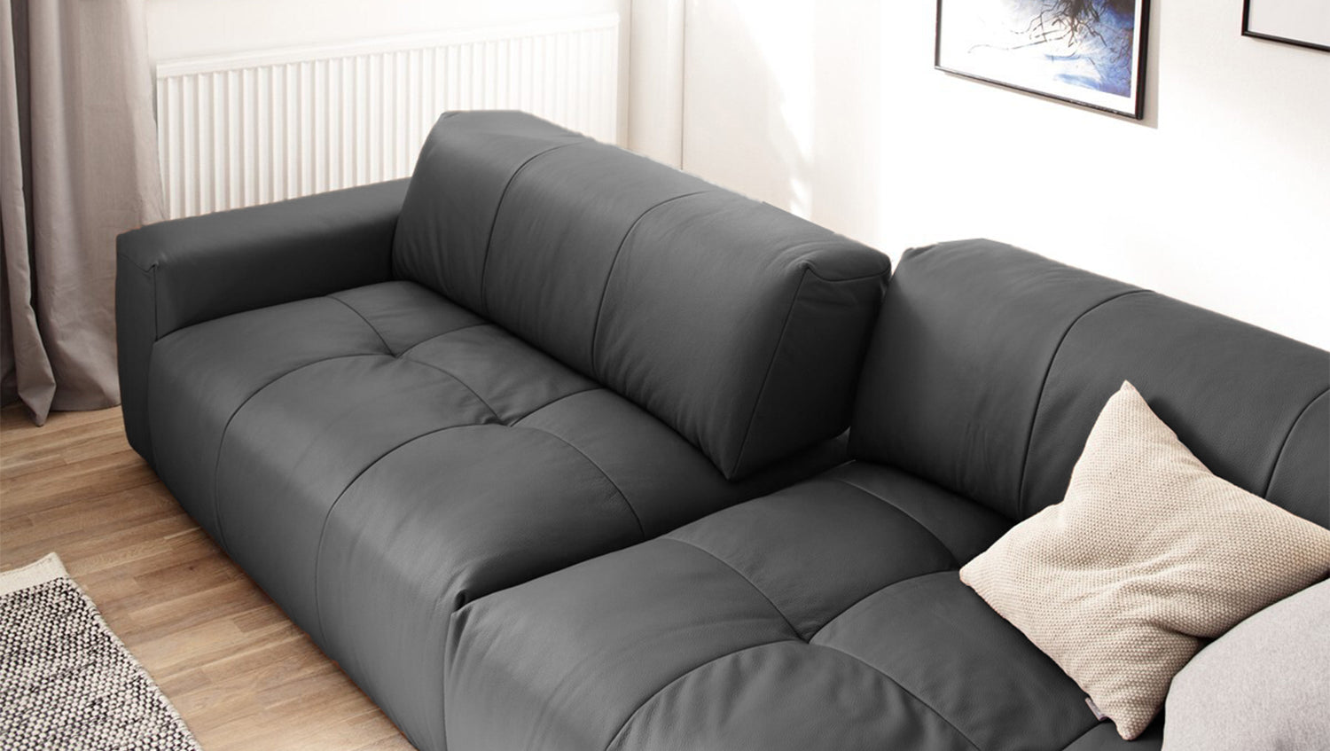Sofa PALACE überzeugt mit zeitloser Eleganz, modernem Design und besonders hohem Komfort. Der langlebige Dickleder-Bezug umspannt die gemütliche Liegefläche, deren legere Polsterung zum ausgiebigen Entspannen einlädt und Ihnen pure Erholung schenkt. Das besondere Extra: Sofa PALACE lässt sich im Handumdrehen vom Big Sofa zum klassischen Sitzmöbel verwandeln. Dank Sitztiefenverstellung, welche durch die Verstellung der Rückenlehne erfolgt, lässt sich die Sitztiefe von 83 cm auf 59 cm verkleinern. So können Sie frei entscheiden, ob Sie eine aufrechtere Sitzposition bevorzugen oder lieber Platz zum Ausstrecken bevorzugen.