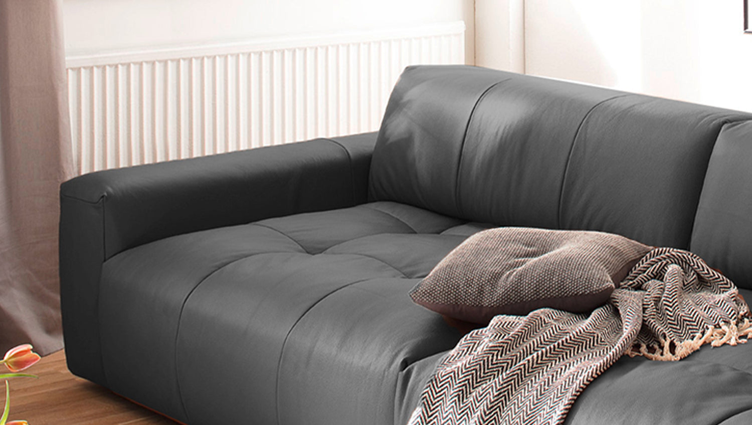 Hinweis: Die Bezüge zeigen im Neuzustand ein ausgeprägtes Wellenbild, das design-, modell- und konstruktionsbedingt gewollt ist. Die Polsterung wird sich der Körperform anpassen bzw. die Sitzfestigkeit leicht nachlassen. Geringfügige Unterschiede in der Sitzhärte bei Anbaugruppen sind konstruktionsbedingt und daher kein Beanstandungsgrund.
