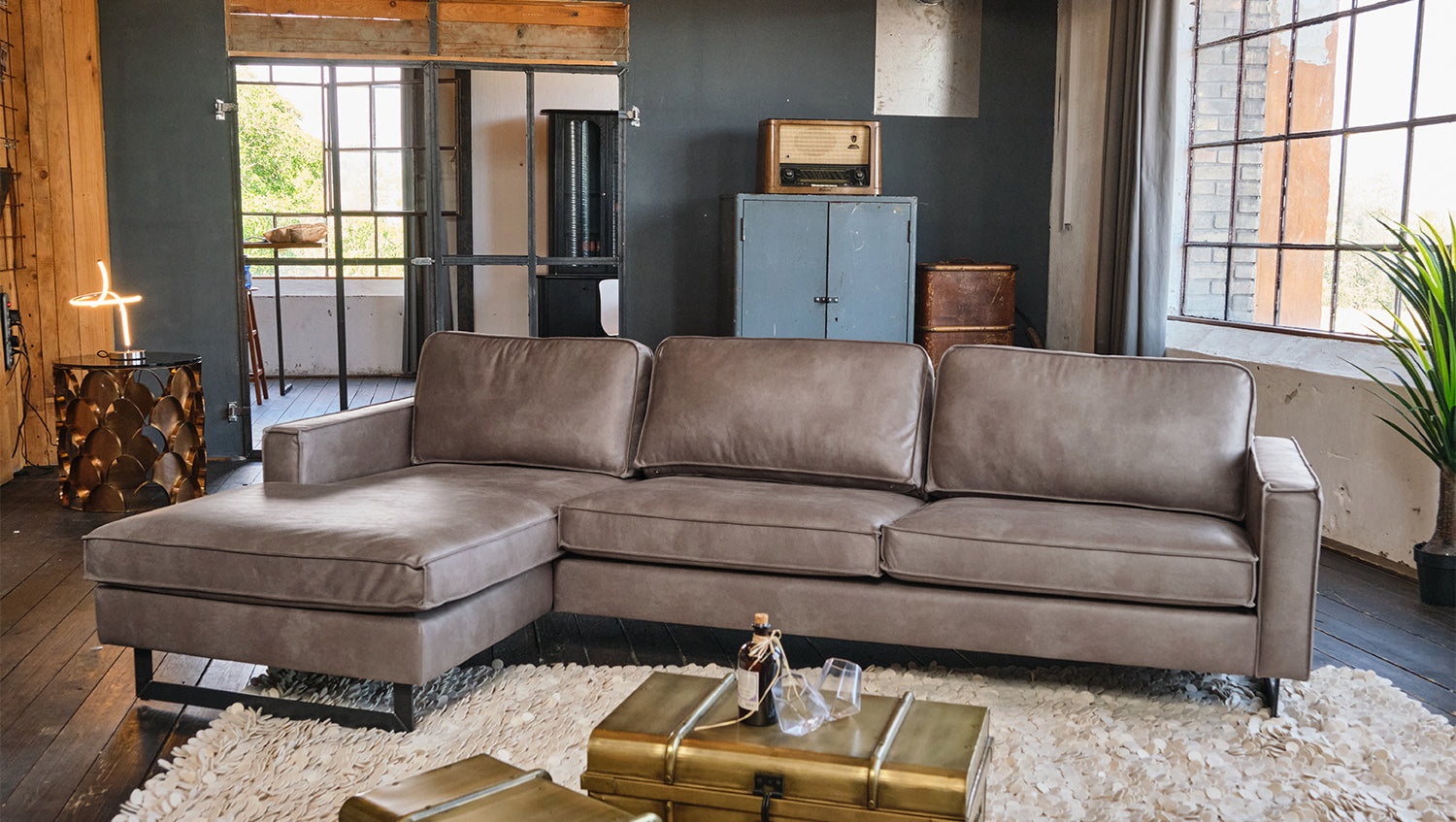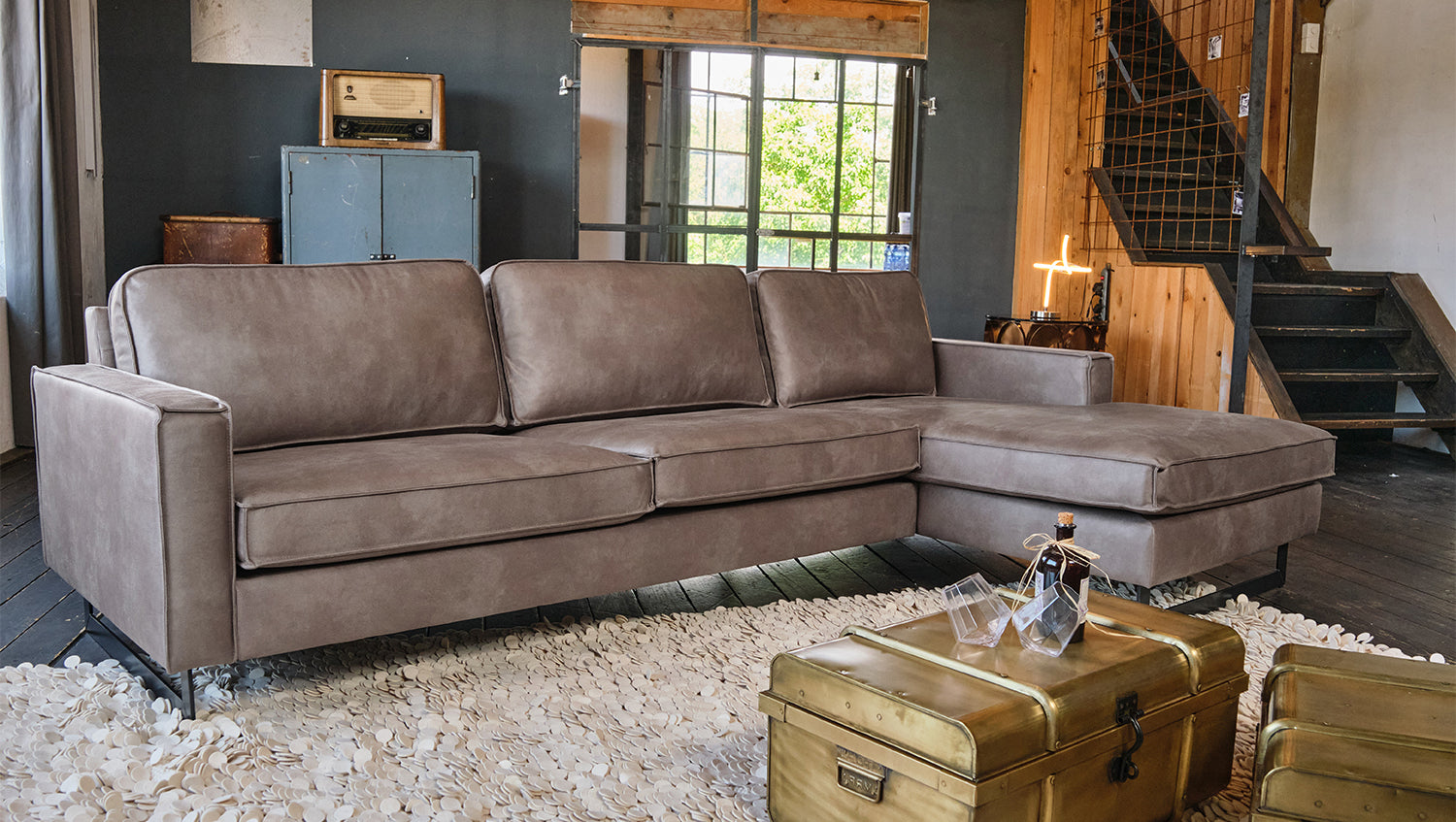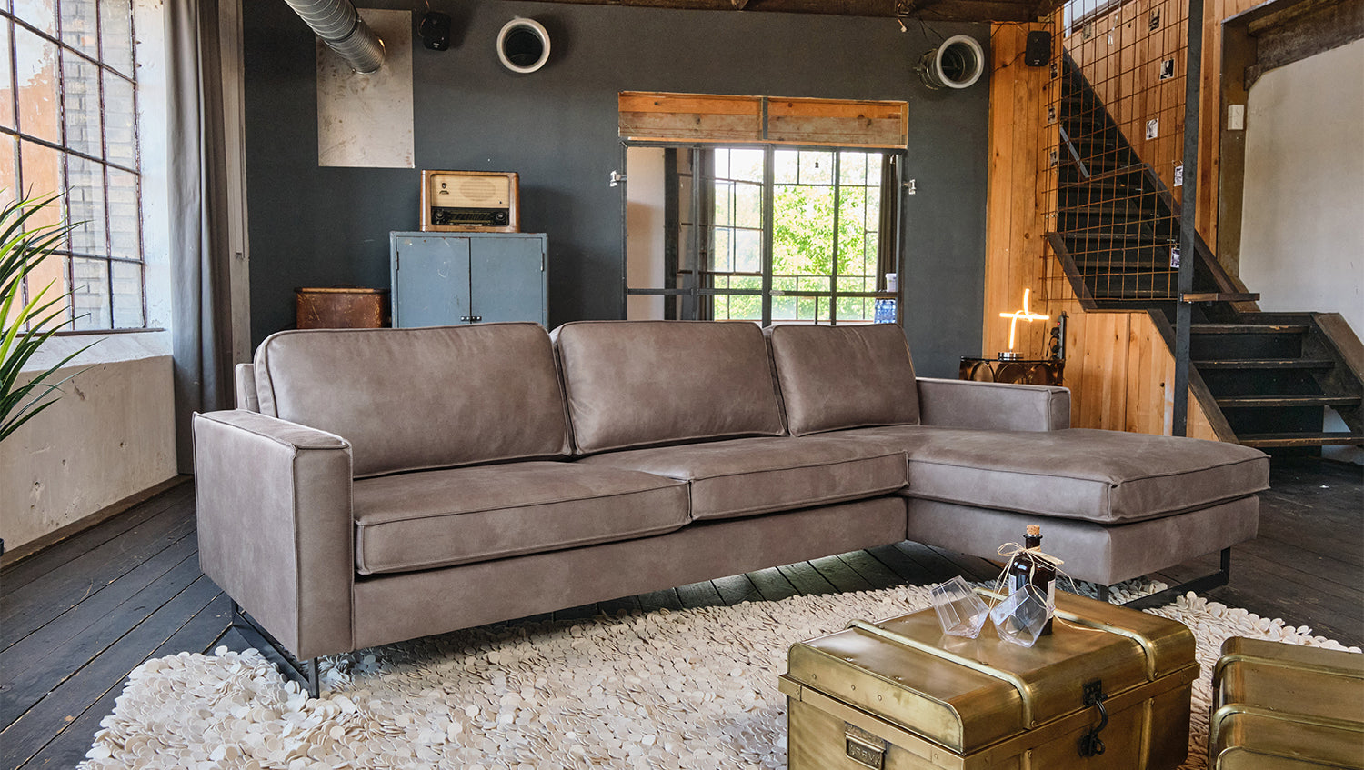 Extreme Robustheit ist durch das massive Holzgestell ebenso gegeben wie eine komfortable und legere Polsterung für ein weiches Sitzvergnügen. Trotz seiner großflächigen Maße lässt sich das Ecksofa in allen Räumlichkeiten flexibel positionieren und stellt damit jederzeit ein optisches Highlight dar.