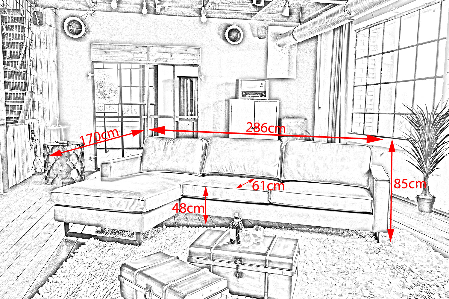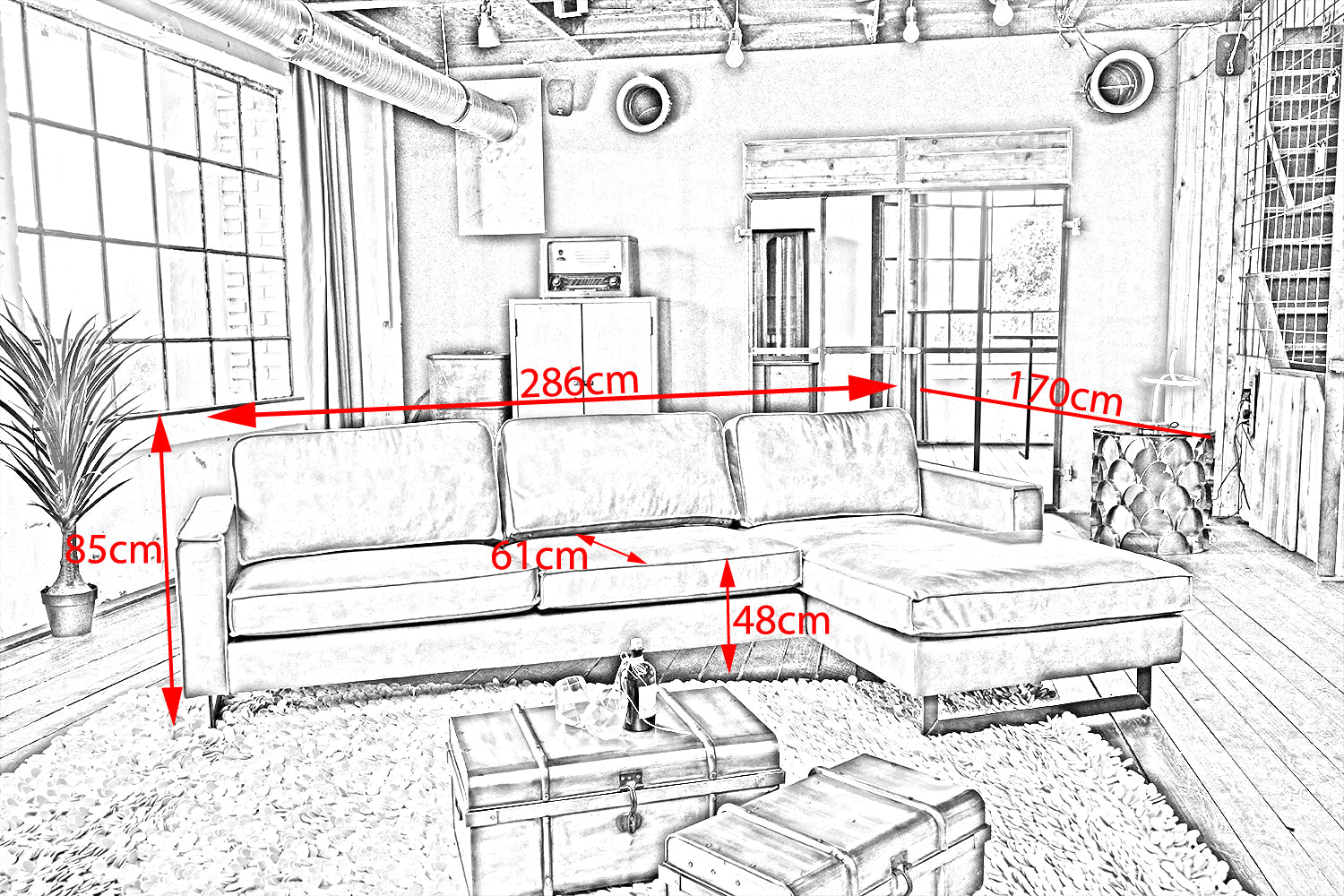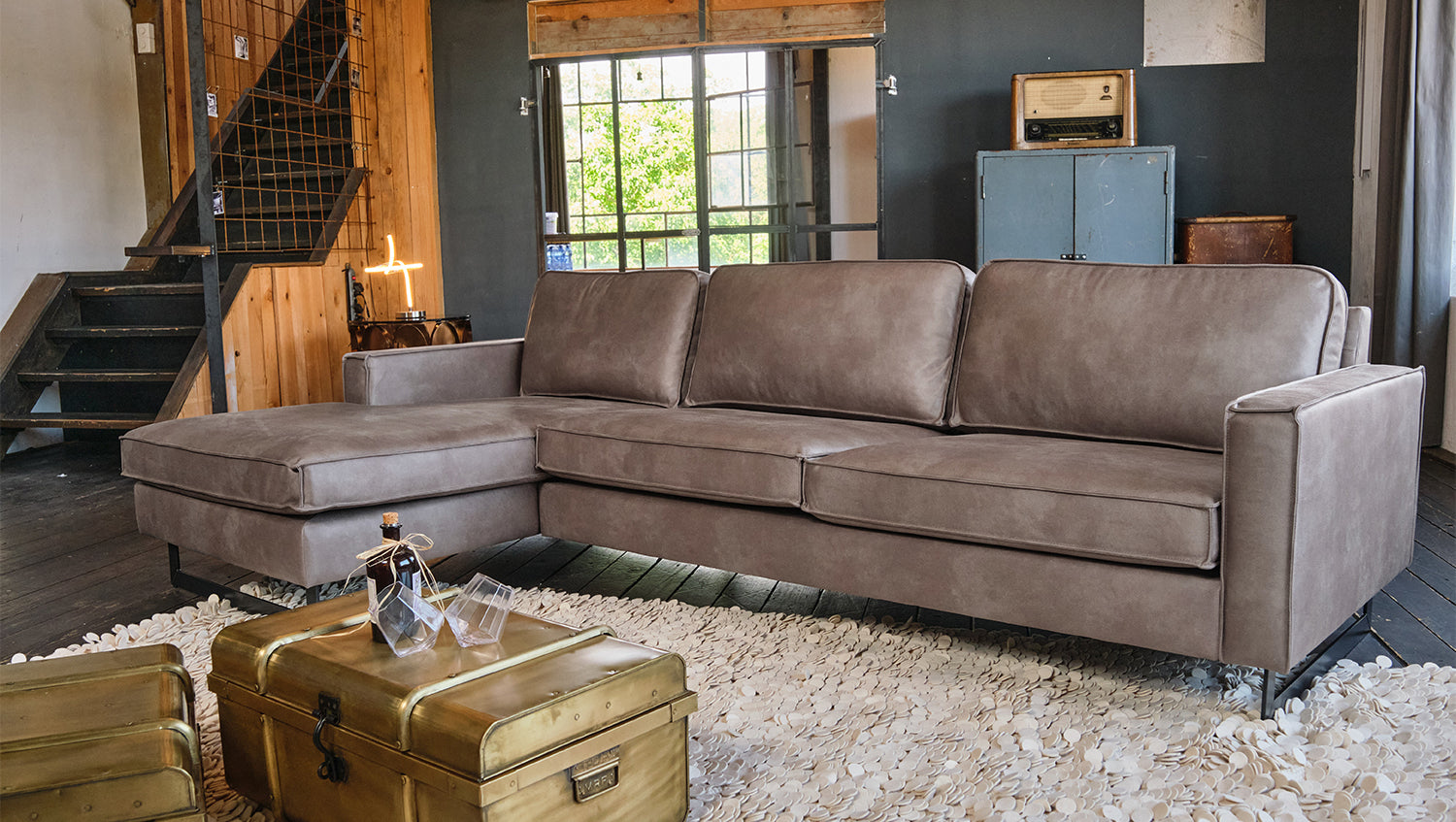 Extreme Robustheit ist durch das massive Holzgestell ebenso gegeben wie eine komfortable und legere Polsterung für ein weiches Sitzvergnügen. Trotz seiner großflächigen Maße lässt sich das Ecksofa in allen Räumlichkeiten flexibel positionieren und stellt damit jederzeit ein optisches Highlight dar.
