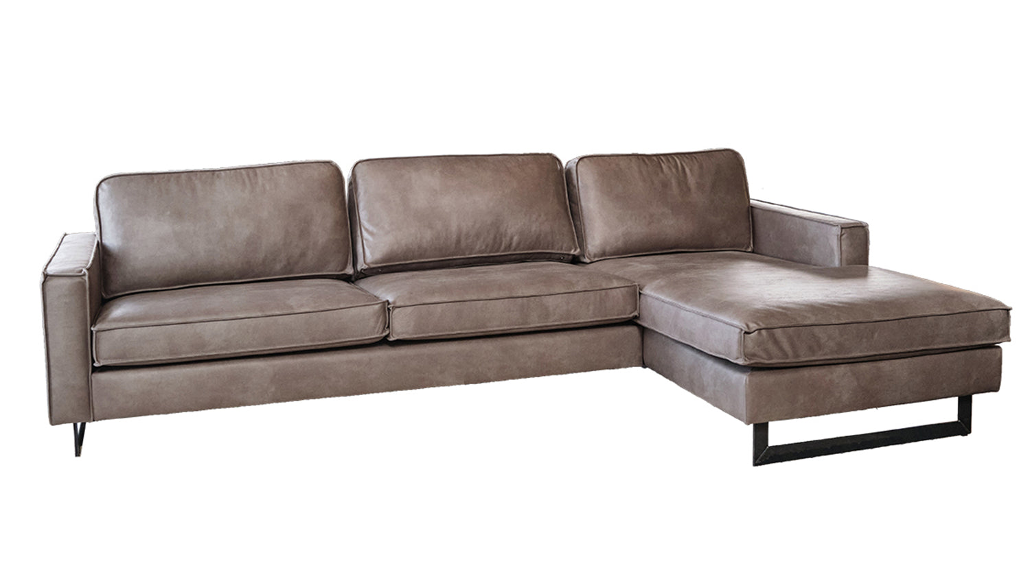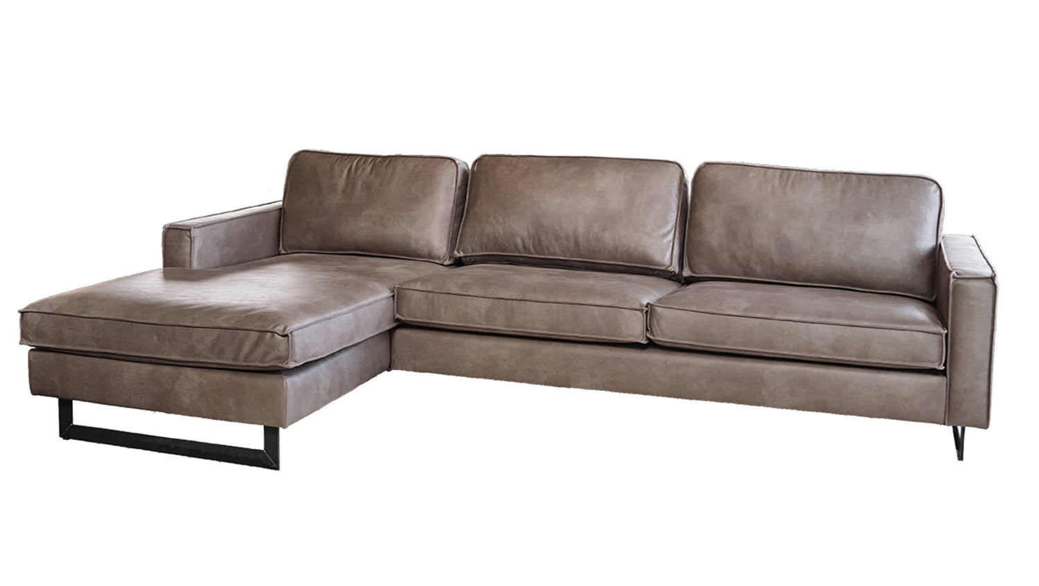 KAWOLA Ecksofa VILNIUS 3-Sitzer mit Longchair Lederfaserstoff anthrazit