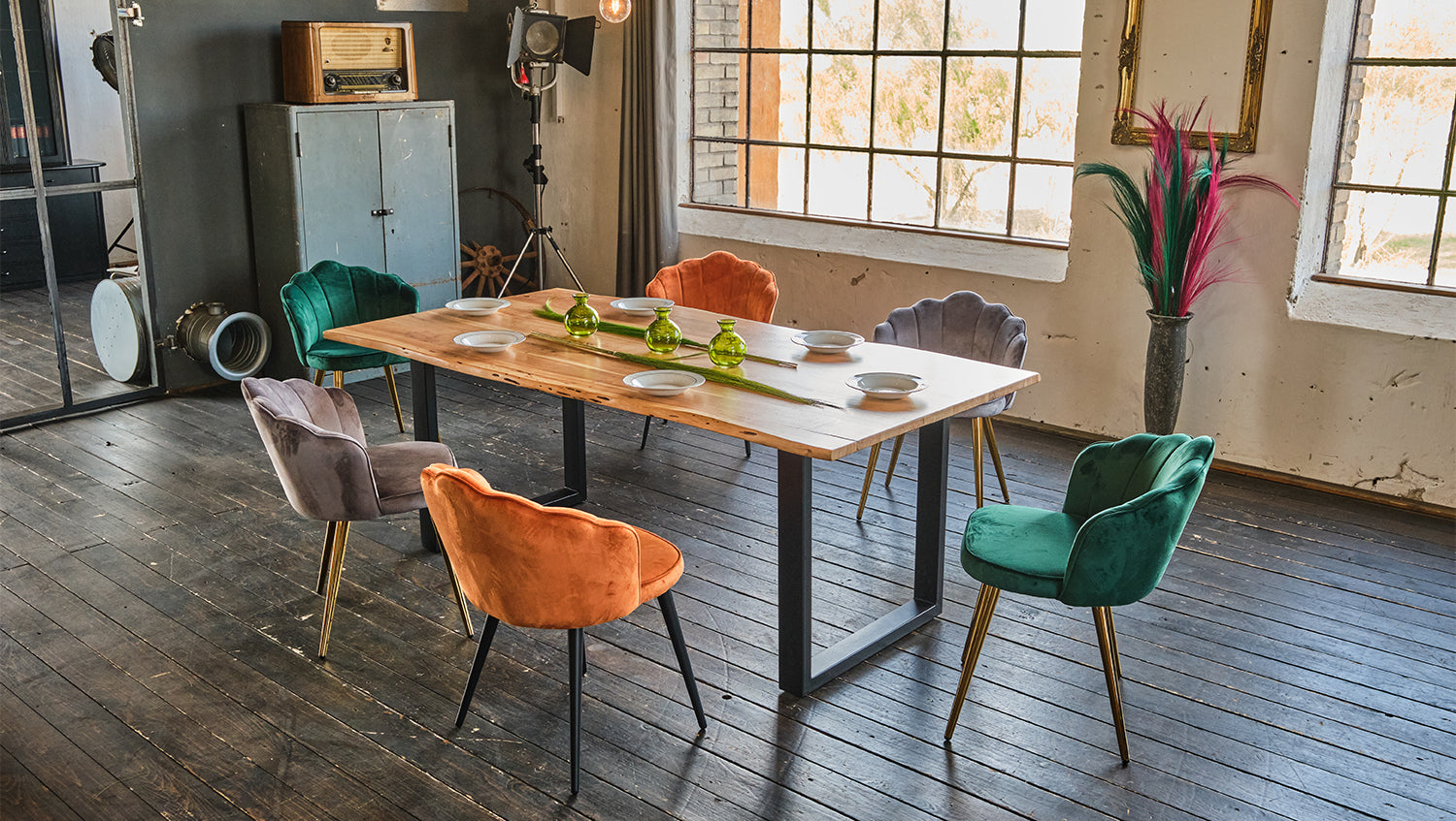 • Metallbeine schwarz pulverbeschichtet oder goldfarben