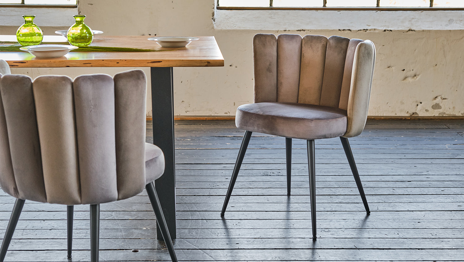 KAWOLA Stuhl JADA Esszimmerstuhl Velvet grau Fuß schwarz