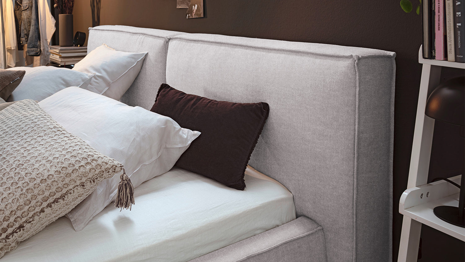 • Kopfteil hinten mit Spannstoff bezogen