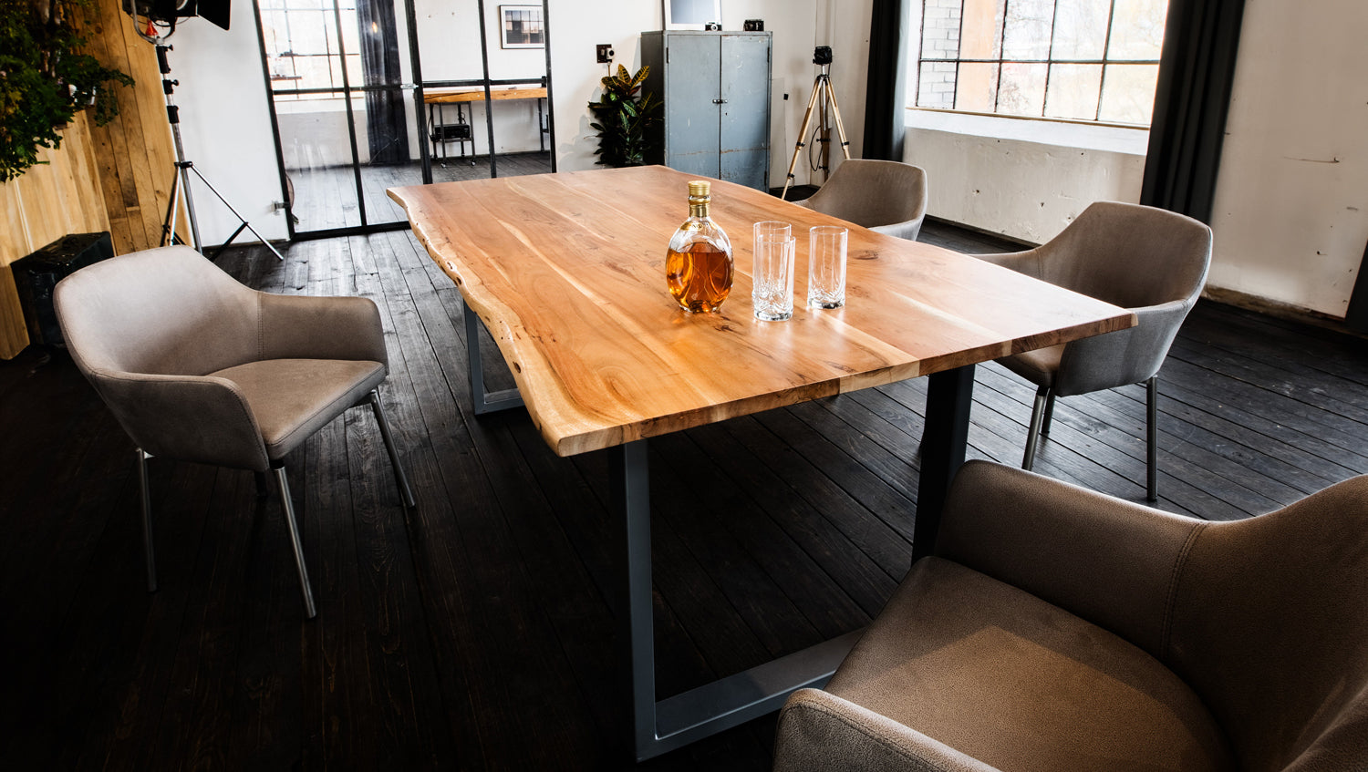• Gestell aus Edelstahl, chrom glänzend oder matt schwarz