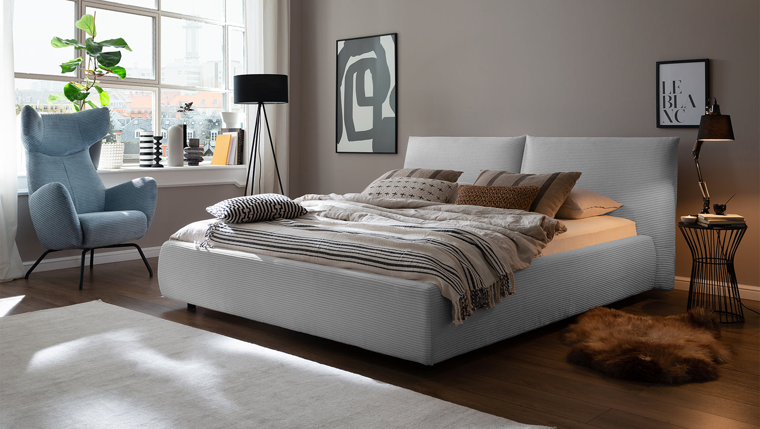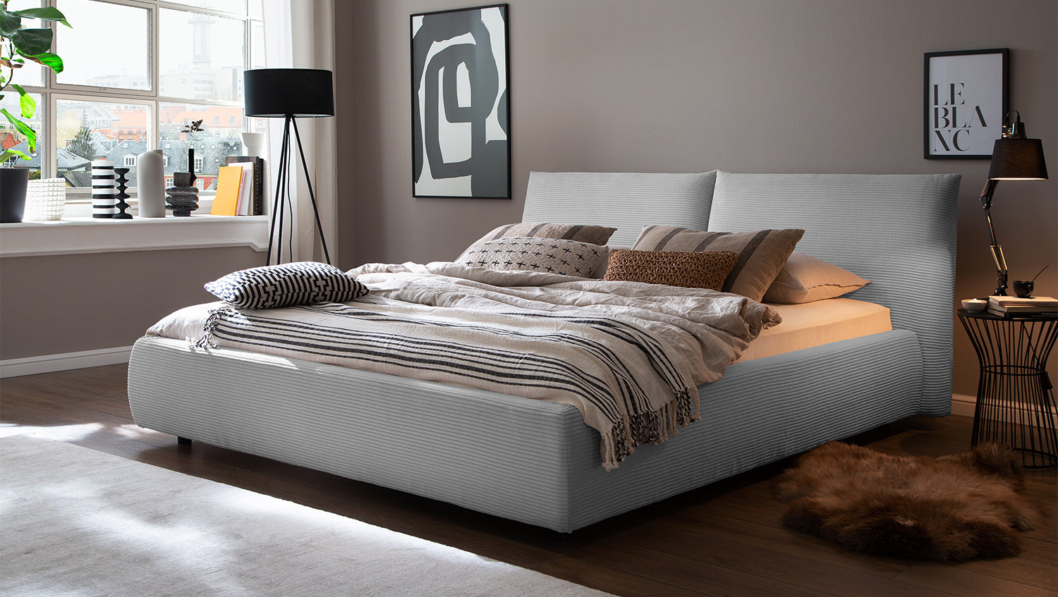 KAWOLA Bett HENRY Polsterbett Cord hellgrau