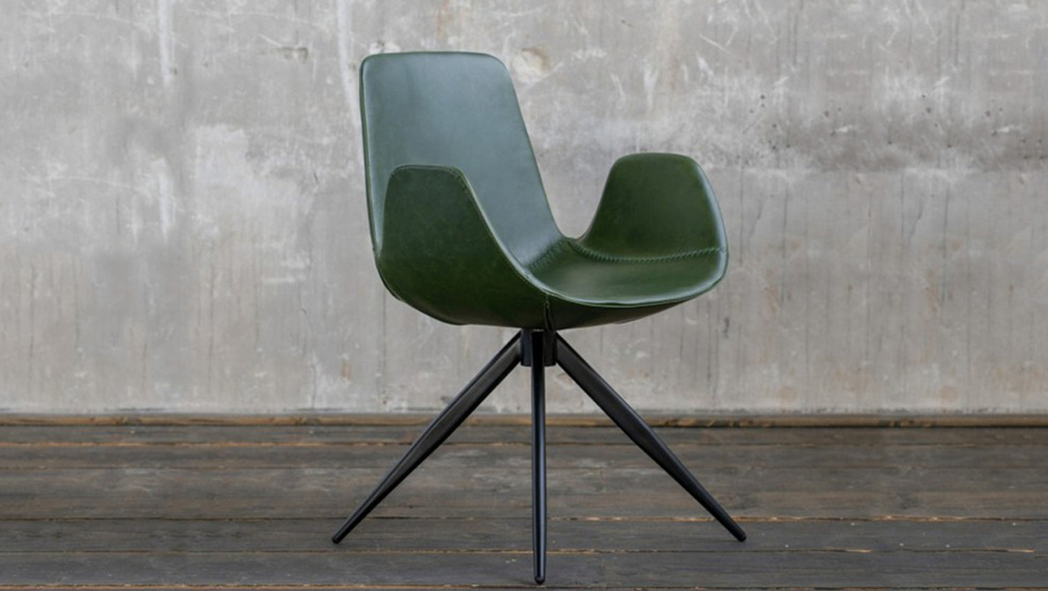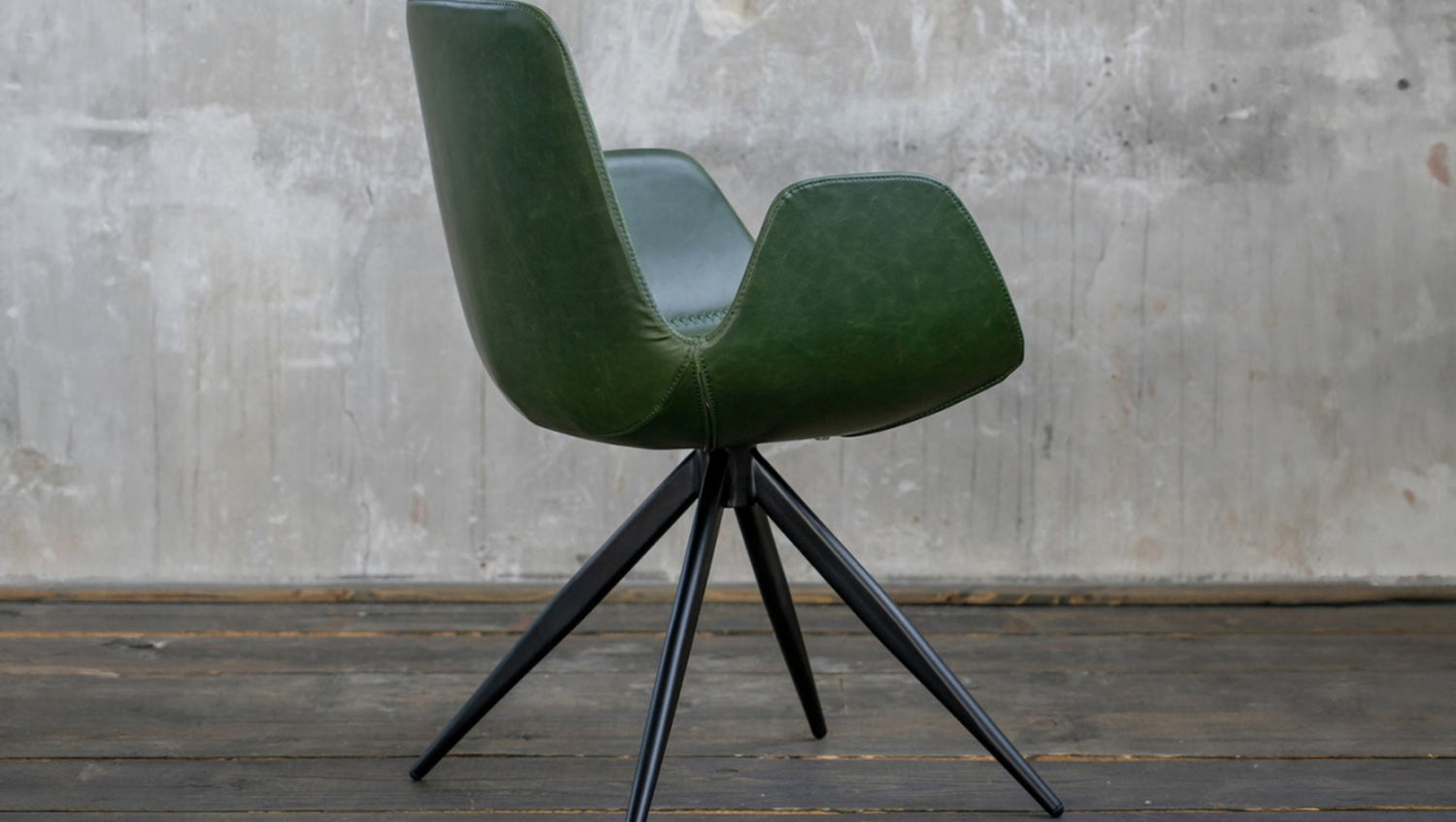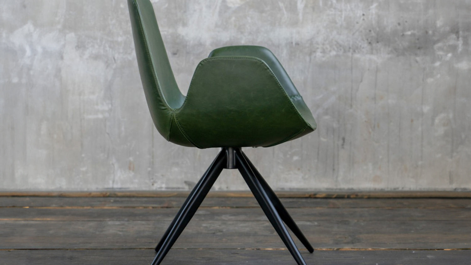 Die Sitzschale ist in einem strapazierfähigem Kunstleder bezogen welches vor allem durch die angenehme Haptik heraussticht. Die Füße des Stuhls haben die Farbe schwarz und setzen sich somit optimal von der modern geformten Sitzschale ab.
