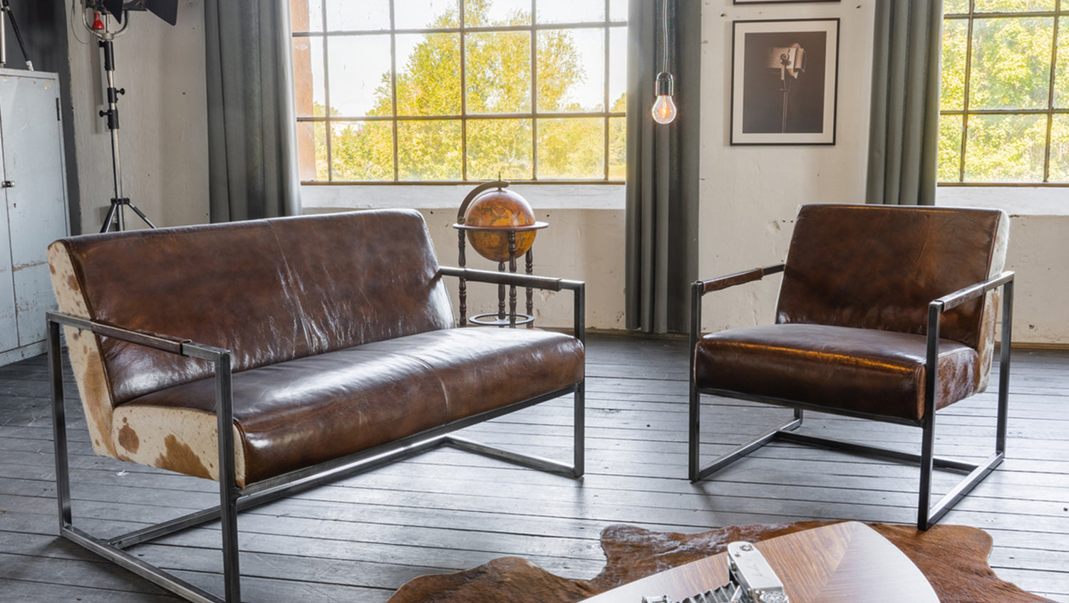 Sessel LIANO von KAWOLA überzeugt durch die gelungene Materialkombination aus Edelstahl und weichem Vintage-Leder. Als besonderer Hingucker sind sowohl die Seiten, als auch die komplette Rückseite mit Kufell bezogen.