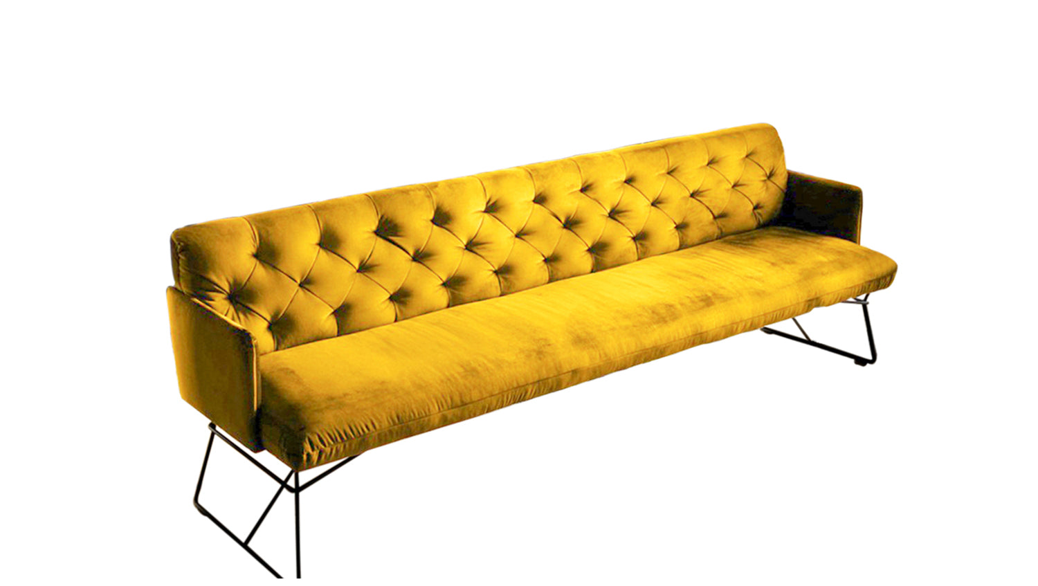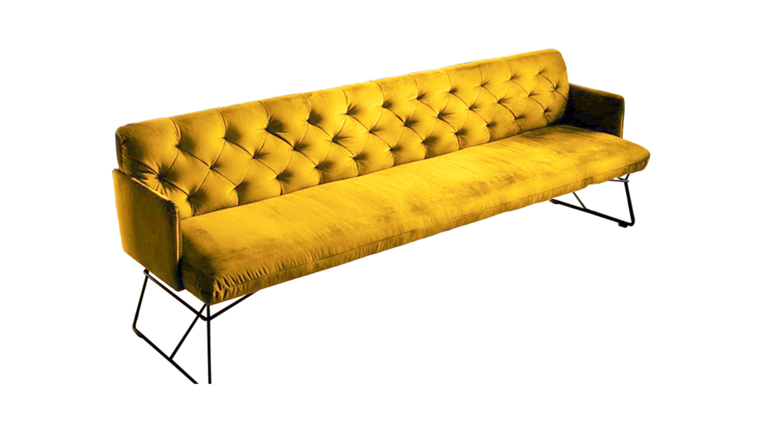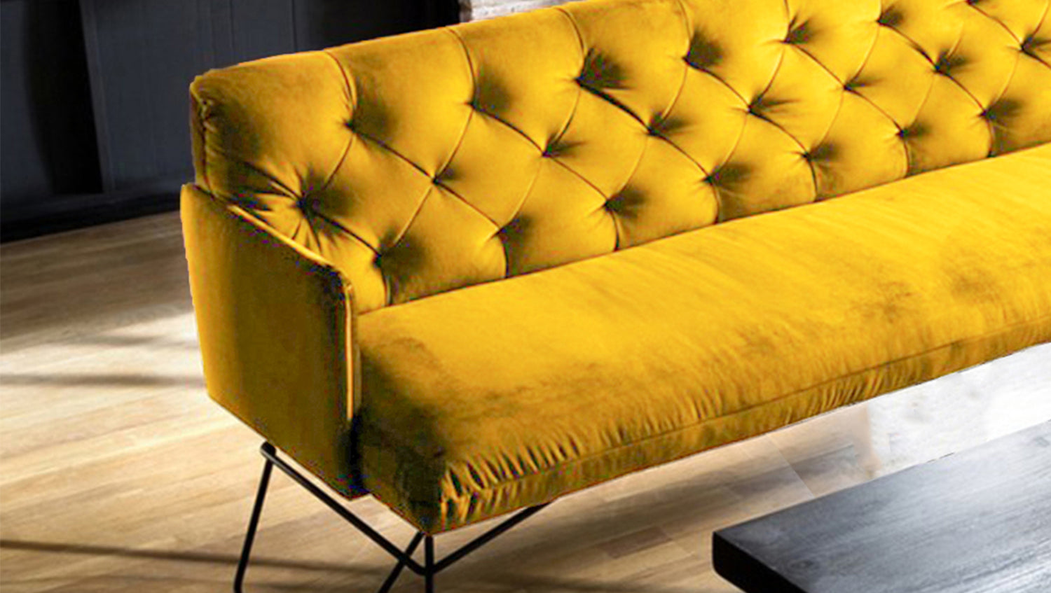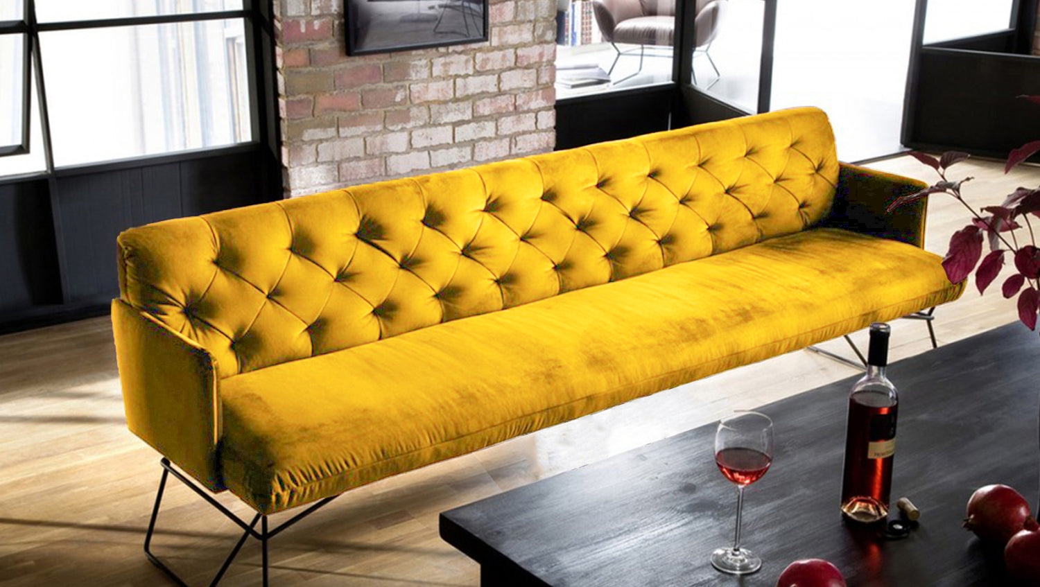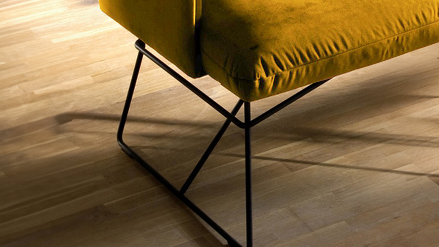Durch den legeren Sitzaufbau ist eine modellbedingte und gestalterisch gewünschte Wellenbildung warentypisch und unterstreicht den gemütlichen Faktor der Sitzbank. Die behagliche Polsterung wird durch den samtigen Velvet-Bezug noch einmal zusätzlich unterstrichen, sodass auch die Haptik der Bank gemütlich und kuschelig erscheint.