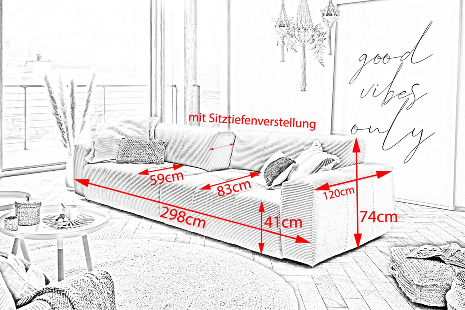 Sofa PALACE überzeugt mit zeitloser Eleganz, modernem Design und besonders hohem Komfort. Der elegante Velvet-Bezug umspannt die gemütliche Liegefläche, deren legere Polsterung zum ausgiebigen Entspannen einlädt und Ihnen pure Erholung schenkt. Das besondere Extra: Sofa PALACE lässt sich im Handumdrehen vom Big Sofa zum klassischen Sitzmöbel verwandeln. Dank Sitztiefenverstellung, welche durch die Verstellung der Rückenlehne erfolgt, lässt sich die Sitztiefe von 83 cm auf 59 cm verkleinern. So können Sie frei entscheiden, ob Sie eine aufrechtere Sitzposition bevorzugen oder lieber Platz zum Ausstrecken bevorzugen.