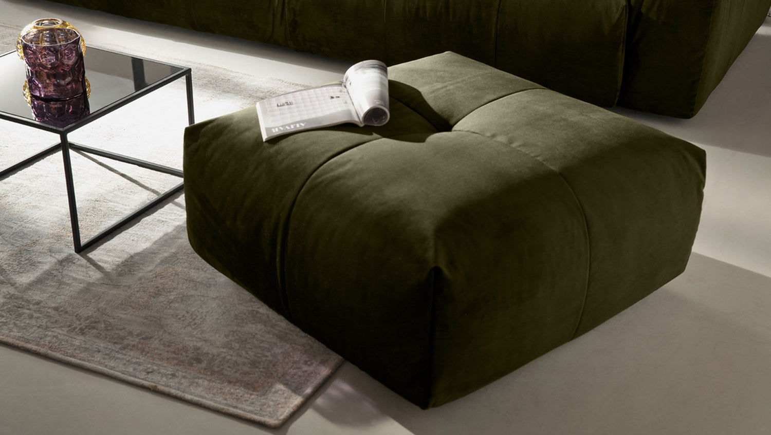 KAWOLA Hocker PALACE Polsterhocker velvet oliv