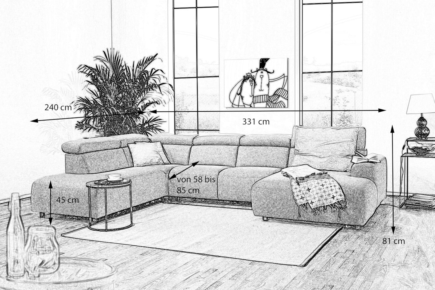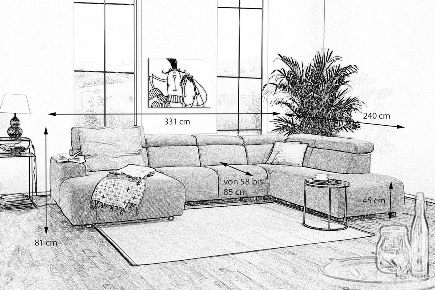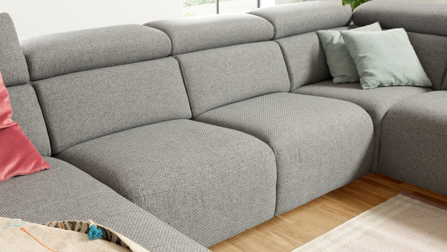Außerdem lassen sich alle Kopfstützen der Wohnlandschaft ausklappen, sodass ein schonendes Nackengefühl beim Sitzen zur Selbstverständlichkeit wird.