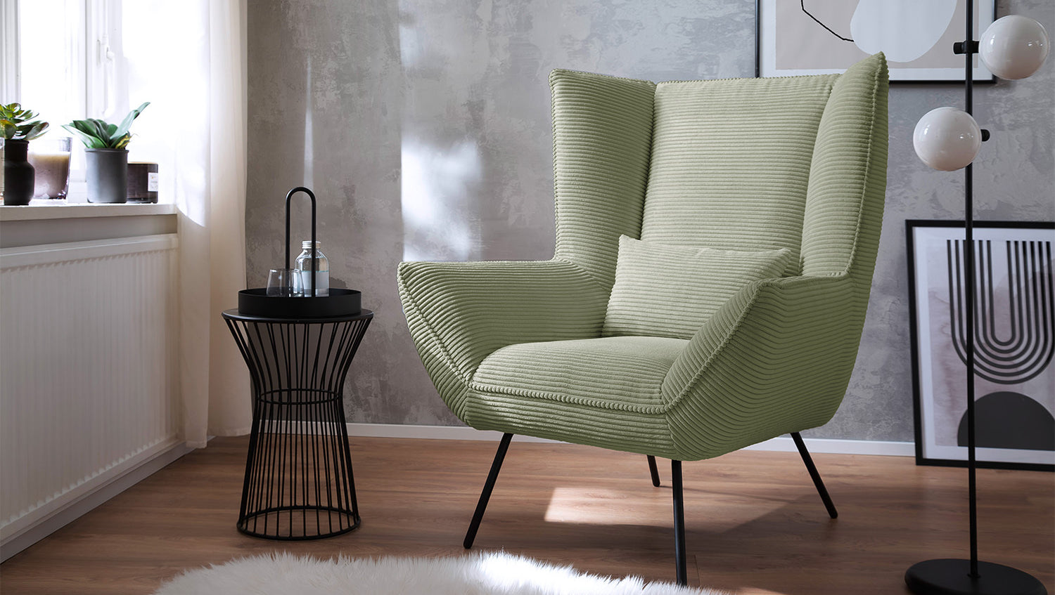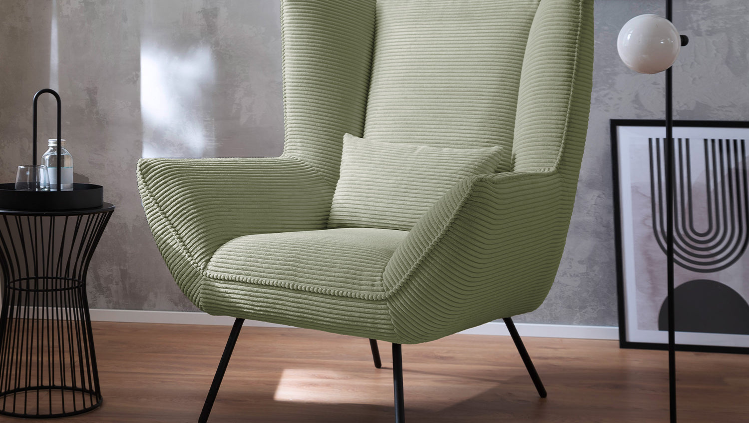 KAWOLA Sessel IVA Relaxsessel Cord olivgrün