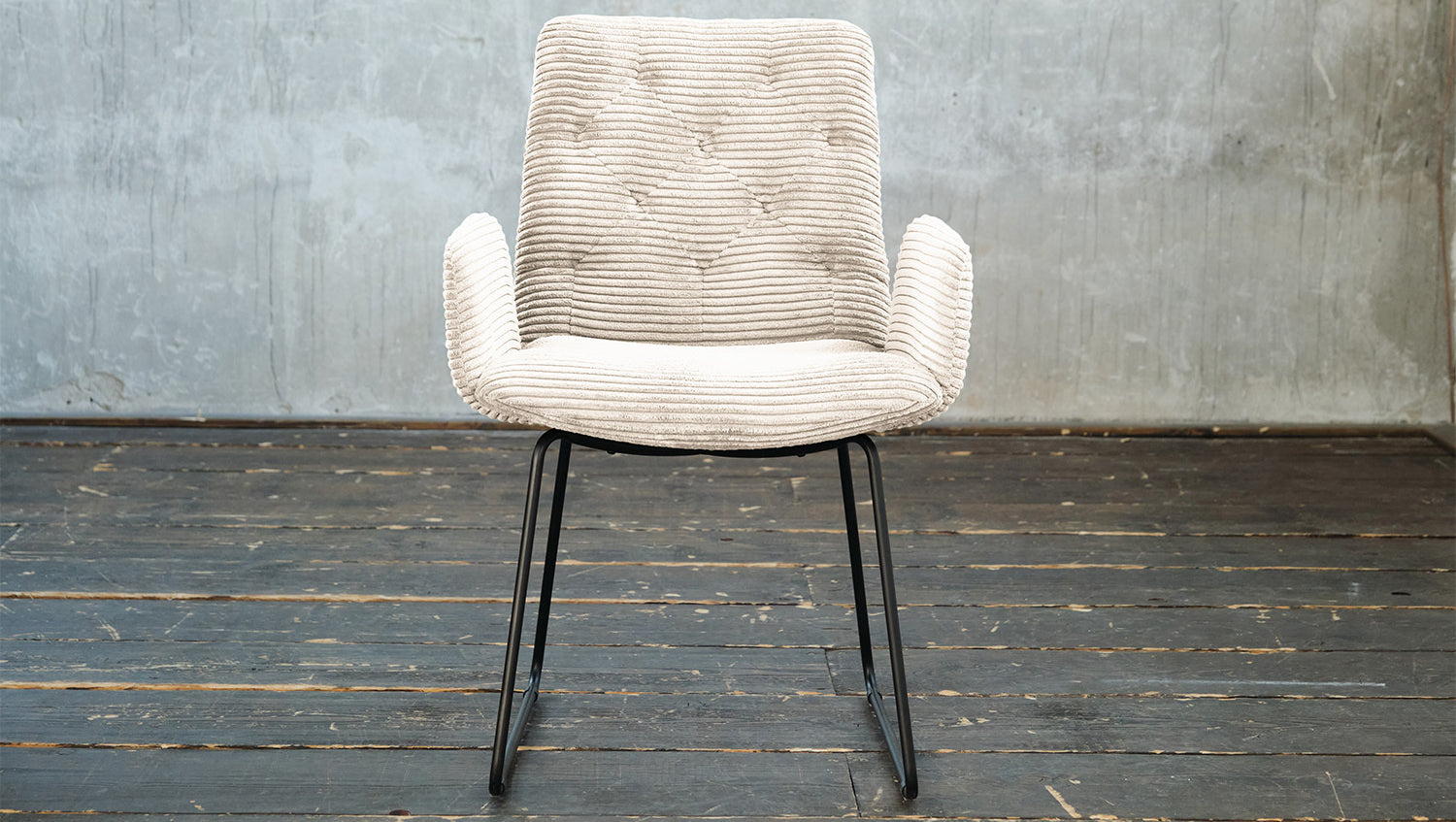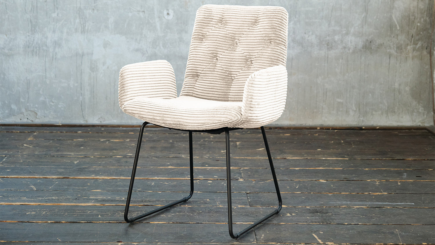 Der KAWOLA Esszimmerstuhl NEW CHARME ist nicht nur um ein Möbelstück, sondern ein wahres Design-Highlight, das in Ihrem Zuhause neue Akzente setzt. Der Stil der Serie NEW CHARME erinnert an die Sechziger Jahre: Der Rücken wurde aufwendig abgesteppt ohne Knöpfe; die Rückenlehne wurde an den beiden Seiten leicht nach vorne gewölbt und erinnert an die Form eines Ohrensessels; die Kufenfüße aus Metall sind pulverbeschichtet. Zu der ausgefallenen Form des Stuhls NEW CHARME wurde hier der Bezug in angesagtem Cord-Stoff gewählt. Wer nicht nur einen Esszimmerstuhl sucht, sondern einen zeitlos-stylischen Trendsetter, liegt mit der Serie NEW CHARME von KAWOLA goldrichtig!