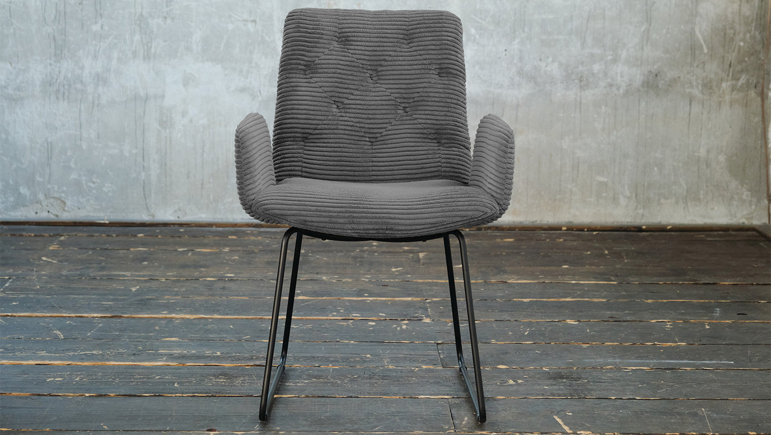 Der KAWOLA Esszimmerstuhl NEW CHARME ist nicht nur um ein Möbelstück, sondern ein wahres Design-Highlight, das in Ihrem Zuhause neue Akzente setzt. Der Stil der Serie NEW CHARME erinnert an die Sechziger Jahre: Der Rücken wurde aufwendig abgesteppt ohne Knöpfe; die Rückenlehne wurde an den beiden Seiten leicht nach vorne gewölbt und erinnert an die Form eines Ohrensessels; die Kufenfüße aus Metall sind pulverbeschichtet. Zu der ausgefallenen Form des Stuhls NEW CHARME wurde hier der Bezug in angesagtem Cord-Stoff gewählt. Wer nicht nur einen Esszimmerstuhl sucht, sondern einen zeitlos-stylischen Trendsetter, liegt mit der Serie NEW CHARME von KAWOLA goldrichtig!