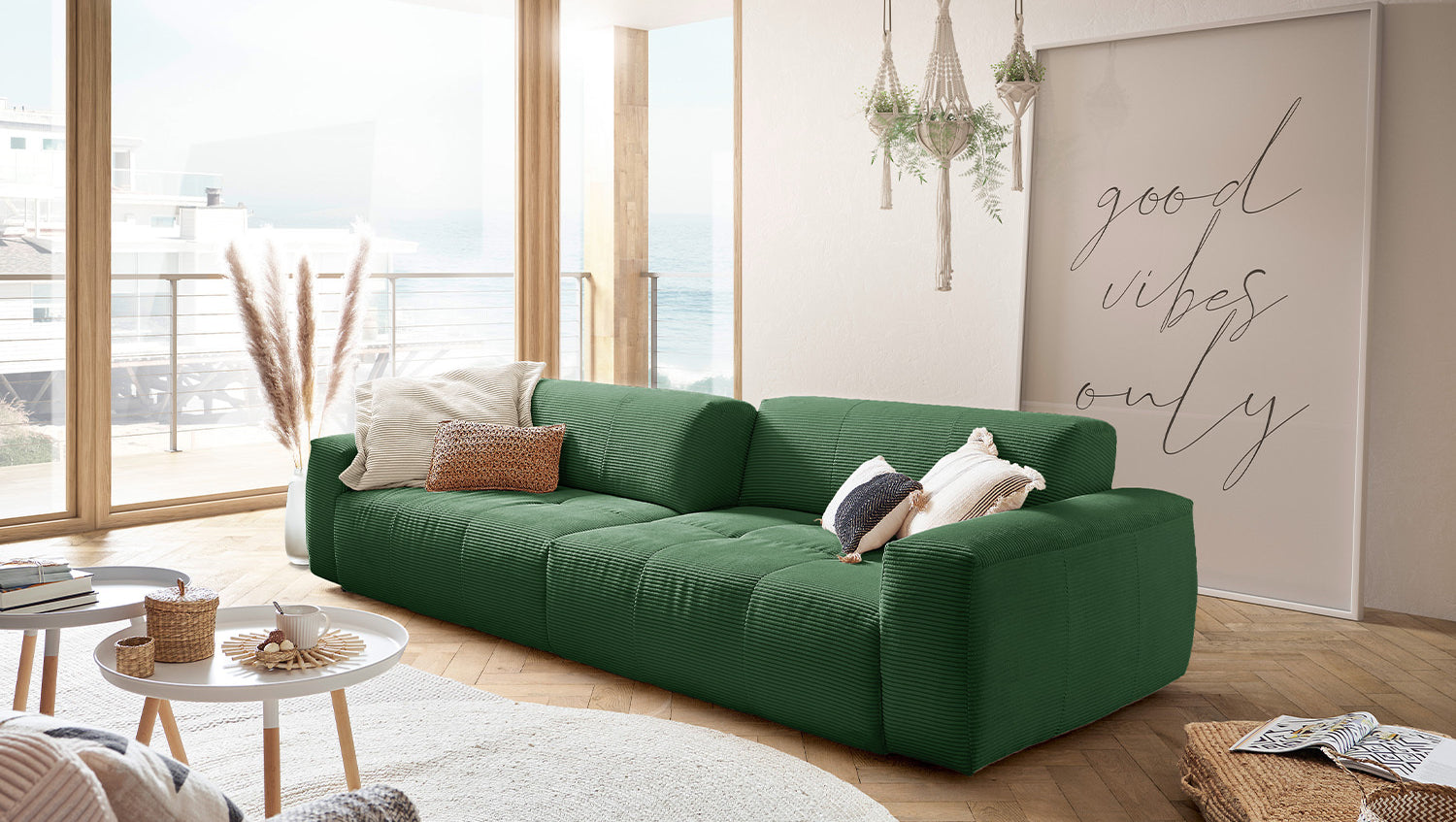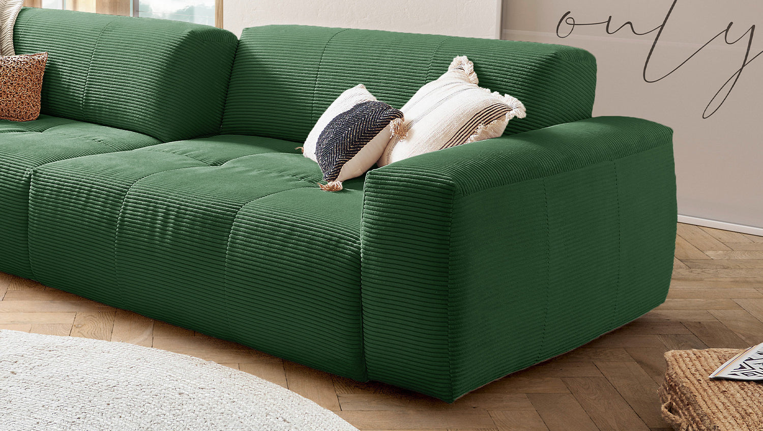KAWOLA Big Sofa PALACE 3-Sitzer mit Sitztiefenverstellung Cord smaragd