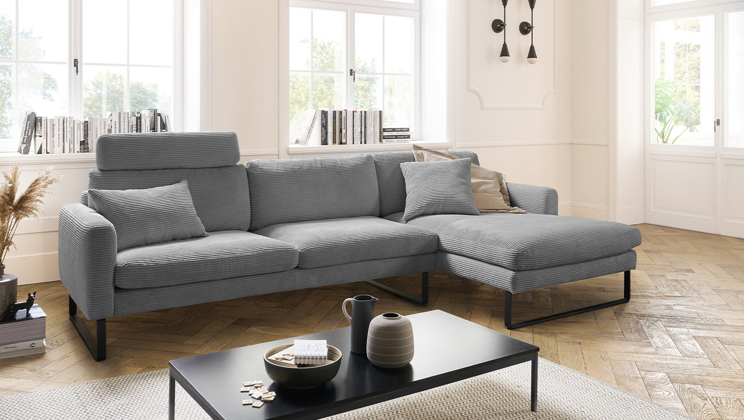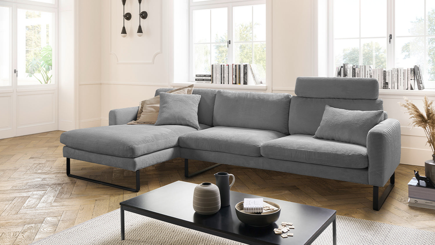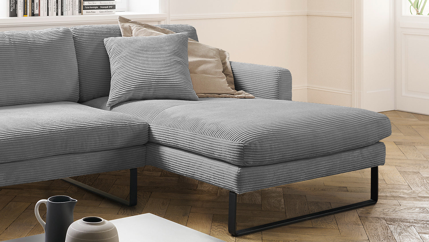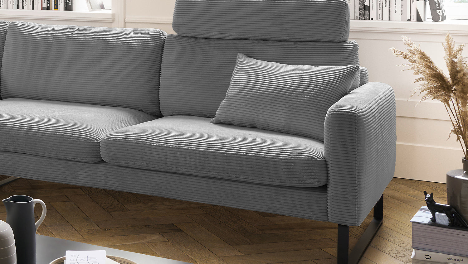 Das KAWOLA Ecksofa RICARDA verbindet klassisches Design mit sachlicher Modernität und fügt sich nahtlos in jedes Interieur ein. Seine weichen Formen und der Bezug aus angesagtem Cord-Stoff verleihen dem Sofa eine zeitlose Eleganz. Die komplexe Polsterung garantiert höchsten Sitzkomfort und passt sich durch ihren legeren Aufbau der Körperform an. Die losen Sitzkissen aus sind schichtweise aufgebaut und in verschiedenen Stärken und Härten aufeinander abgestimmt. Sitz und Rücken sind abgedeckt mit einem Inlett, welches befüllt ist mit hochwertigen Füllstoffen, die eine Beimischung von Federn enthalten. Kurz: Das Sofa RICARDA lässt keine Wünsche offen! Egal zu welcher Gelegenheit - hier findet jeder ein Plätzchen zum Entspannen...