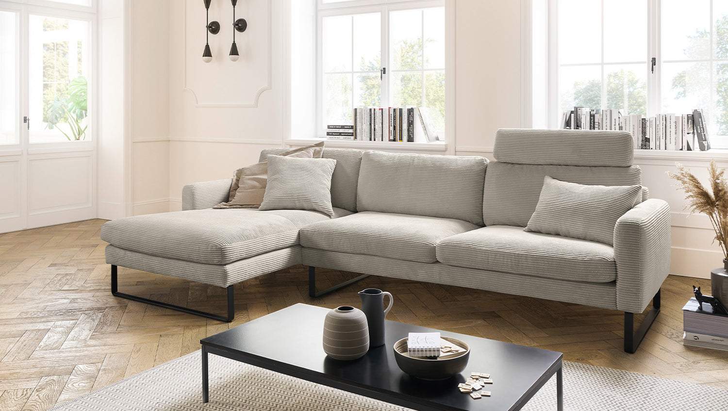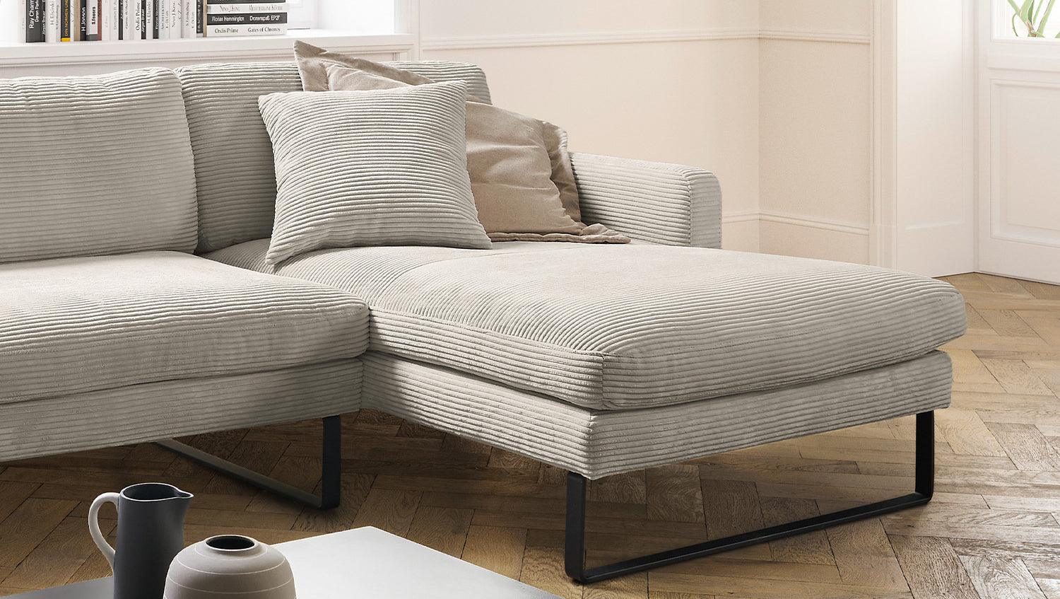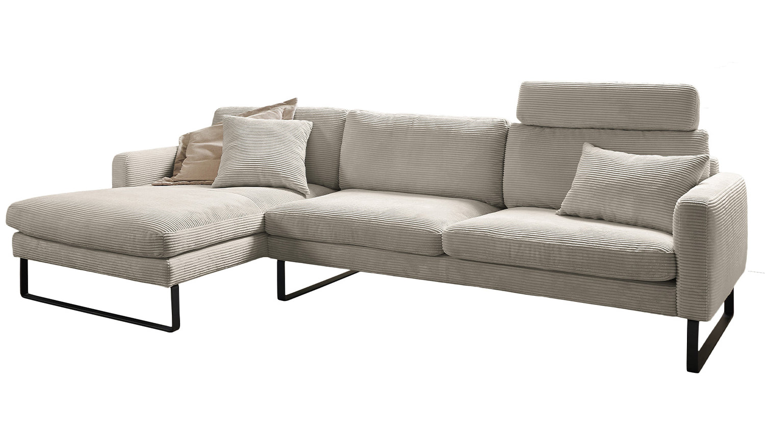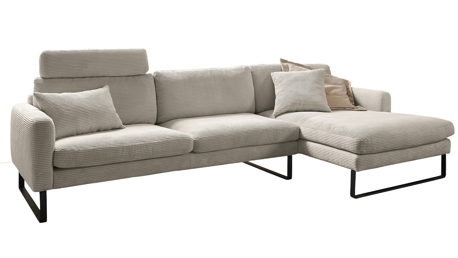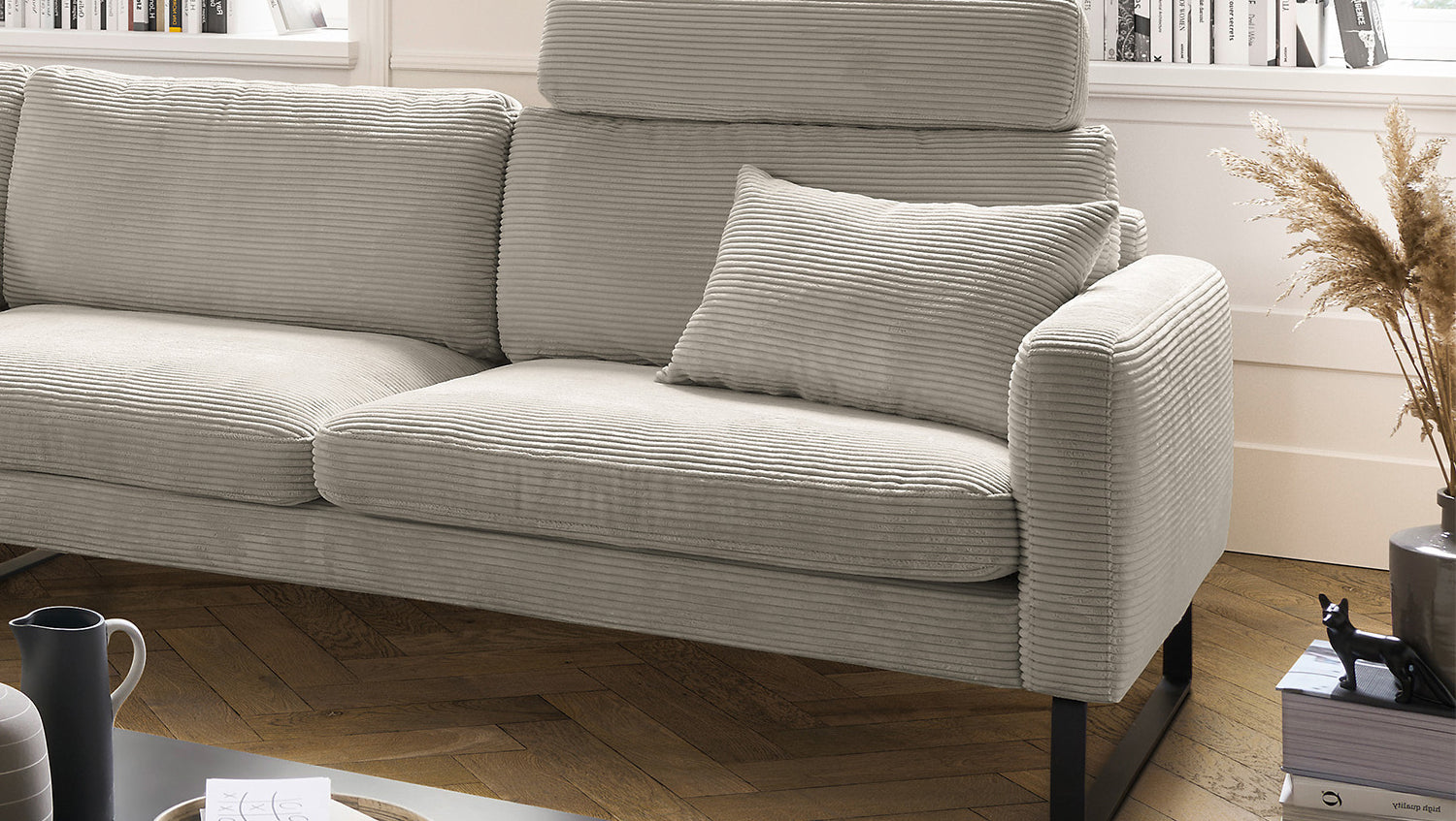 Das KAWOLA Ecksofa RICARDA verbindet klassisches Design mit sachlicher Modernität und fügt sich nahtlos in jedes Interieur ein. Seine weichen Formen und der Bezug aus angesagtem Cord-Stoff verleihen dem Sofa eine zeitlose Eleganz. Die komplexe Polsterung garantiert höchsten Sitzkomfort und passt sich durch ihren legeren Aufbau der Körperform an. Die losen Sitzkissen aus sind schichtweise aufgebaut und in verschiedenen Stärken und Härten aufeinander abgestimmt. Sitz und Rücken sind abgedeckt mit einem Inlett, welches befüllt ist mit hochwertigen Füllstoffen, die eine Beimischung von Federn enthalten. Kurz: Das Sofa RICARDA lässt keine Wünsche offen! Egal zu welcher Gelegenheit - hier findet jeder ein Plätzchen zum Entspannen...