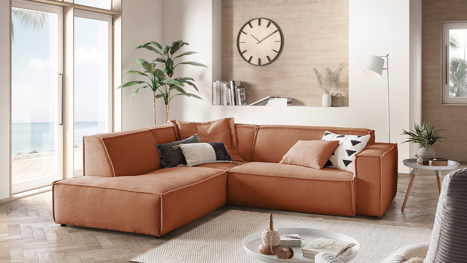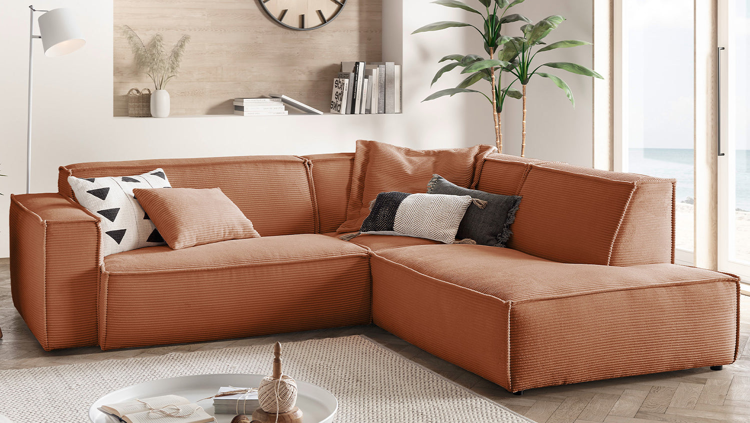 KAWOLA Sofa SAMU Ecksofa Cord rost