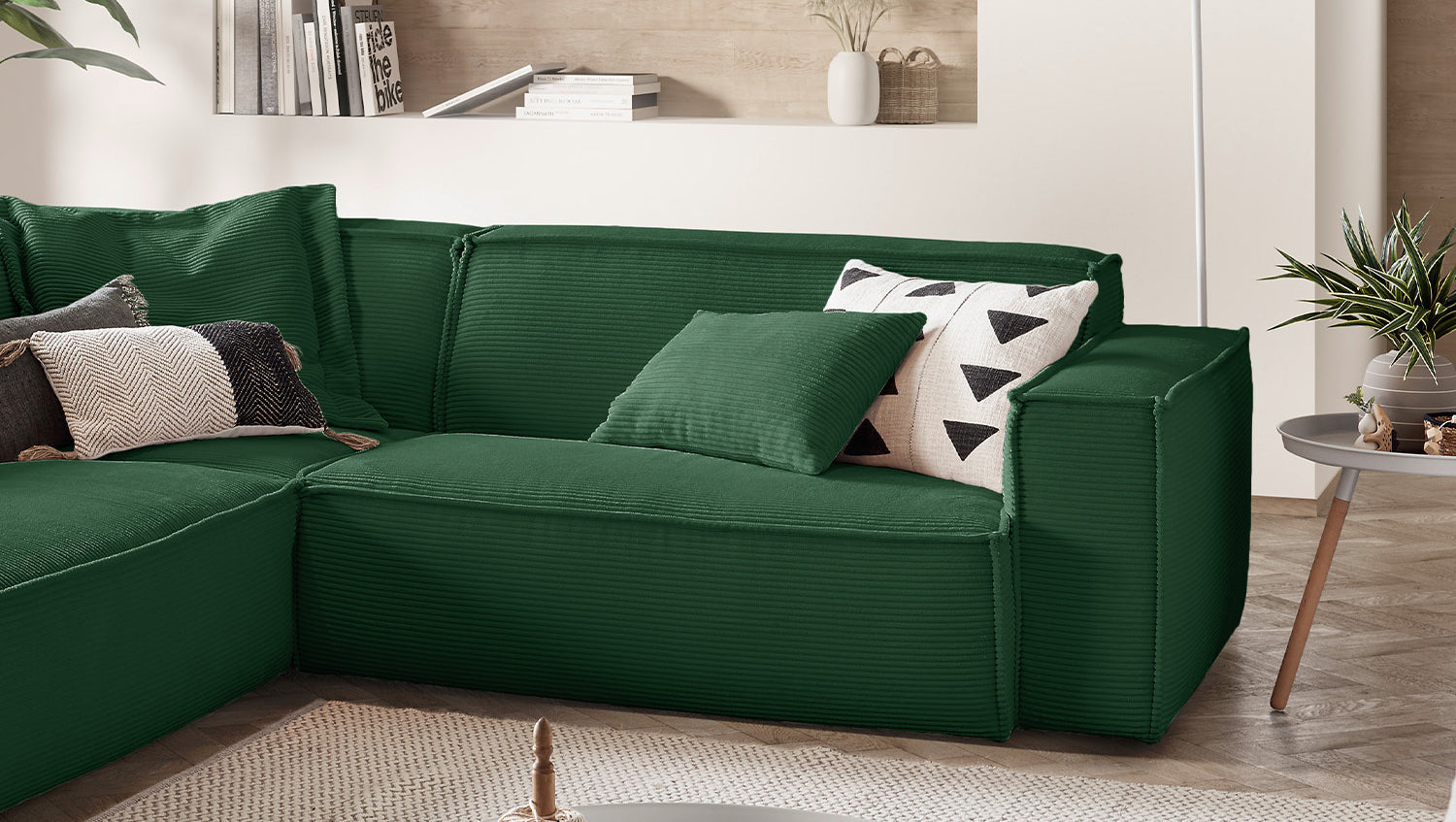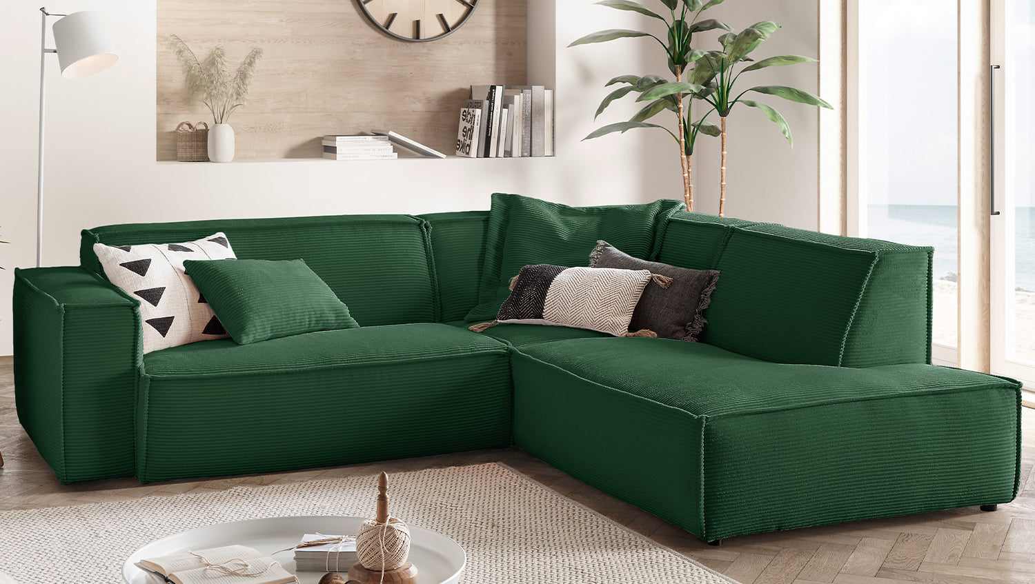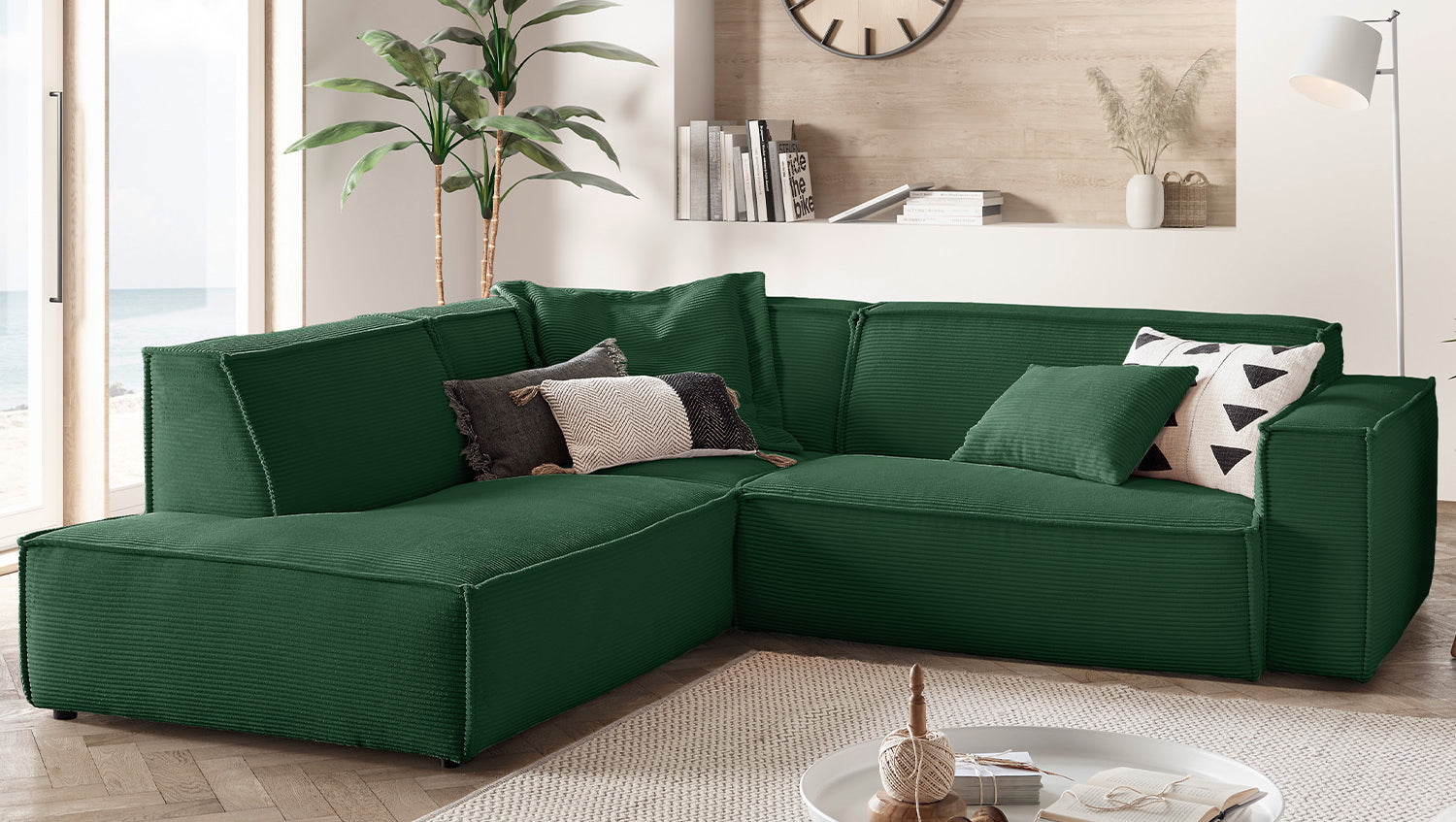 KAWOLA Sofa SAMU Ecksofa Cord smaragd